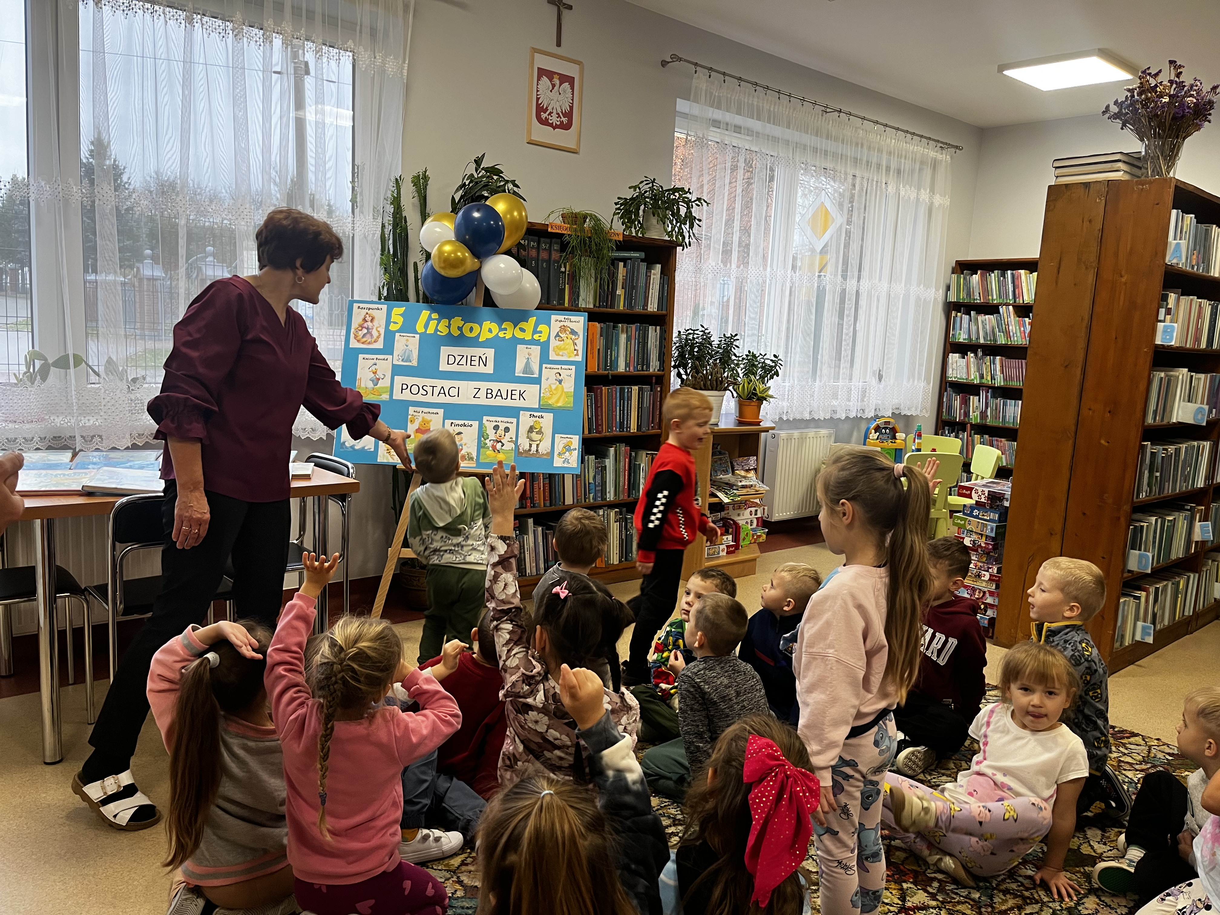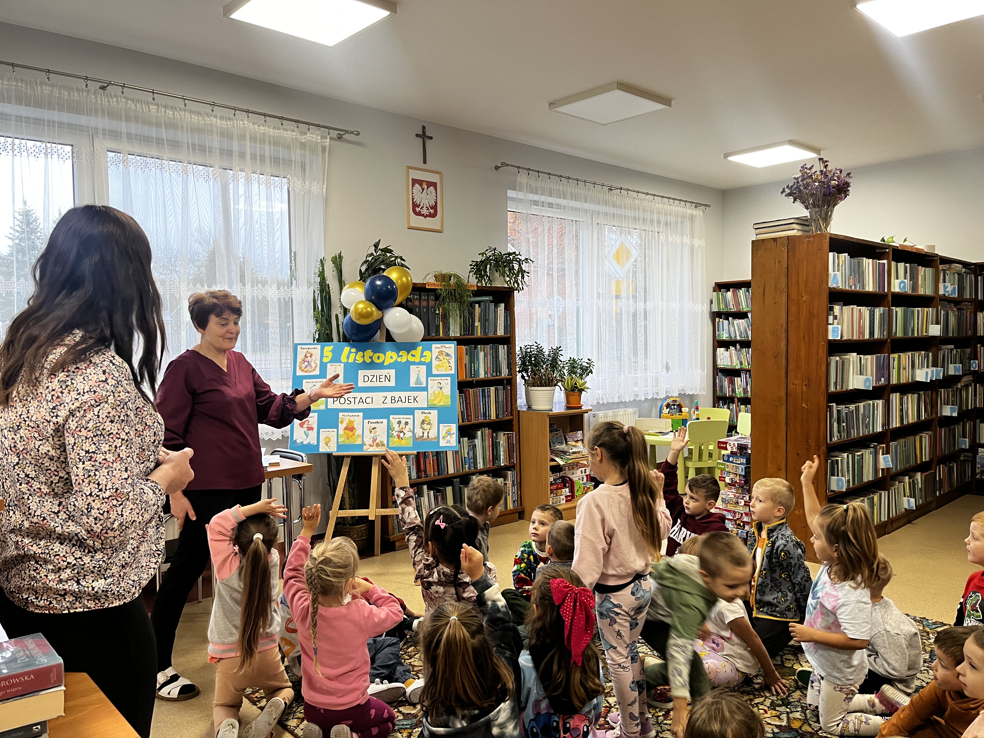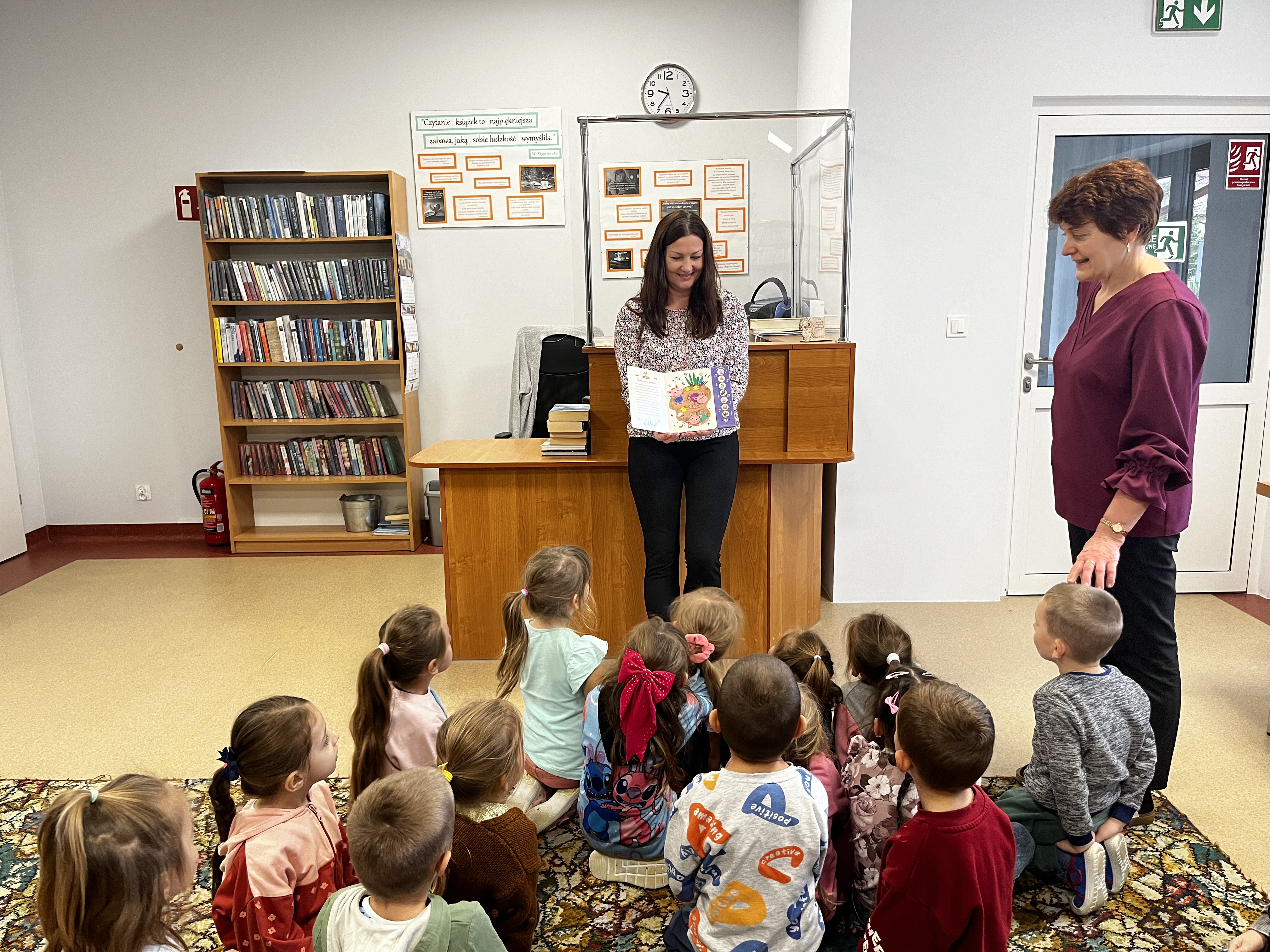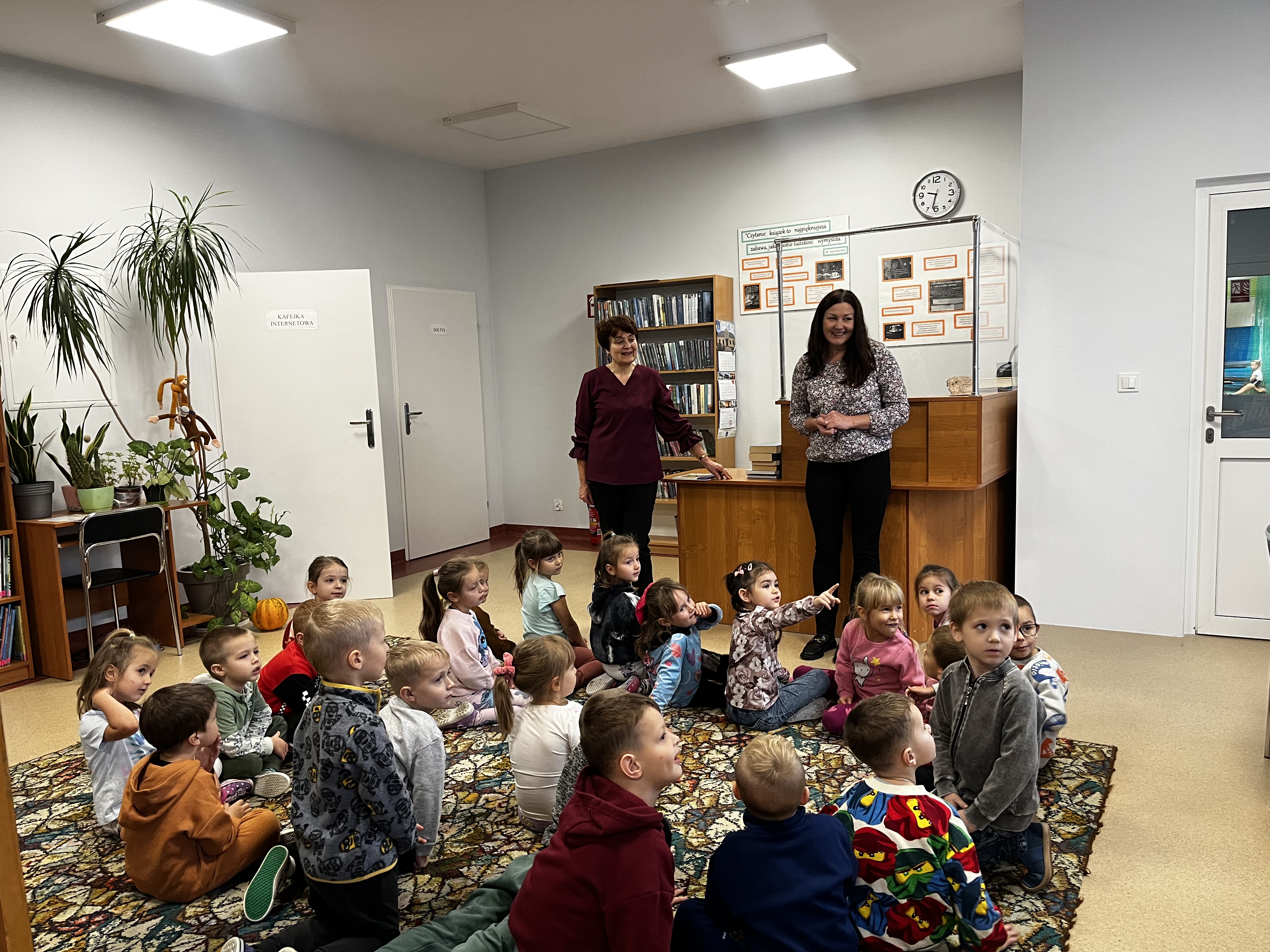 Odwiedziny Biedronek w szkolnej bibliotece.