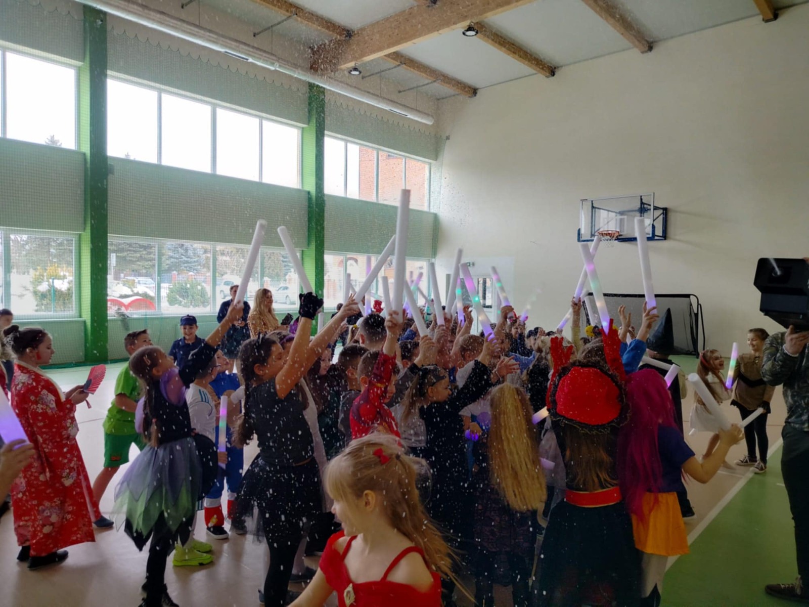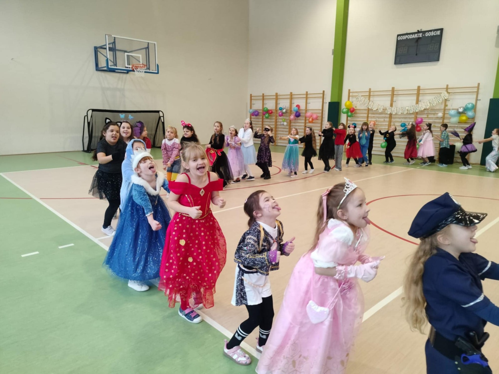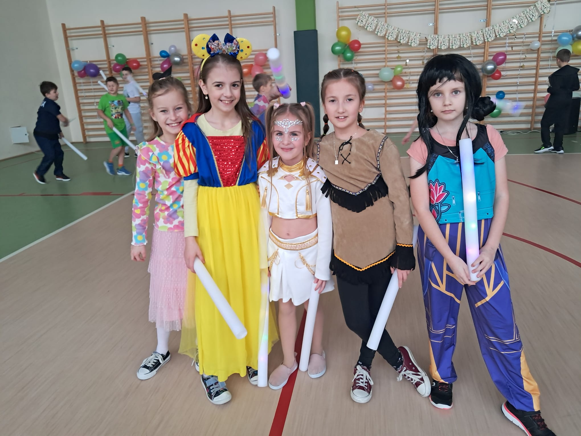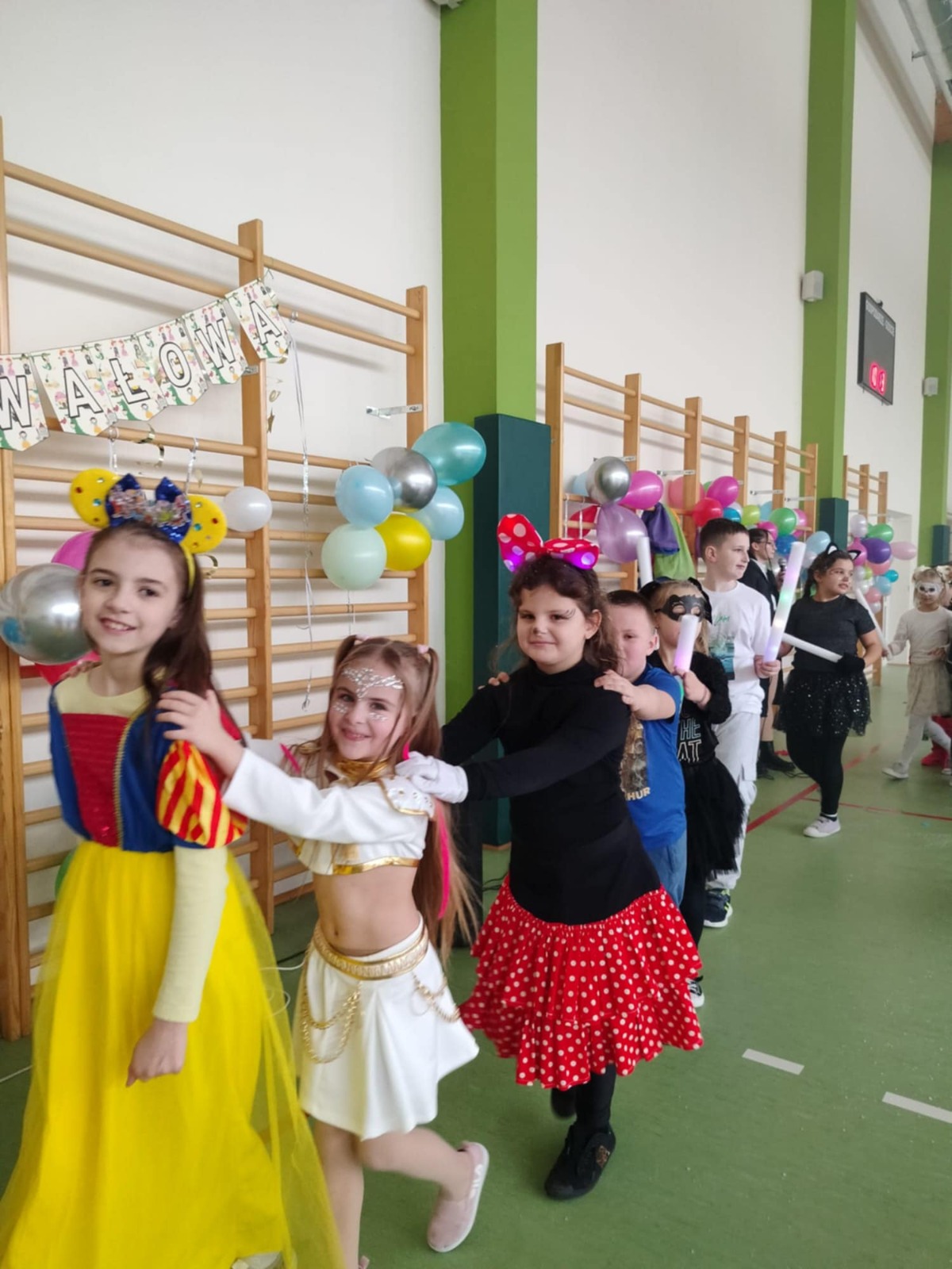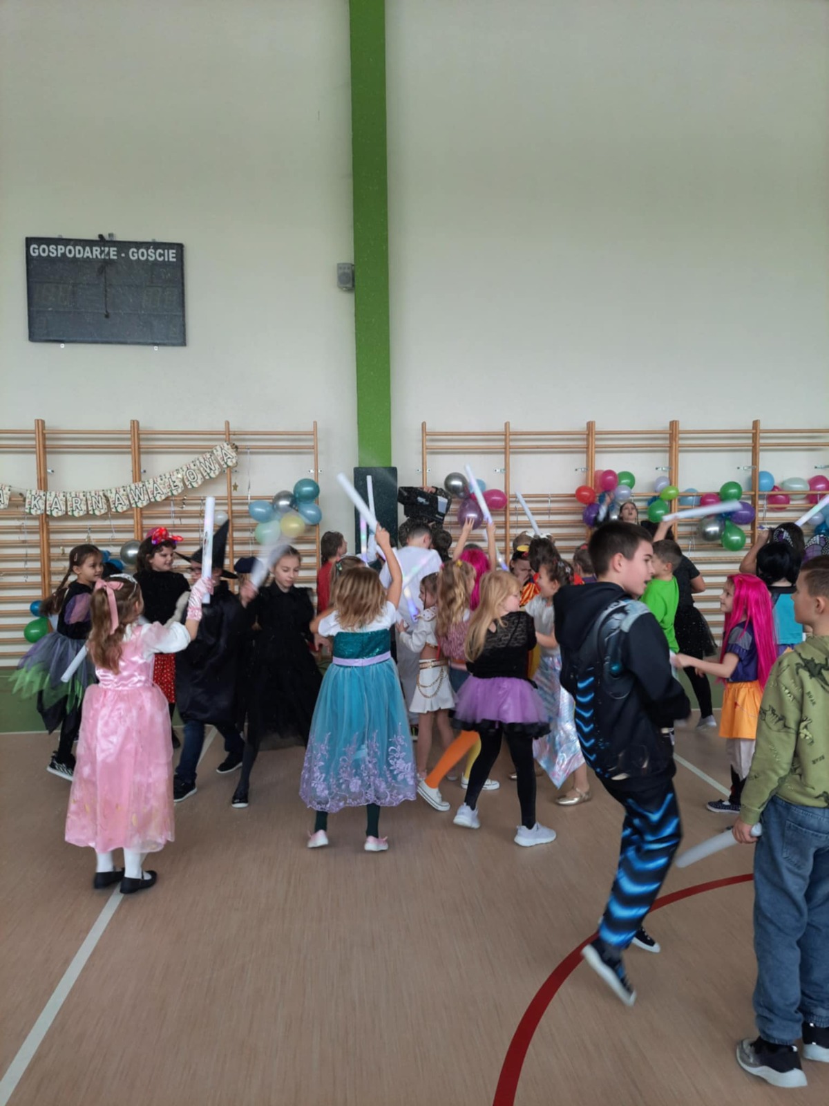 W tym roku nasz bal karnawałowy odbył się 22 stycznia i był prawdziwym świętem radości i muzyki! Dzieci z klas 1–3 wspaniale bawiły się przy wesołych rytmach, tańcząc w znanych zabawach, takich jak „Kaczuszki”, „Krasnoludki” czy „Krecik”. Parkiet rozświetlały migoczące świetlne pałki, a w powietrzu unosił się lekki śnieg i tajemniczy dym – jak w prawdziwej bajce Po szalonych tańcach czekał na nich pyszny poczęstunek. Na koniec odbyła się kolorowa sesja zdjęciowa, dzięki której każdy mógł zachować te wyjątkowe chwile w pięknych kadrach. Bal był pełen śmiechu, radości i dziecięcej energii. To był dzień, który uczniowie klas 1–3 będą wspominać z wielkim uśmiechem na twarzy!
