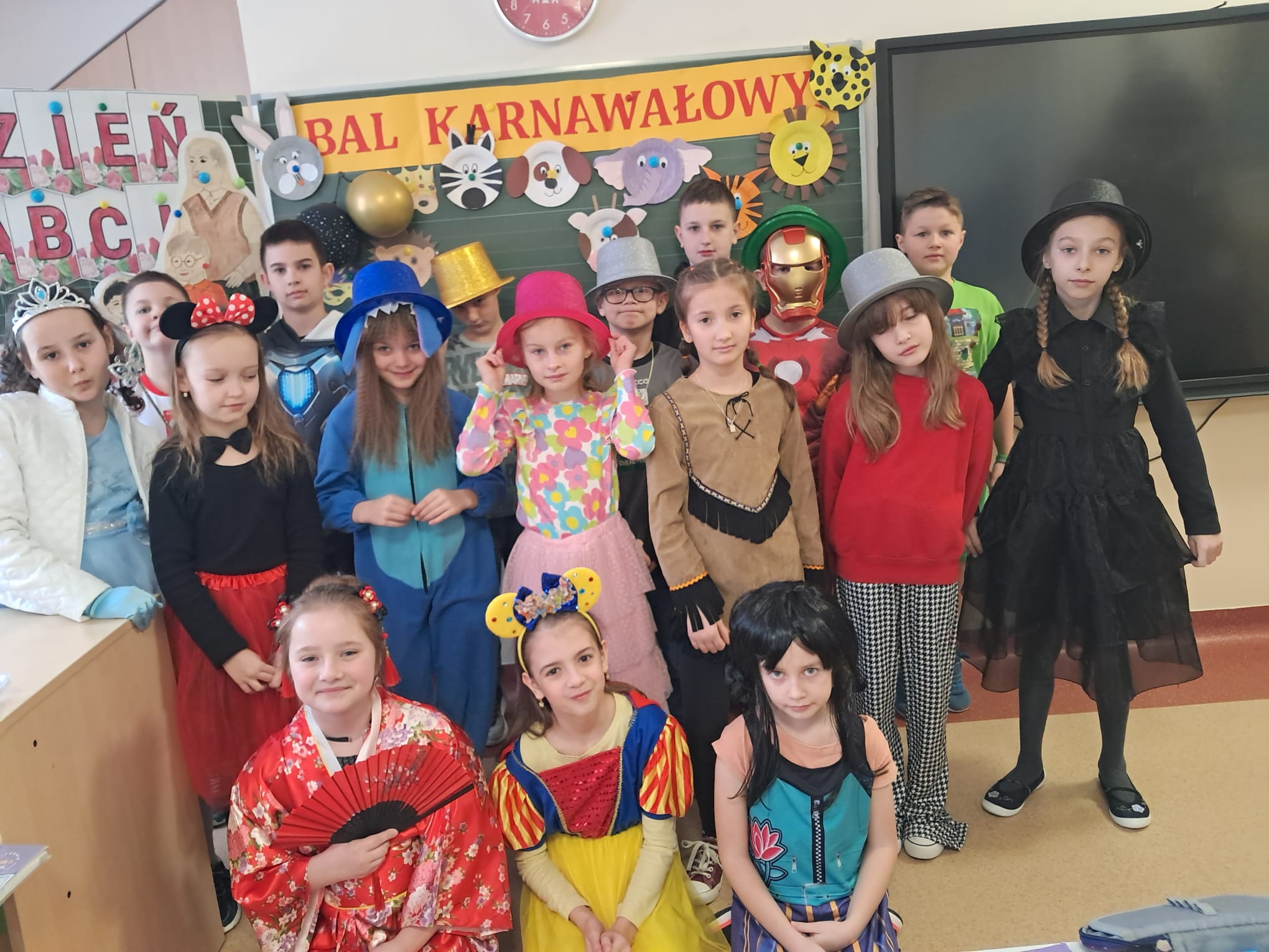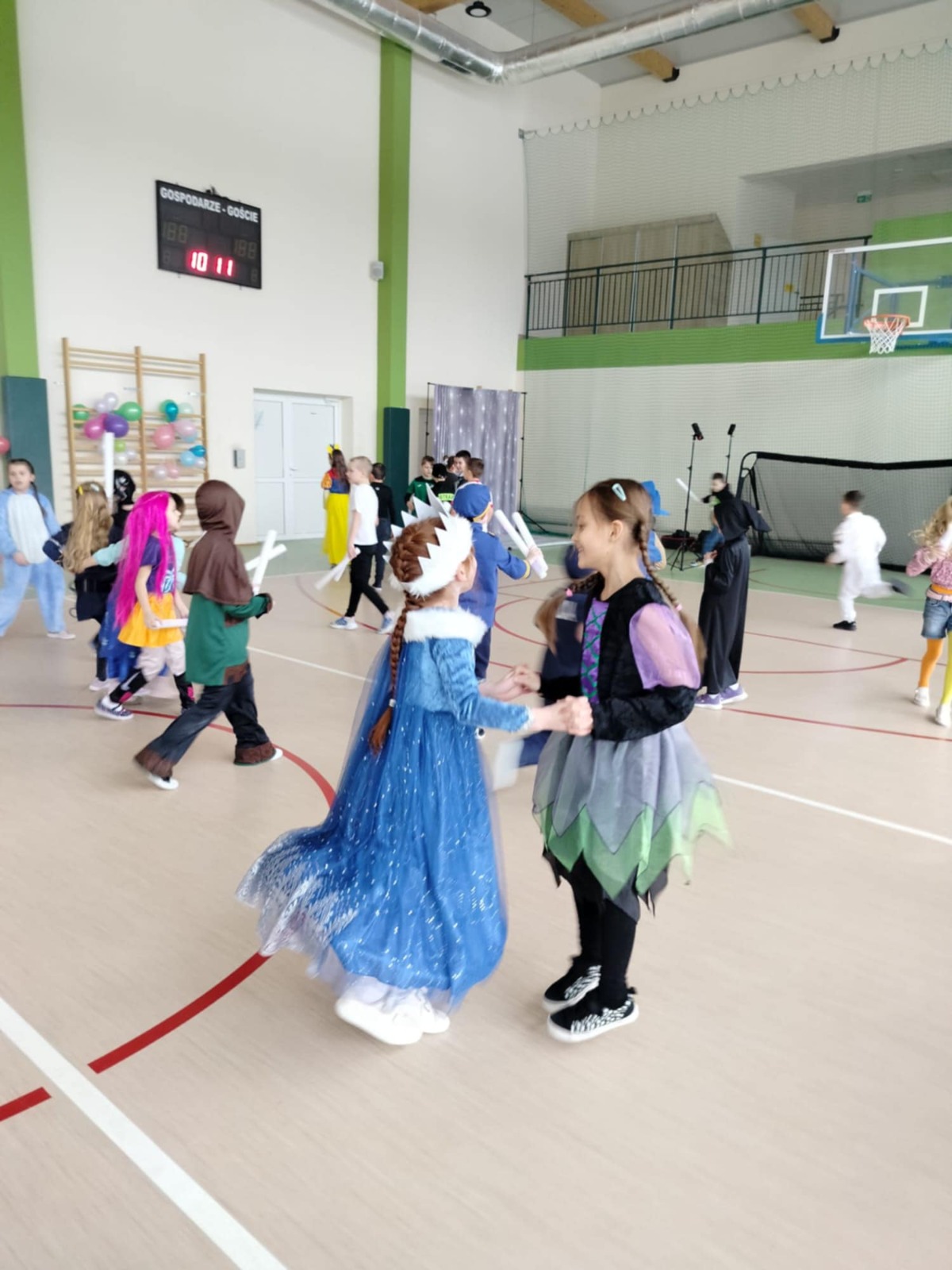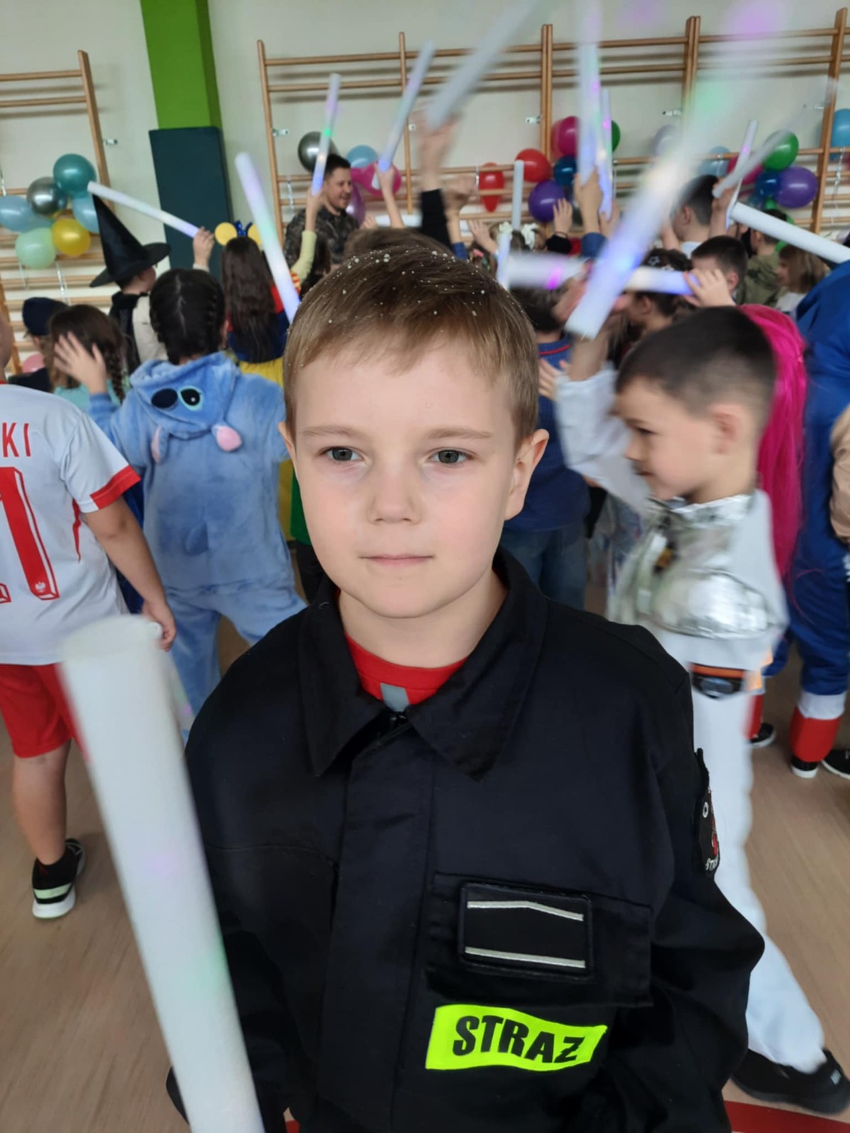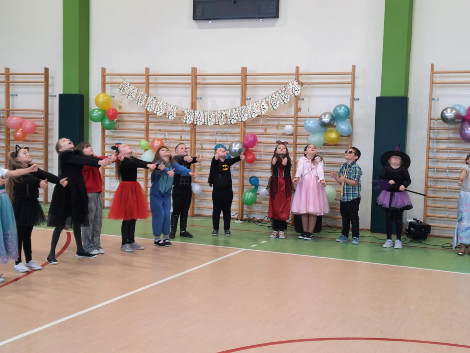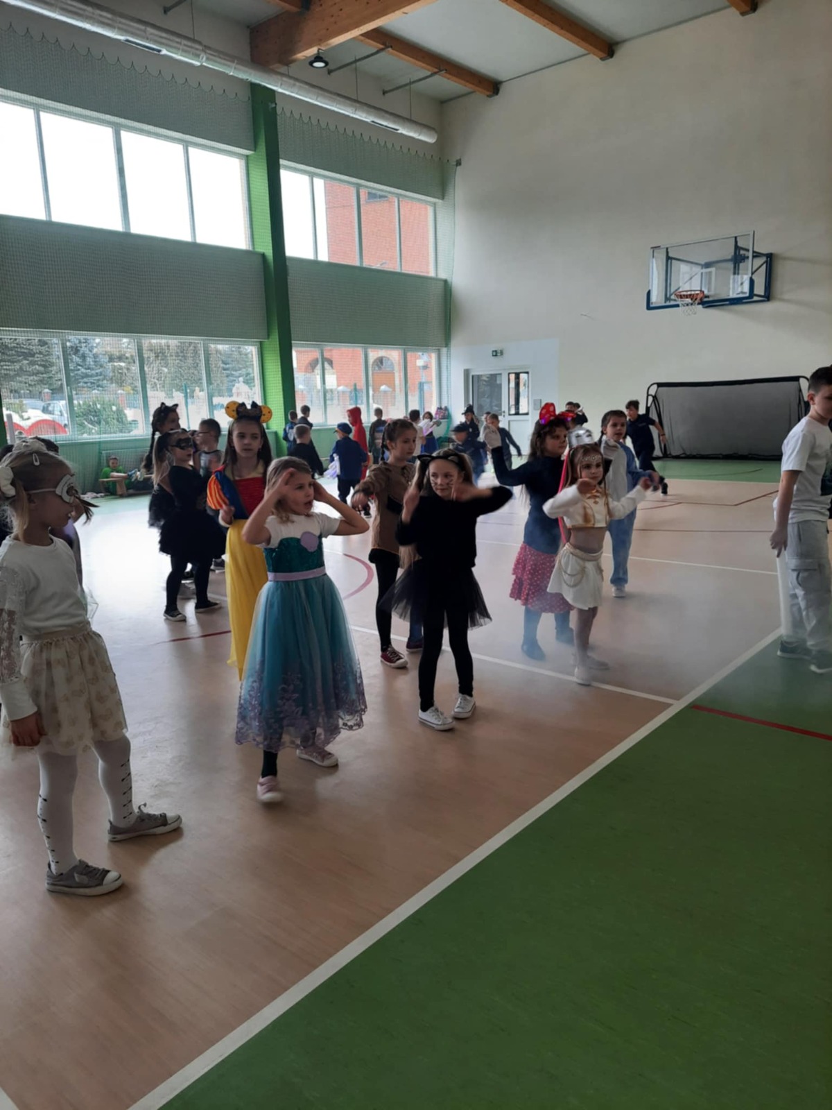 W tym roku nasz bal karnawałowy odbył się 22 stycznia i był prawdziwym świętem radości i muzyki! Dzieci z klas 1–3 wspaniale bawiły się przy wesołych rytmach, tańcząc w znanych zabawach, takich jak „Kaczuszki”, „Krasnoludki” czy „Krecik”. Parkiet rozświetlały migoczące świetlne pałki, a w powietrzu unosił się lekki śnieg i tajemniczy dym – jak w prawdziwej bajce Po szalonych tańcach czekał na nich pyszny poczęstunek. Na koniec odbyła się kolorowa sesja zdjęciowa, dzięki której każdy mógł zachować te wyjątkowe chwile w pięknych kadrach. Bal był pełen śmiechu, radości i dziecięcej energii. To był dzień, który uczniowie klas 1–3 będą wspominać z wielkim uśmiechem na twarzy!