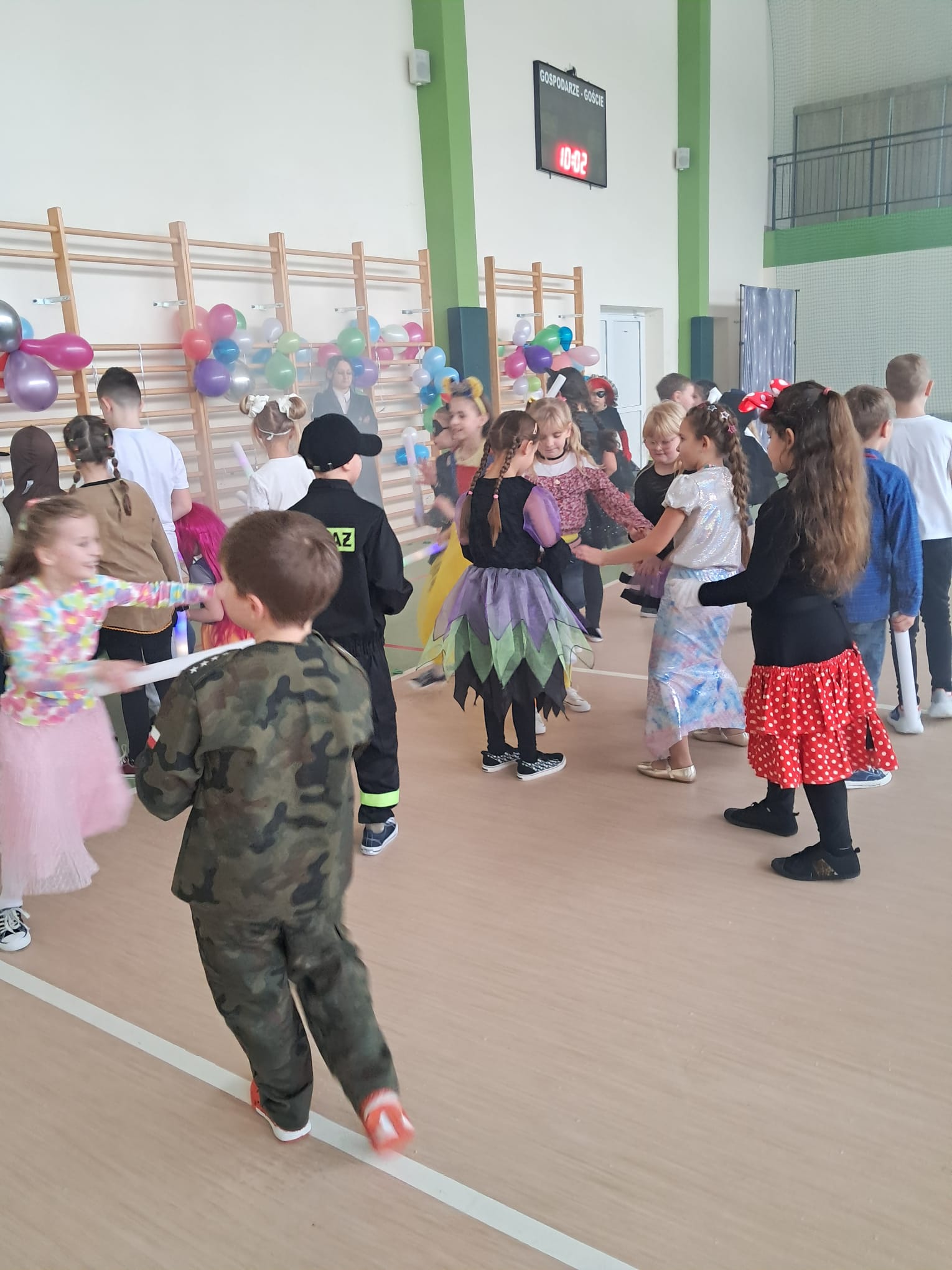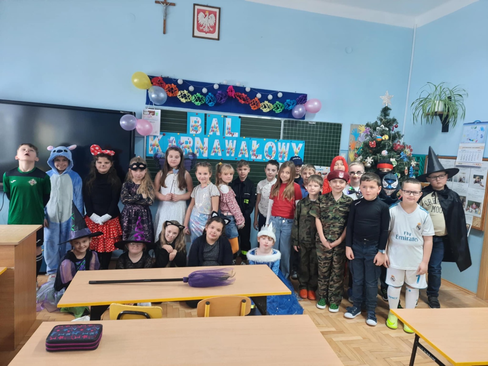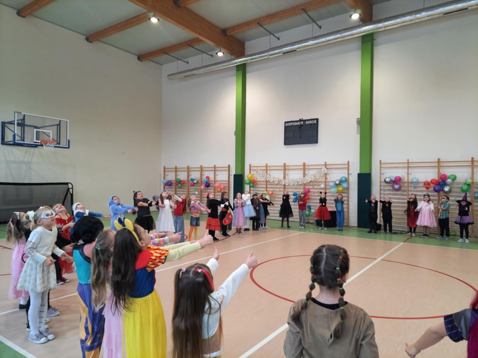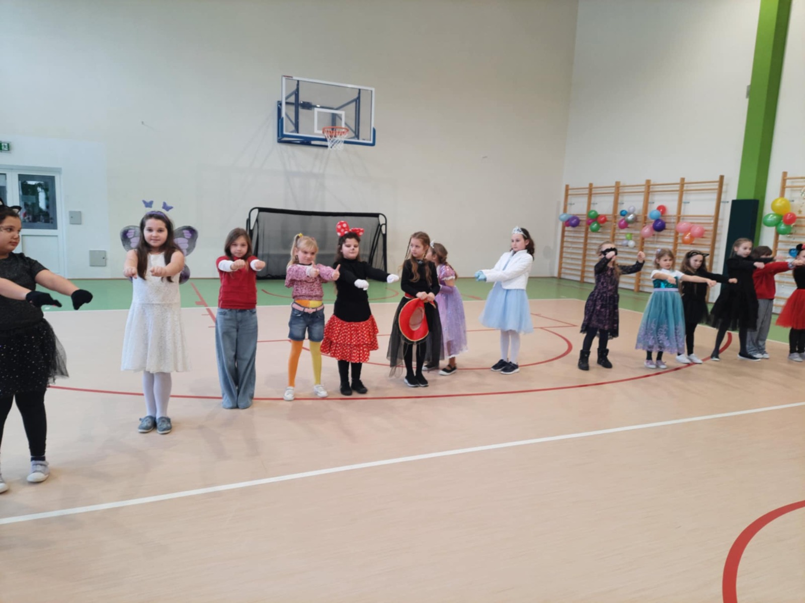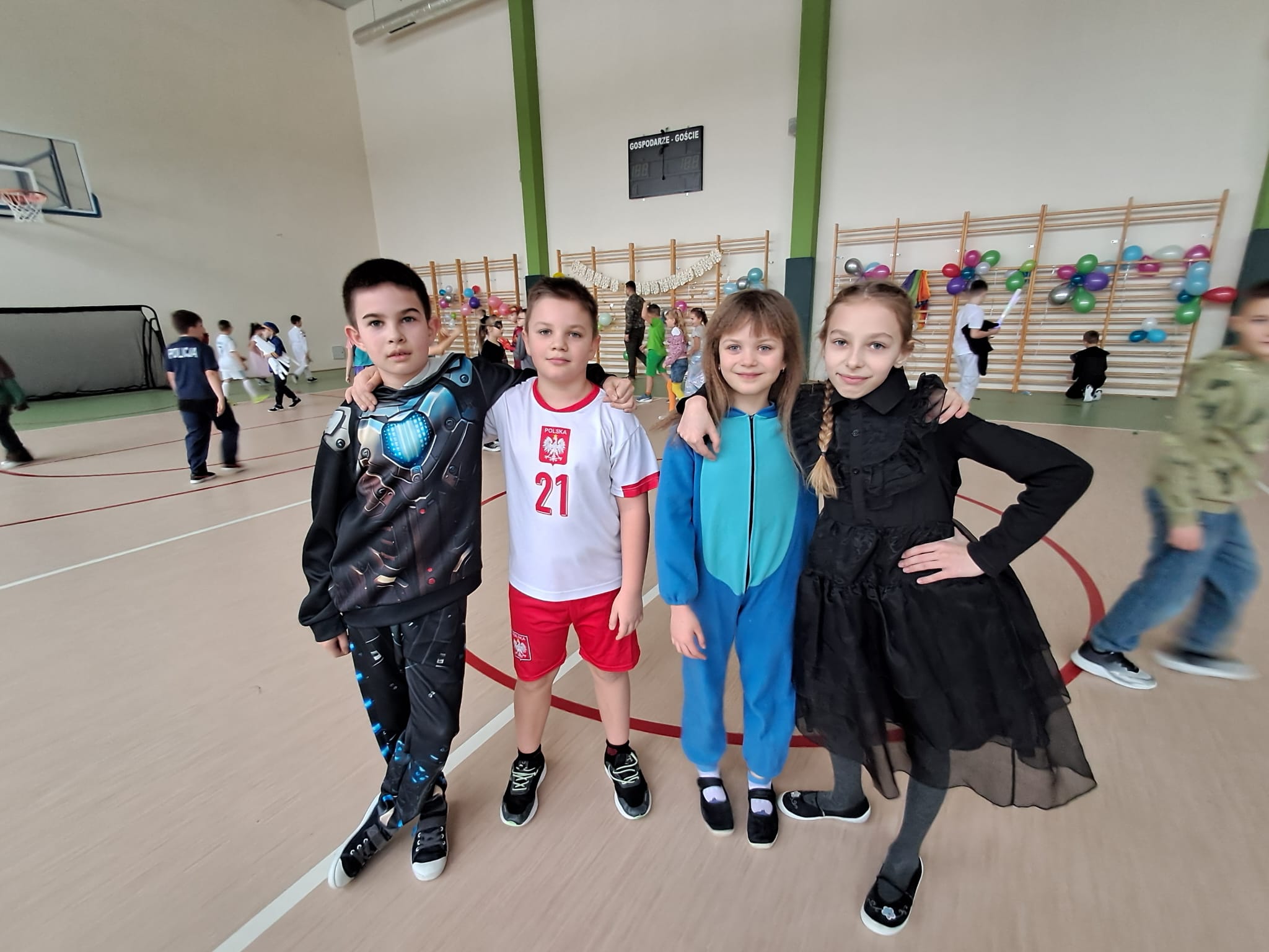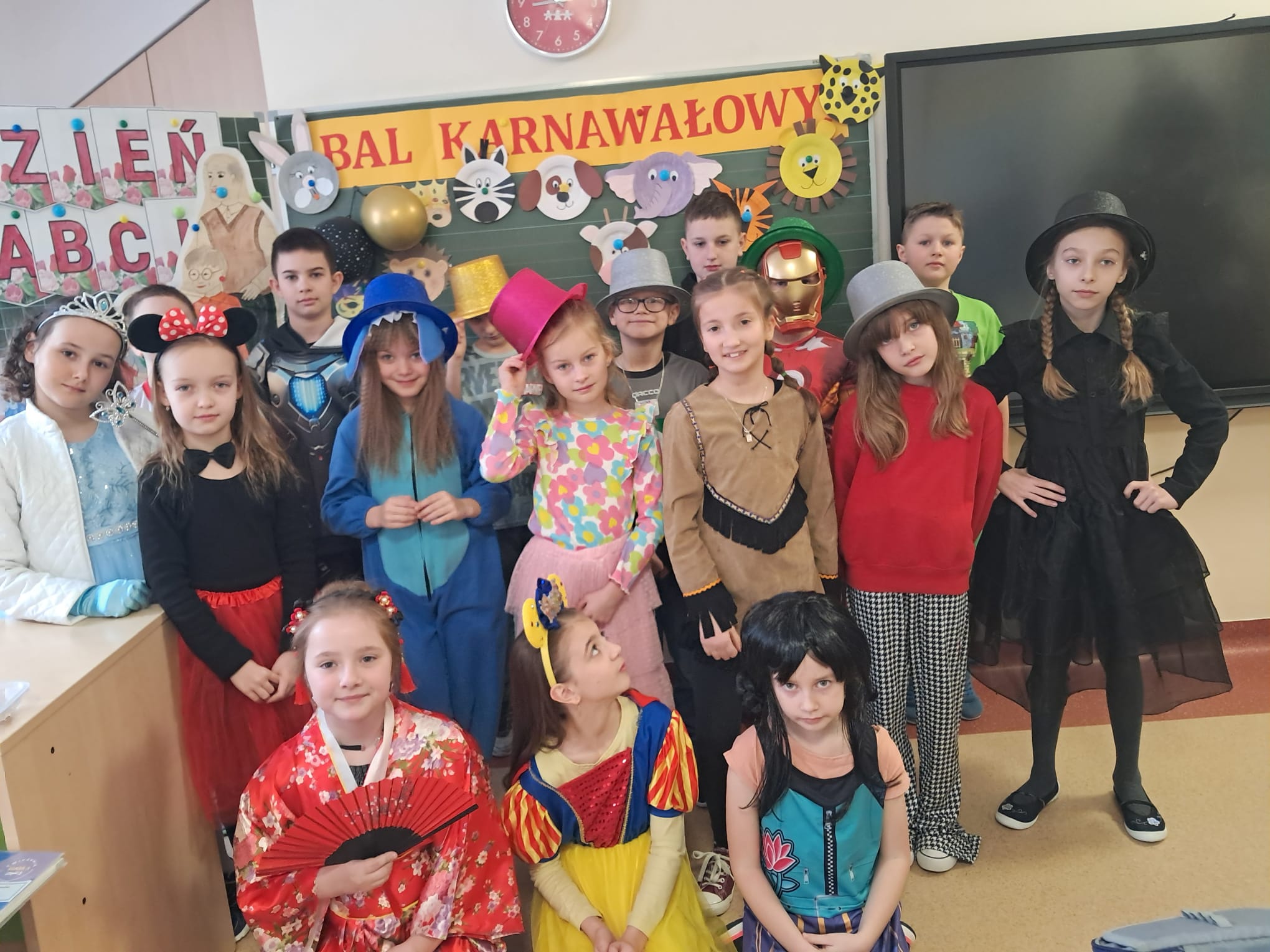 W tym roku nasz bal karnawałowy odbył się 22 stycznia i był prawdziwym świętem radości i muzyki! Dzieci z klas 1–3 wspaniale bawiły się przy wesołych rytmach, tańcząc w znanych zabawach, takich jak „Kaczuszki”, „Krasnoludki” czy „Krecik”. Parkiet rozświetlały migoczące świetlne pałki, a w powietrzu unosił się lekki śnieg i tajemniczy dym – jak w prawdziwej bajce Po szalonych tańcach czekał na nich pyszny poczęstunek. Na koniec odbyła się kolorowa sesja zdjęciowa, dzięki której każdy mógł zachować te wyjątkowe chwile w pięknych kadrach. Bal był pełen śmiechu, radości i dziecięcej energii. To był dzień, który uczniowie klas 1–3 będą wspominać z wielkim uśmiechem na twarzy!