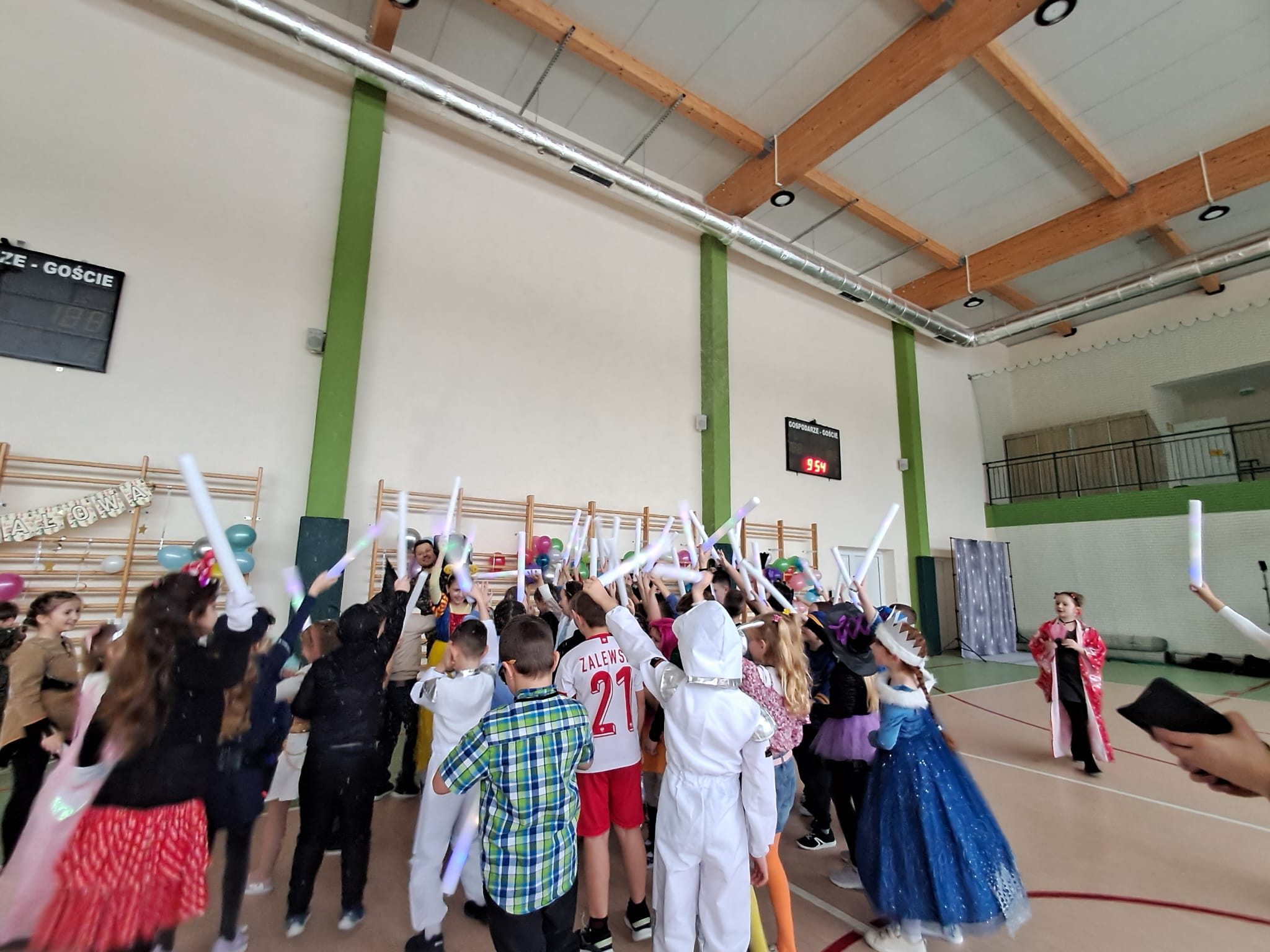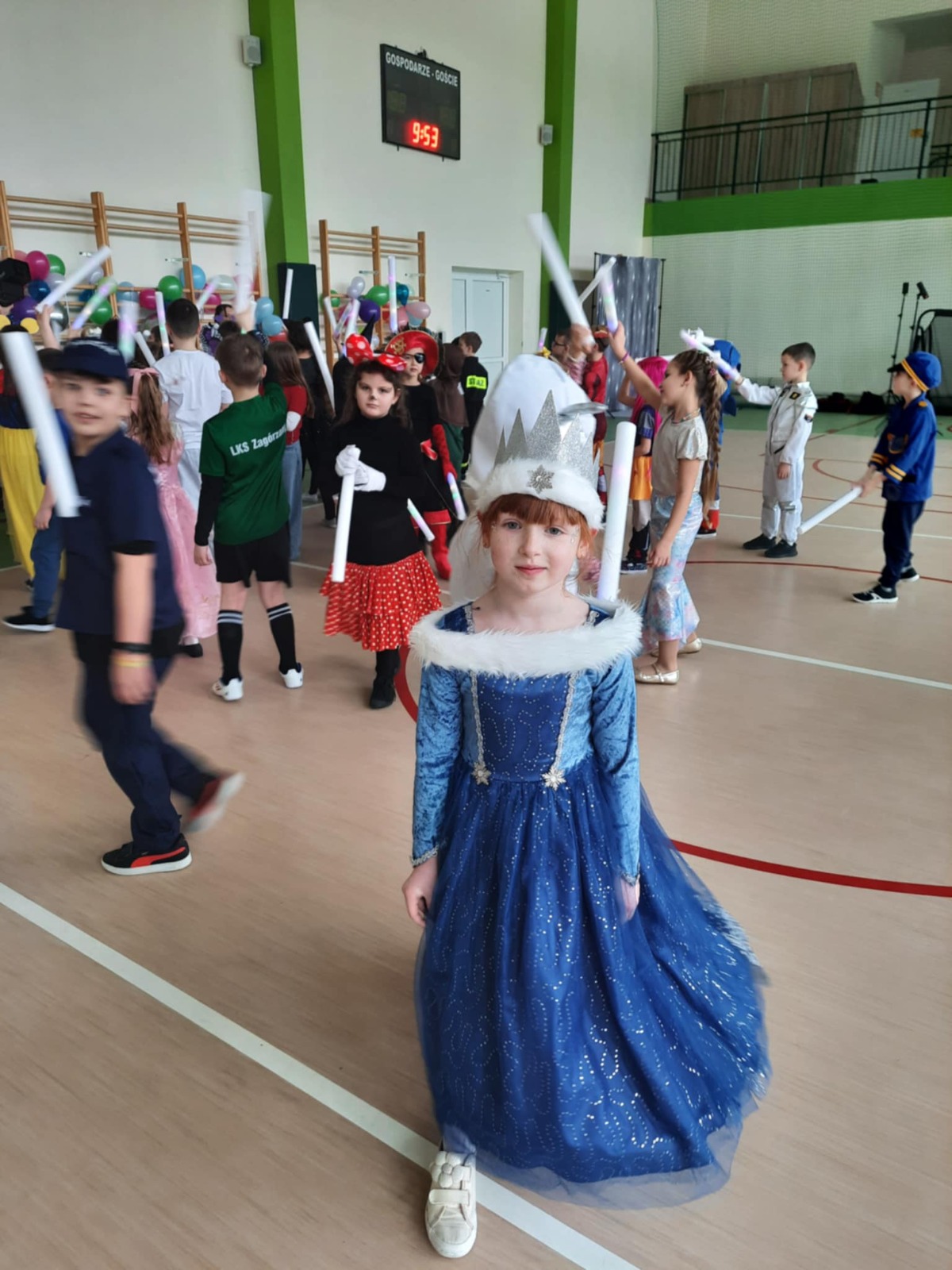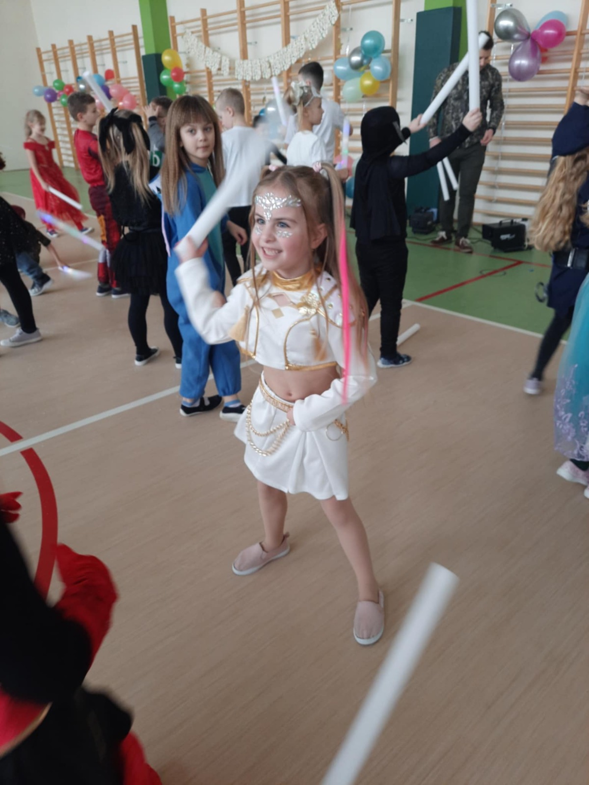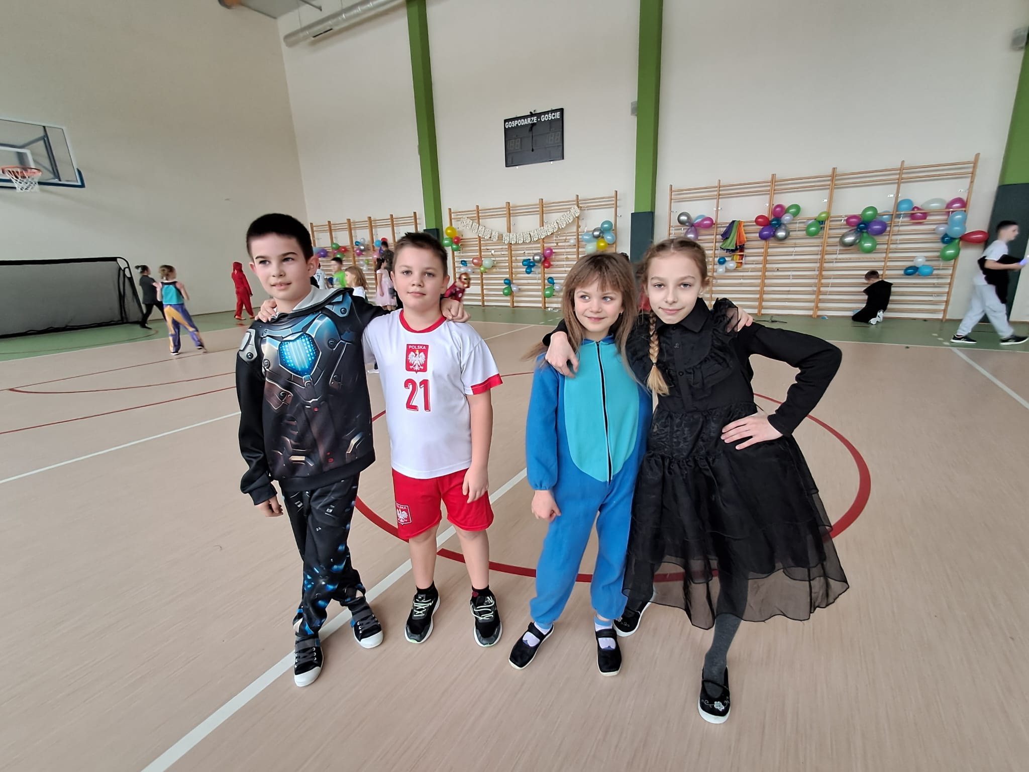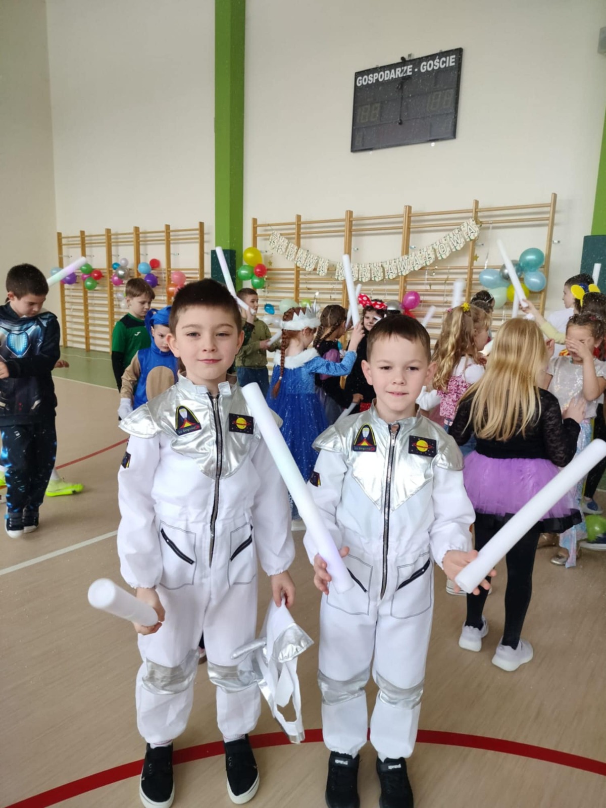 W tym roku nasz bal karnawałowy odbył się 22 stycznia i był prawdziwym świętem radości i muzyki! Dzieci z klas 1–3 wspaniale bawiły się przy wesołych rytmach, tańcząc w znanych zabawach, takich jak „Kaczuszki”, „Krasnoludki” czy „Krecik”. Parkiet rozświetlały migoczące świetlne pałki, a w powietrzu unosił się lekki śnieg i tajemniczy dym – jak w prawdziwej bajce Po szalonych tańcach czekał na nich pyszny poczęstunek. Na koniec odbyła się kolorowa sesja zdjęciowa, dzięki której każdy mógł zachować te wyjątkowe chwile w pięknych kadrach. Bal był pełen śmiechu, radości i dziecięcej energii. To był dzień, który uczniowie klas 1–3 będą wspominać z wielkim uśmiechem na twarzy!