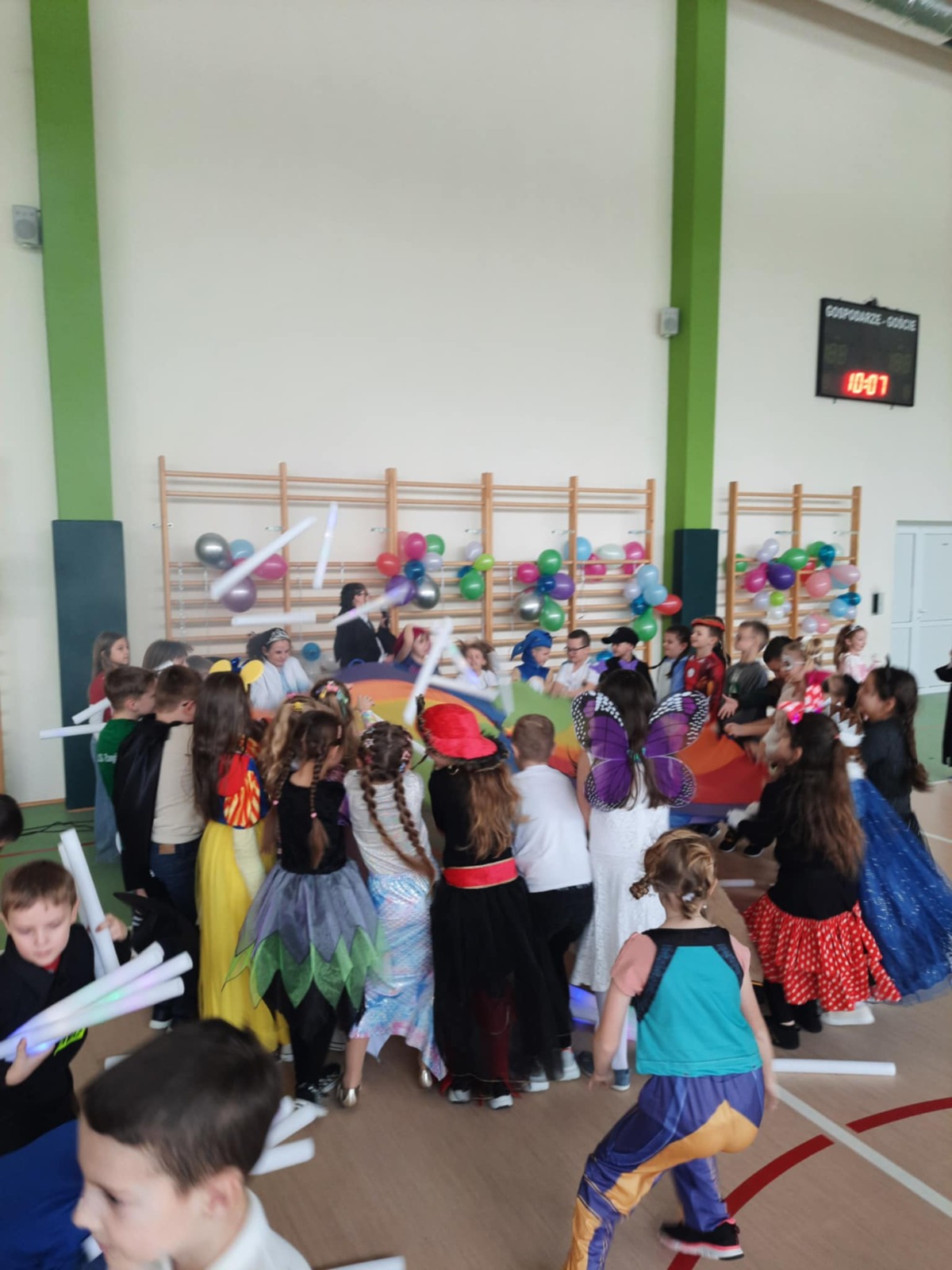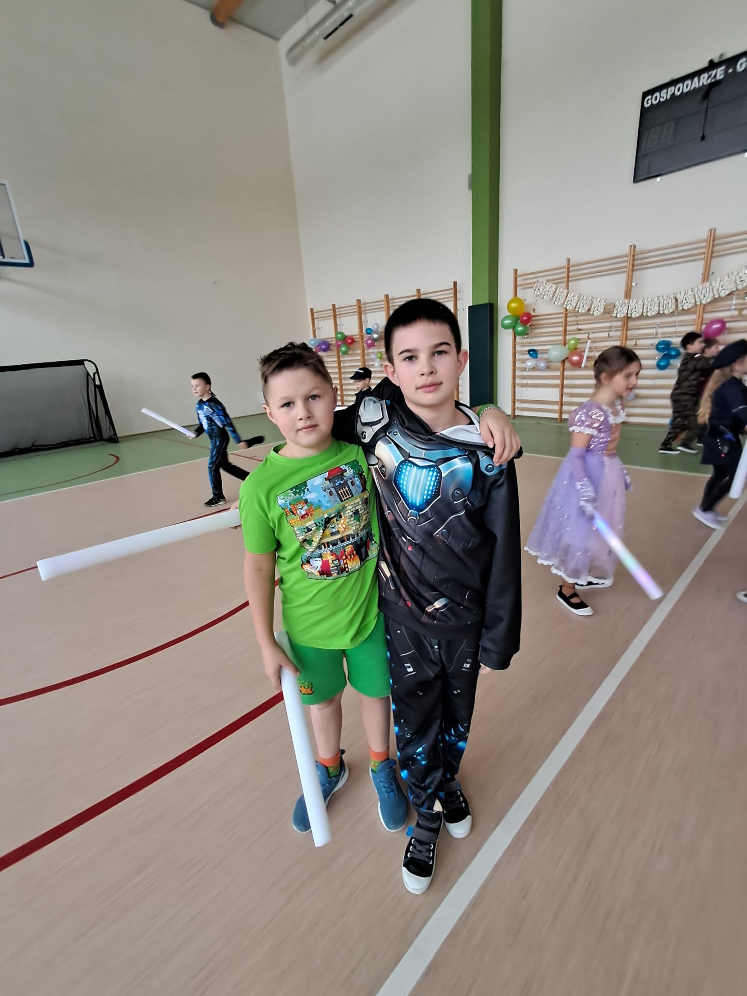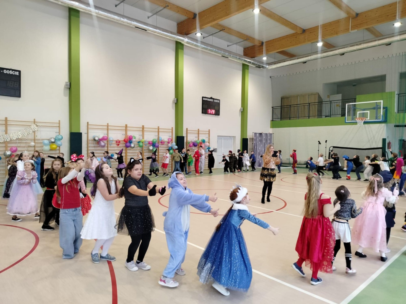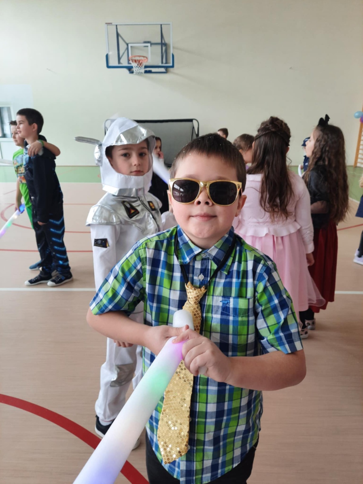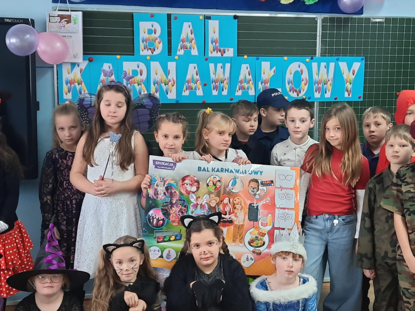W tym roku nasz bal karnawałowy odbył się 22 stycznia i był prawdziwym świętem radości i muzyki! Dzieci z klas 1–3 wspaniale bawiły się przy wesołych rytmach, tańcząc w znanych zabawach, takich jak „Kaczuszki”, „Krasnoludki” czy „Krecik”. Parkiet rozświetlały migoczące świetlne pałki, a w powietrzu unosił się lekki śnieg i tajemniczy dym – jak w prawdziwej bajce Po szalonych tańcach czekał na nich pyszny poczęstunek. Na koniec odbyła się kolorowa sesja zdjęciowa, dzięki której każdy mógł zachować te wyjątkowe chwile w pięknych kadrach. Bal był pełen śmiechu, radości i dziecięcej energii. To był dzień, który uczniowie klas 1–3 będą wspominać z wielkim uśmiechem na twarzy!