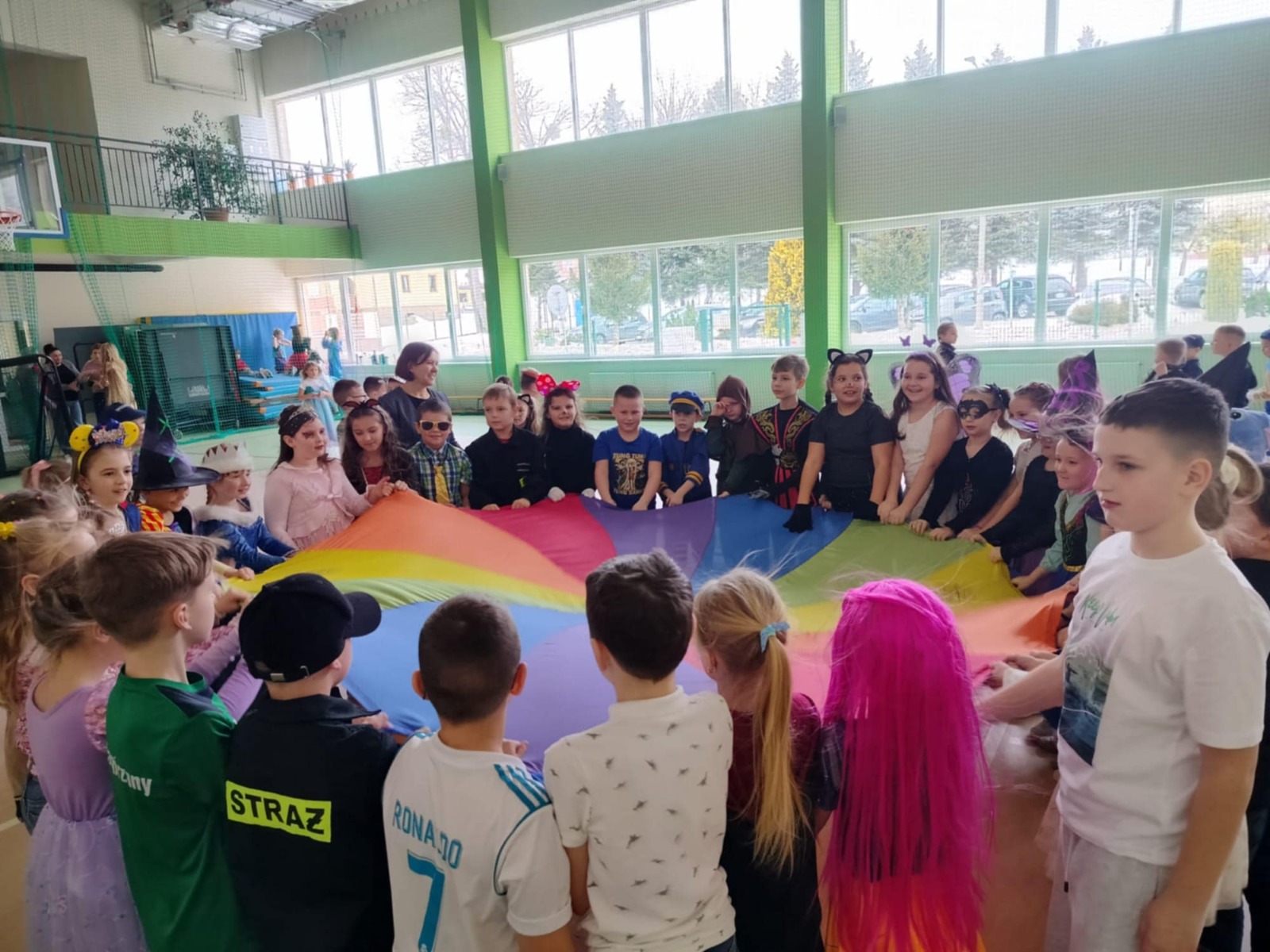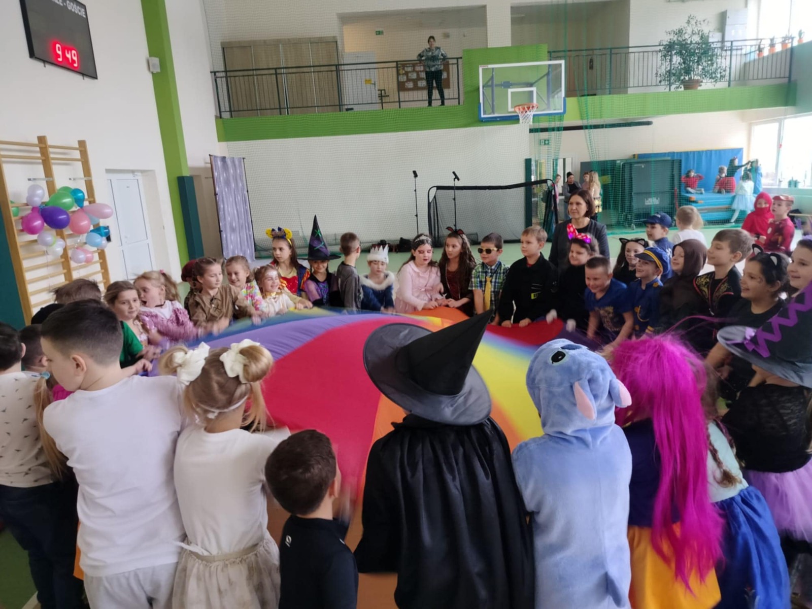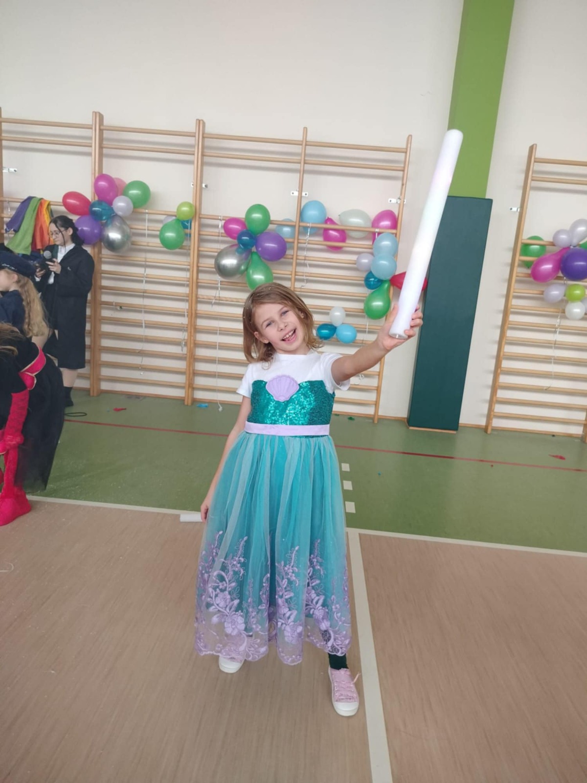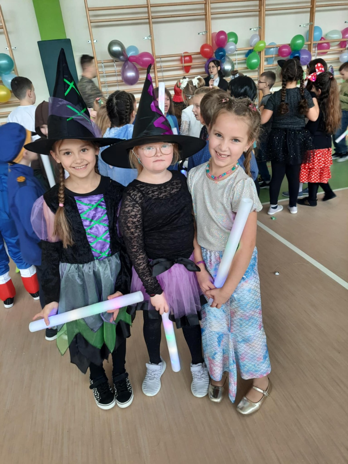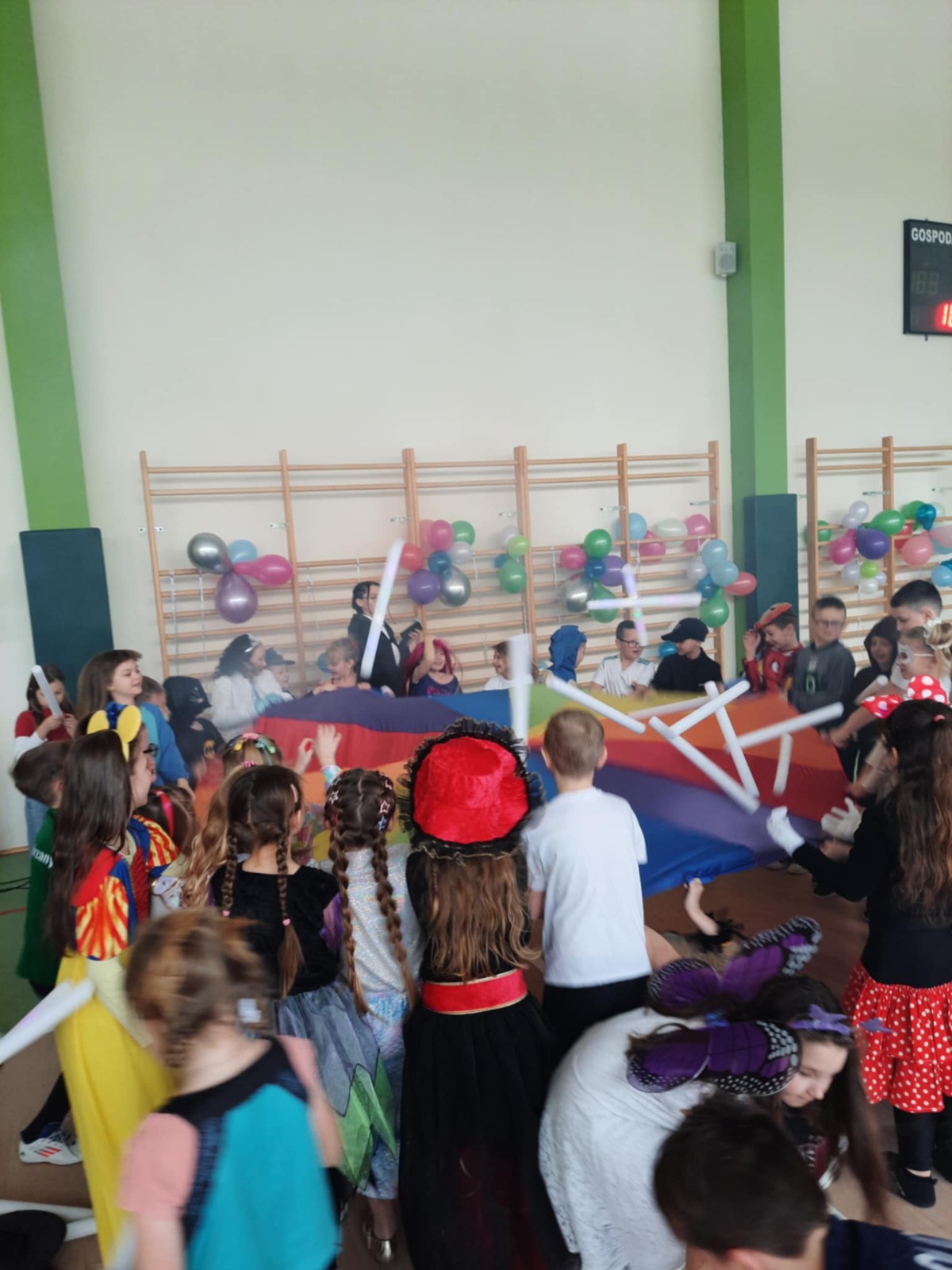 W tym roku nasz bal karnawałowy odbył się 22 stycznia i był prawdziwym świętem radości i muzyki! Dzieci z klas 1–3 wspaniale bawiły się przy wesołych rytmach, tańcząc w znanych zabawach, takich jak „Kaczuszki”, „Krasnoludki” czy „Krecik”. Parkiet rozświetlały migoczące świetlne pałki, a w powietrzu unosił się lekki śnieg i tajemniczy dym – jak w prawdziwej bajce Po szalonych tańcach czekał na nich pyszny poczęstunek. Na koniec odbyła się kolorowa sesja zdjęciowa, dzięki której każdy mógł zachować te wyjątkowe chwile w pięknych kadrach. Bal był pełen śmiechu, radości i dziecięcej energii. To był dzień, który uczniowie klas 1–3 będą wspominać z wielkim uśmiechem na twarzy!