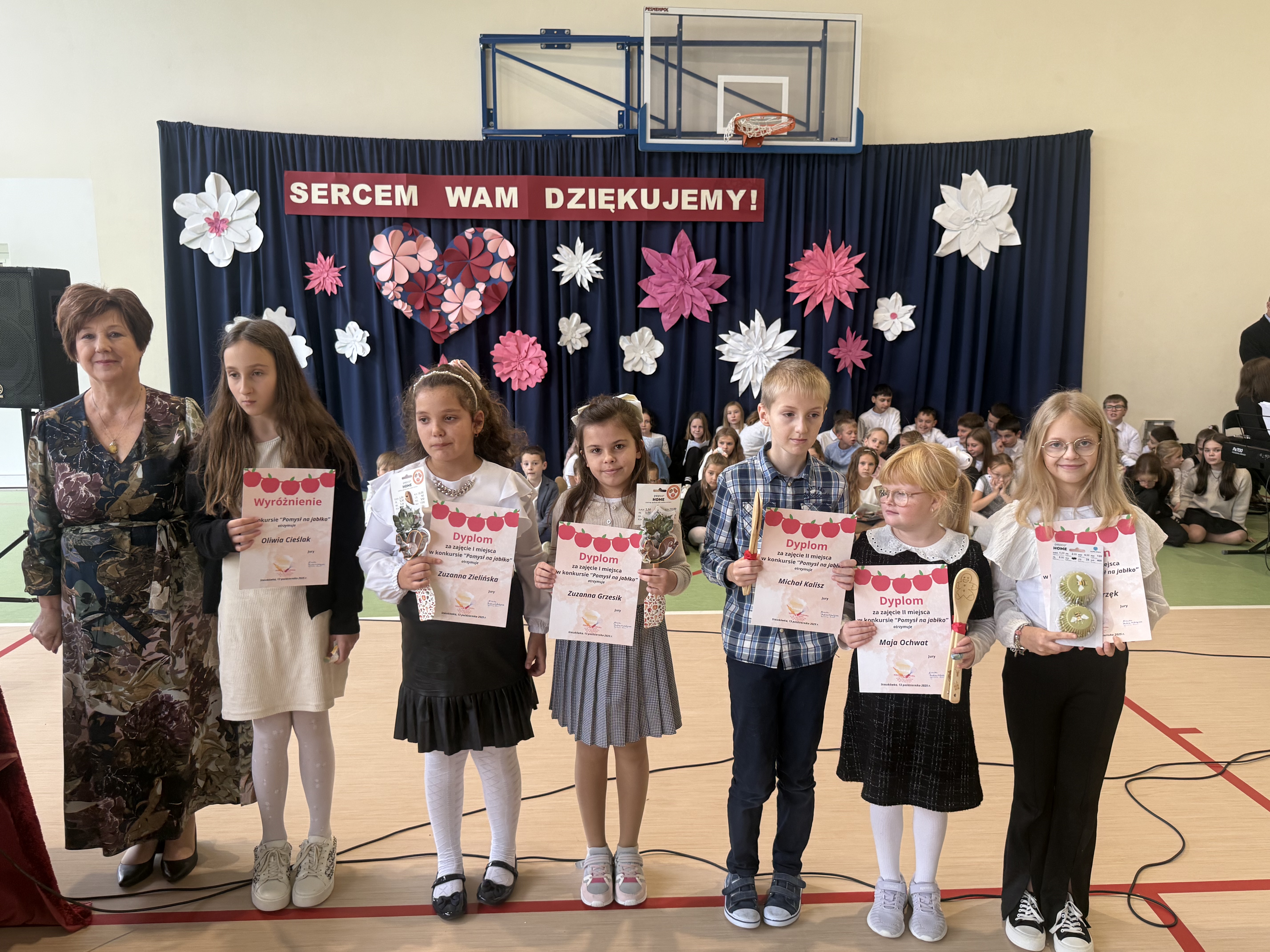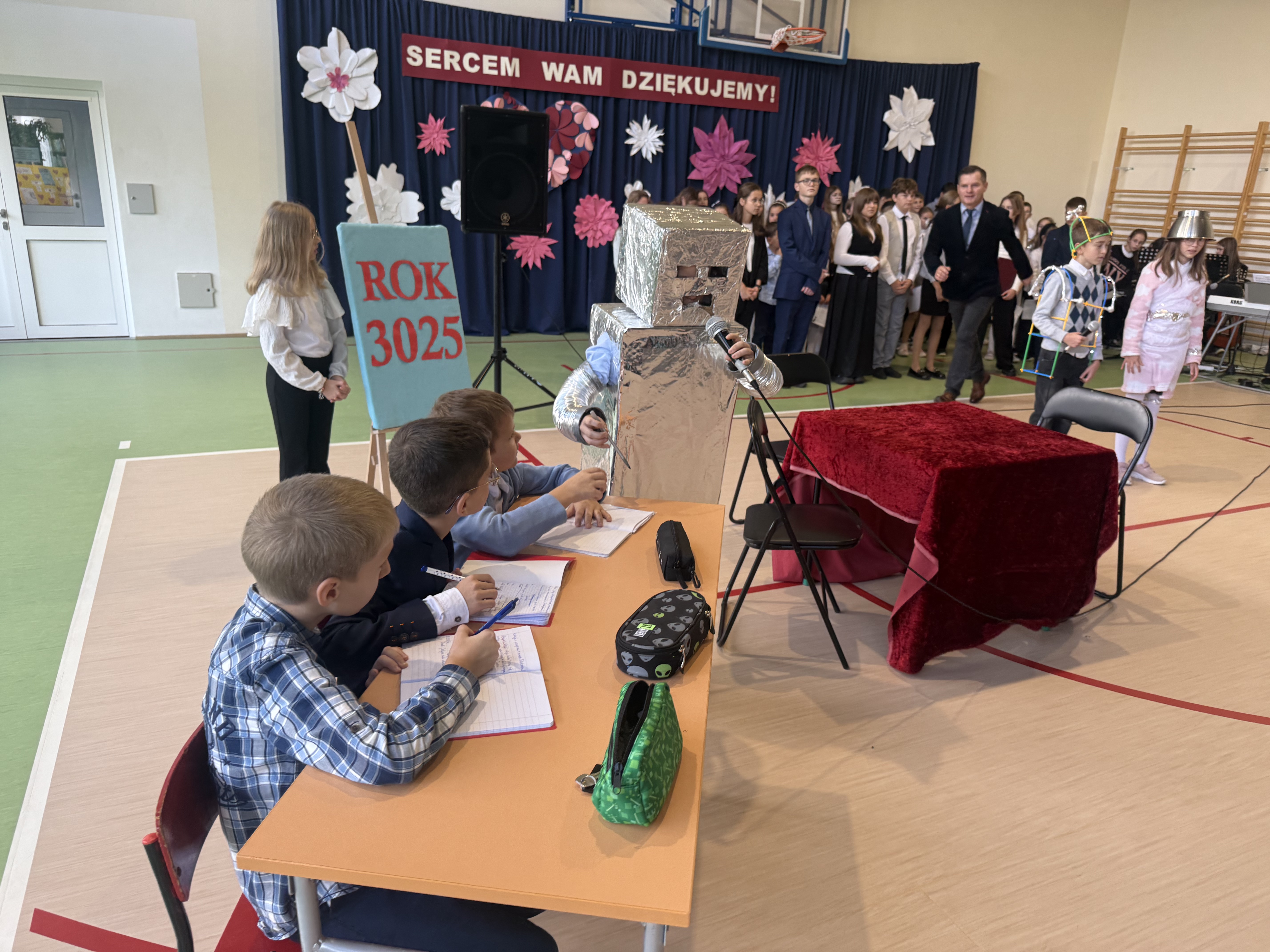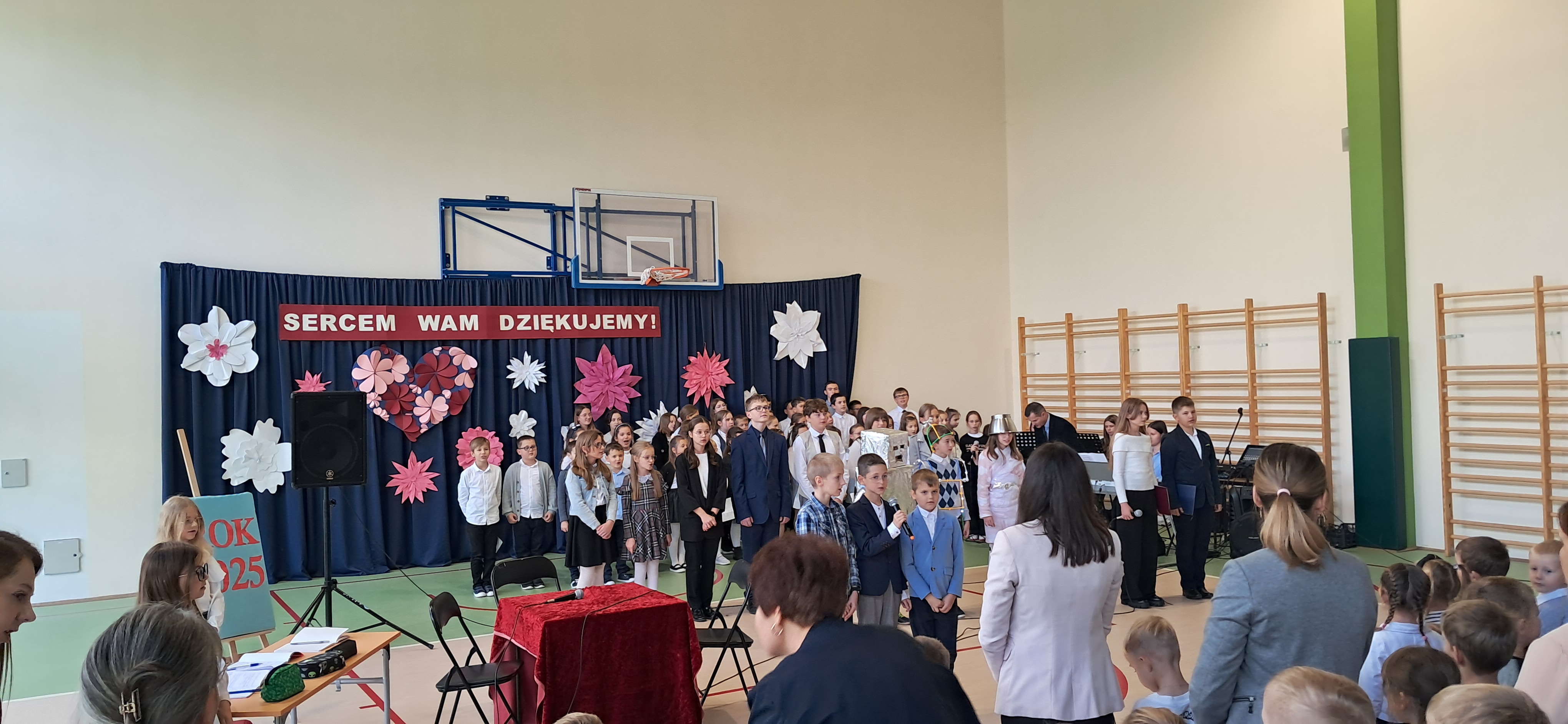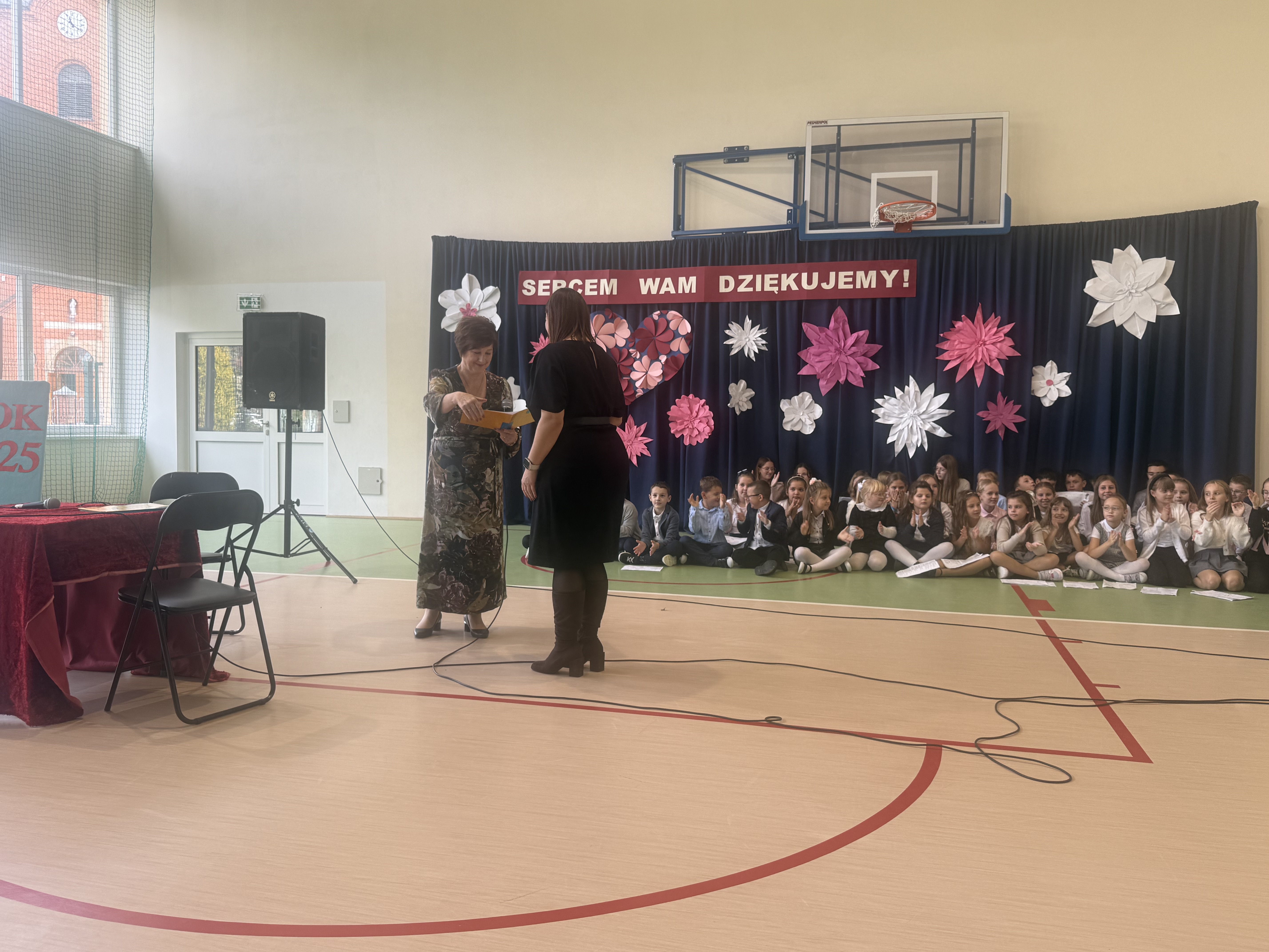 Tegoroczny Dzień Edukacji Narodowej w naszej szkole był wyjątkowym wydarzeniem, przygotowanym z zaangażowaniem i sercem przez uczniów Samorządu Uczniowskiego pod opieką pani Anny Nowackiej i pani Małgorzaty Dranki. Uroczystość odbyła się w sali gimnastycznej i dostarczyła wielu emocji – od wzruszeń po szczery śmiech. Obchody rozpoczęły się częścią artystyczną. Uczniowie zaprezentowali wzruszające wiersze, które były pięknym wyrazem szacunku i wdzięczności wobec nauczycieli i wszystkich pracowników szkoły. W wielu oczach pojawiły się łzy wzruszenia – słowa młodych artystów trafiły prosto w serca. Na scenie wystąpił szkolny chór, pod czujnym okiem pana Piotra Burkota. Piękne wykonania znanych piosenek wprowadziły wszystkich w wyjątkowy nastrój i zostały nagrodzone gromkimi brawami. W drugiej części uczniowie zaskoczyli publiczność humorem – wystawili skecz, przedstawiający zabawną wizję szkoły przyszłości, w której nauczycieli zastąpiły... roboty! Choć technologia robiła wrażenie, nie dorównywała prawdziwym nauczycielom, co w żartobliwy sposób podkreślili młodzi aktorzy. Na zakończenie głos zabrała pani dyrektor, która serdecznie podziękowała wszystkim nauczycielom za ich codzienny trud, poświęcenie i serce wkładane w pracę z uczniami. Wręczyła również nagrody nauczycielom, co spotkało się z ogromnym aplauzem. To był dzień pełen emocji, uśmiechów i podziękowań. Pokazał, jak ważną rolę odgrywają nauczyciele w życiu szkoły i jak bardzo są doceniani przez uczniów. Dzień Nauczyciela 2025 z pewnością na długo pozostanie w naszej pamięci.
