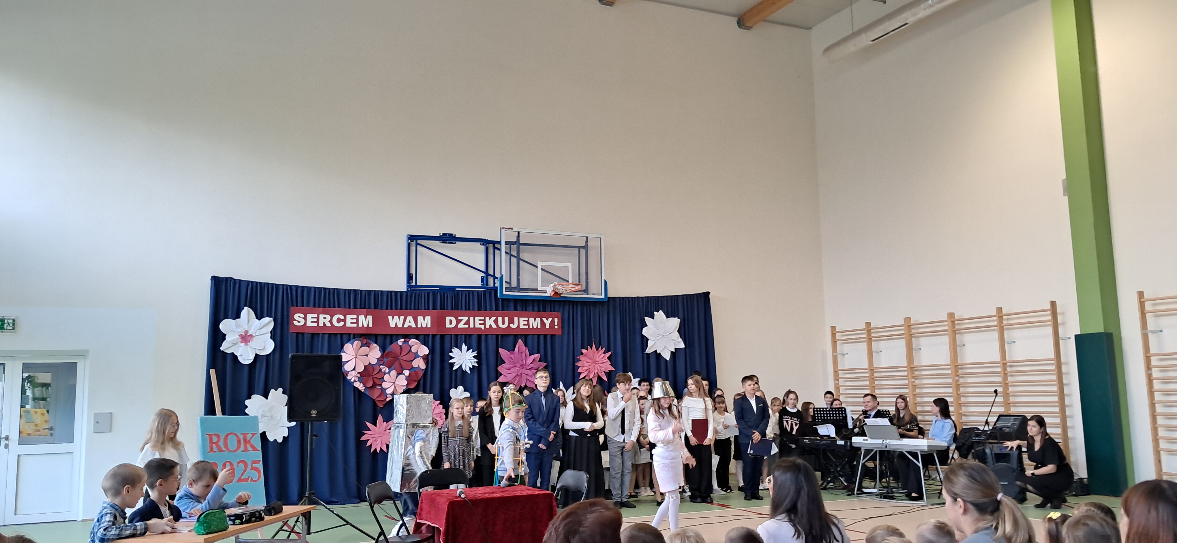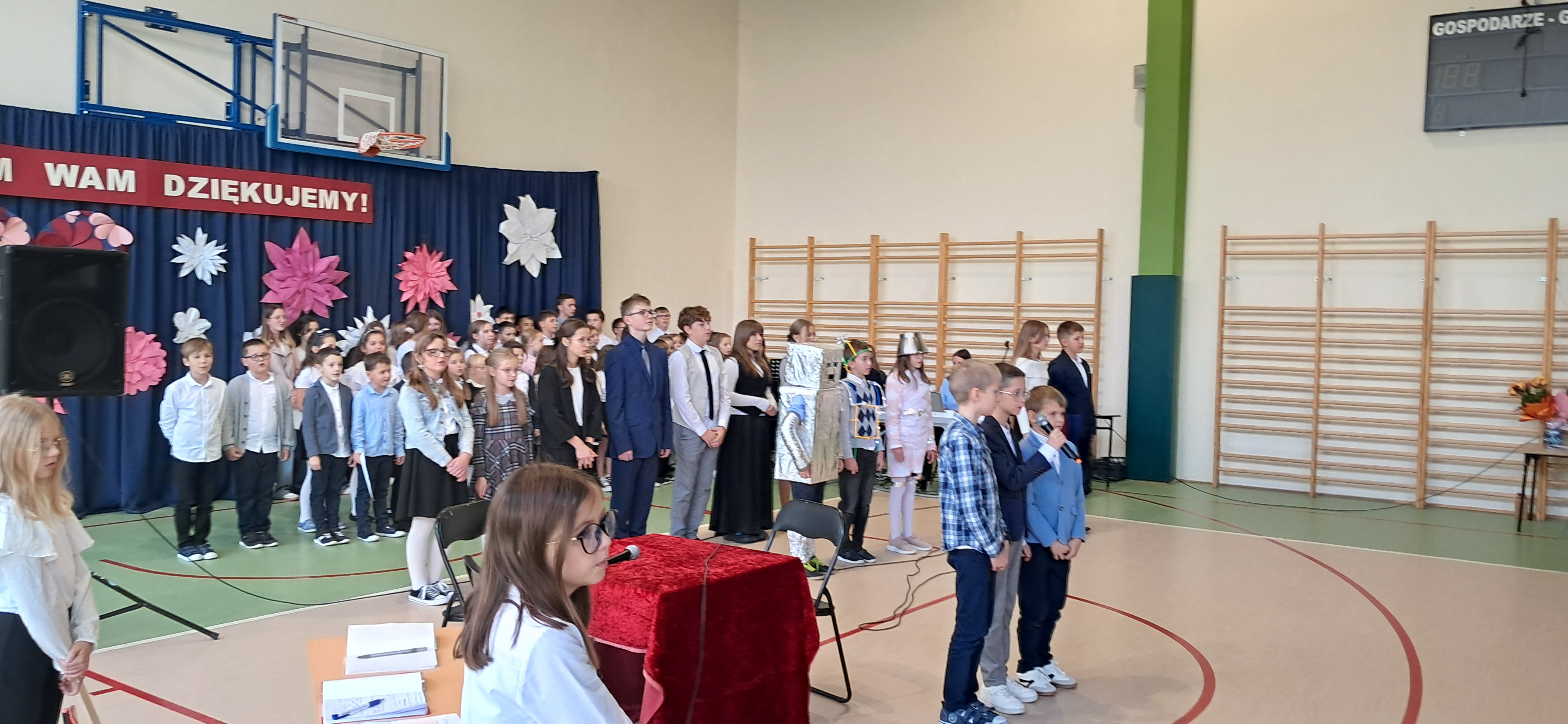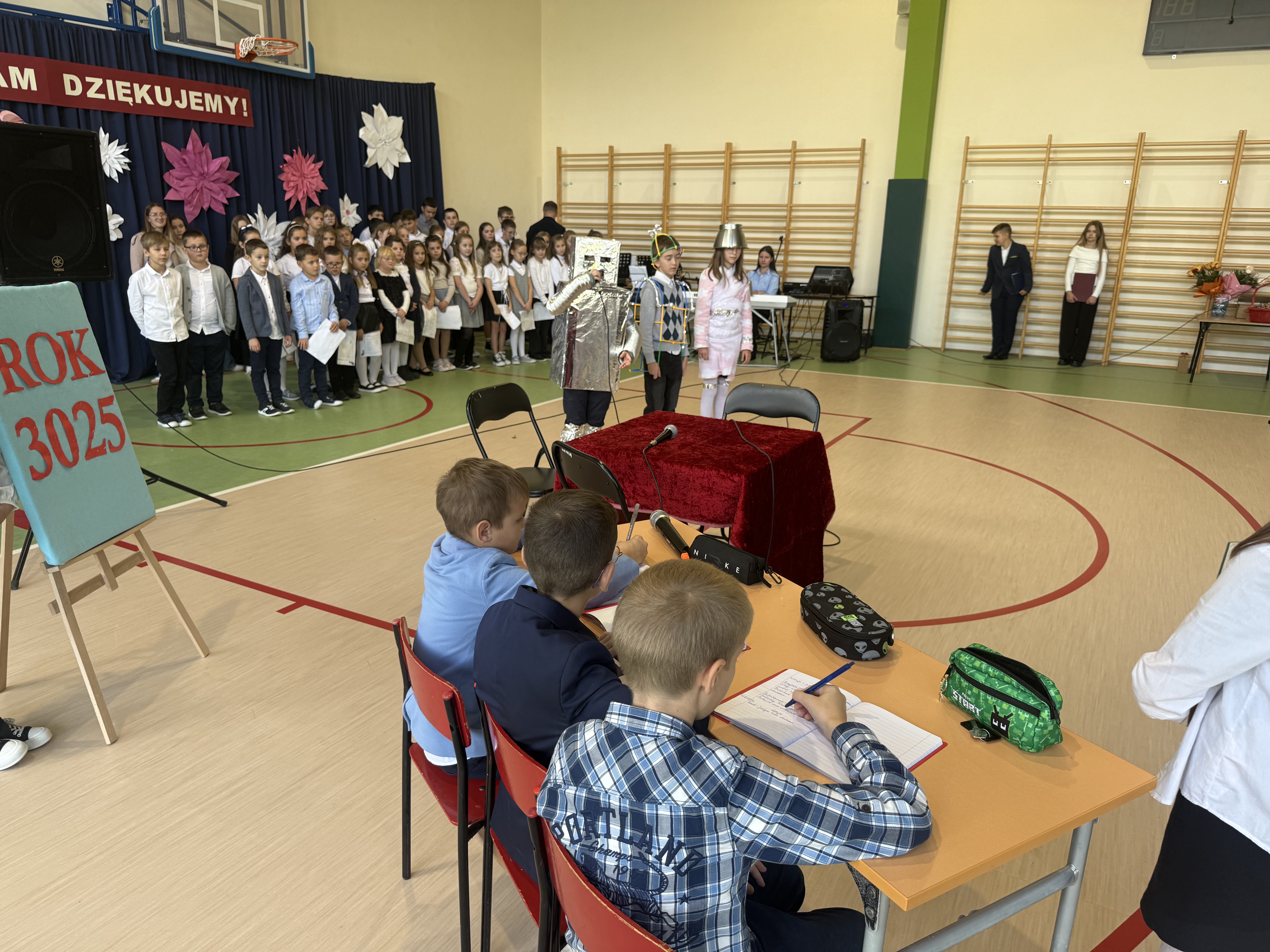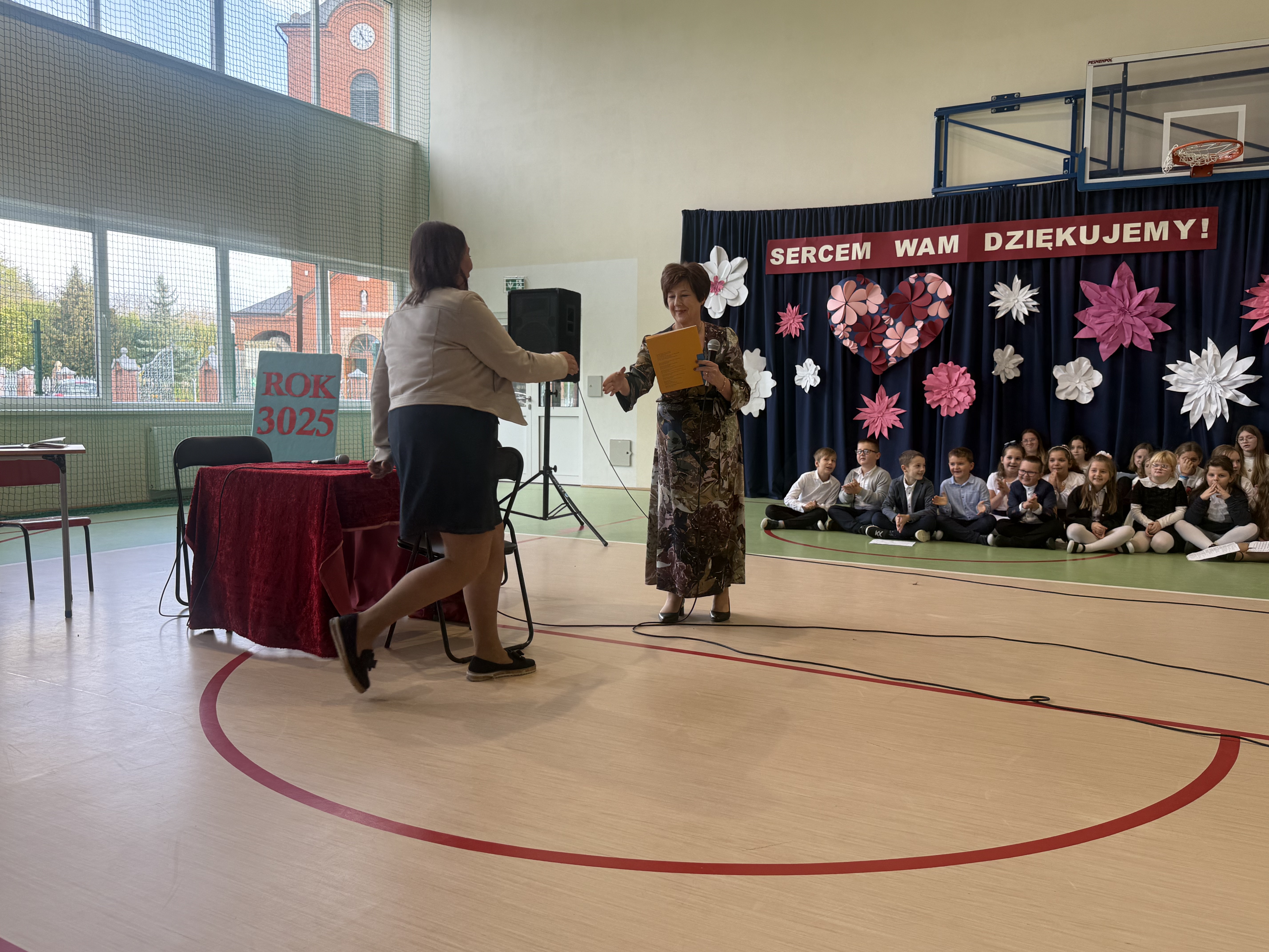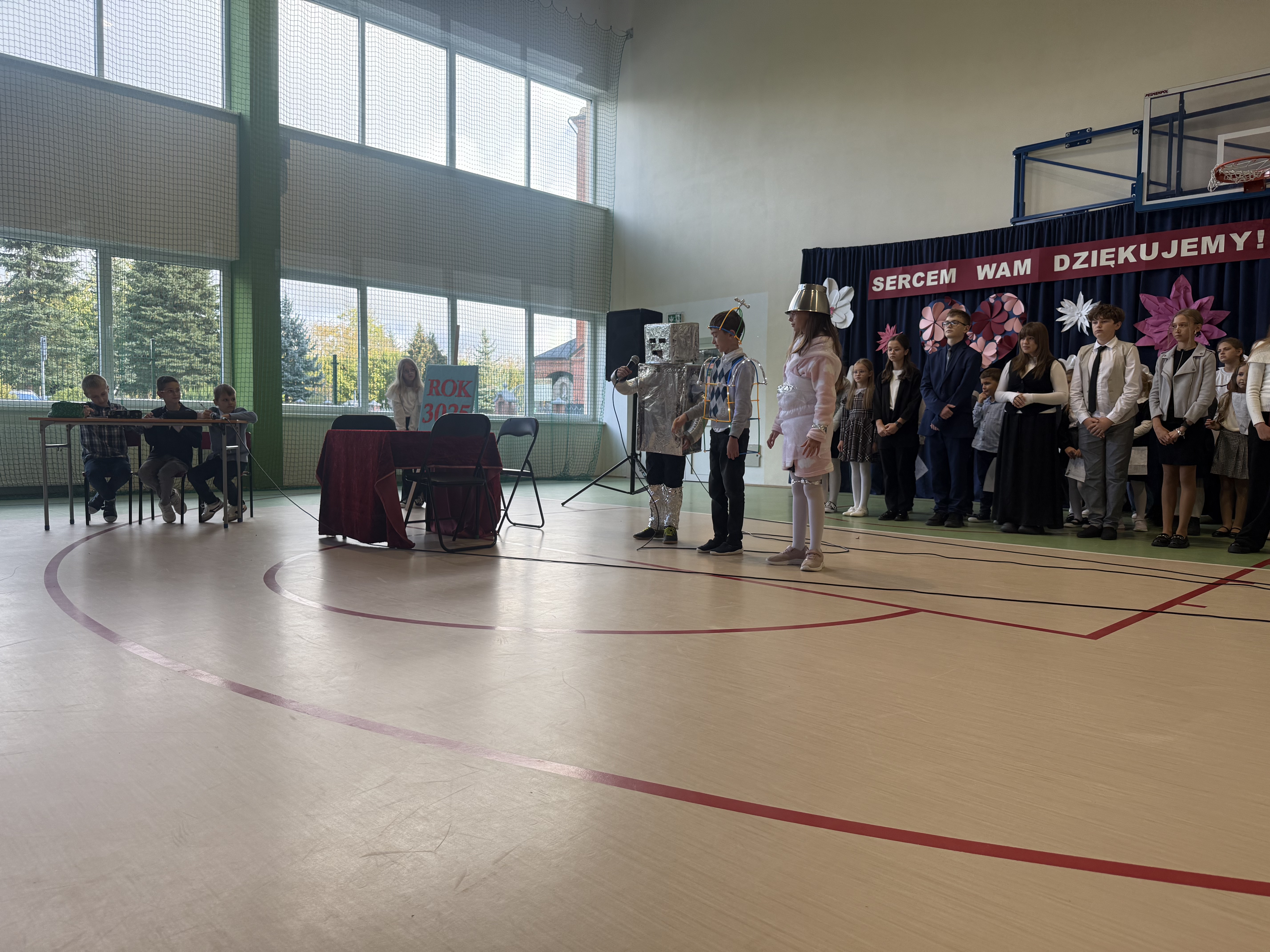 Tegoroczny Dzień Edukacji Narodowej w naszej szkole był wyjątkowym wydarzeniem, przygotowanym z zaangażowaniem i sercem przez uczniów Samorządu Uczniowskiego pod opieką pani Anny Nowackiej i pani Małgorzaty Dranki. Uroczystość odbyła się w sali gimnastycznej i dostarczyła wielu emocji – od wzruszeń po szczery śmiech. Obchody rozpoczęły się częścią artystyczną. Uczniowie zaprezentowali wzruszające wiersze, które były pięknym wyrazem szacunku i wdzięczności wobec nauczycieli i wszystkich pracowników szkoły. W wielu oczach pojawiły się łzy wzruszenia – słowa młodych artystów trafiły prosto w serca. Na scenie wystąpił szkolny chór, pod czujnym okiem pana Piotra Burkota. Piękne wykonania znanych piosenek wprowadziły wszystkich w wyjątkowy nastrój i zostały nagrodzone gromkimi brawami. W drugiej części uczniowie zaskoczyli publiczność humorem – wystawili skecz, przedstawiający zabawną wizję szkoły przyszłości, w której nauczycieli zastąpiły... roboty! Choć technologia robiła wrażenie, nie dorównywała prawdziwym nauczycielom, co w żartobliwy sposób podkreślili młodzi aktorzy. Na zakończenie głos zabrała pani dyrektor, która serdecznie podziękowała wszystkim nauczycielom za ich codzienny trud, poświęcenie i serce wkładane w pracę z uczniami. Wręczyła również nagrody nauczycielom, co spotkało się z ogromnym aplauzem. To był dzień pełen emocji, uśmiechów i podziękowań. Pokazał, jak ważną rolę odgrywają nauczyciele w życiu szkoły i jak bardzo są doceniani przez uczniów. Dzień Nauczyciela 2025 z pewnością na długo pozostanie w naszej pamięci.