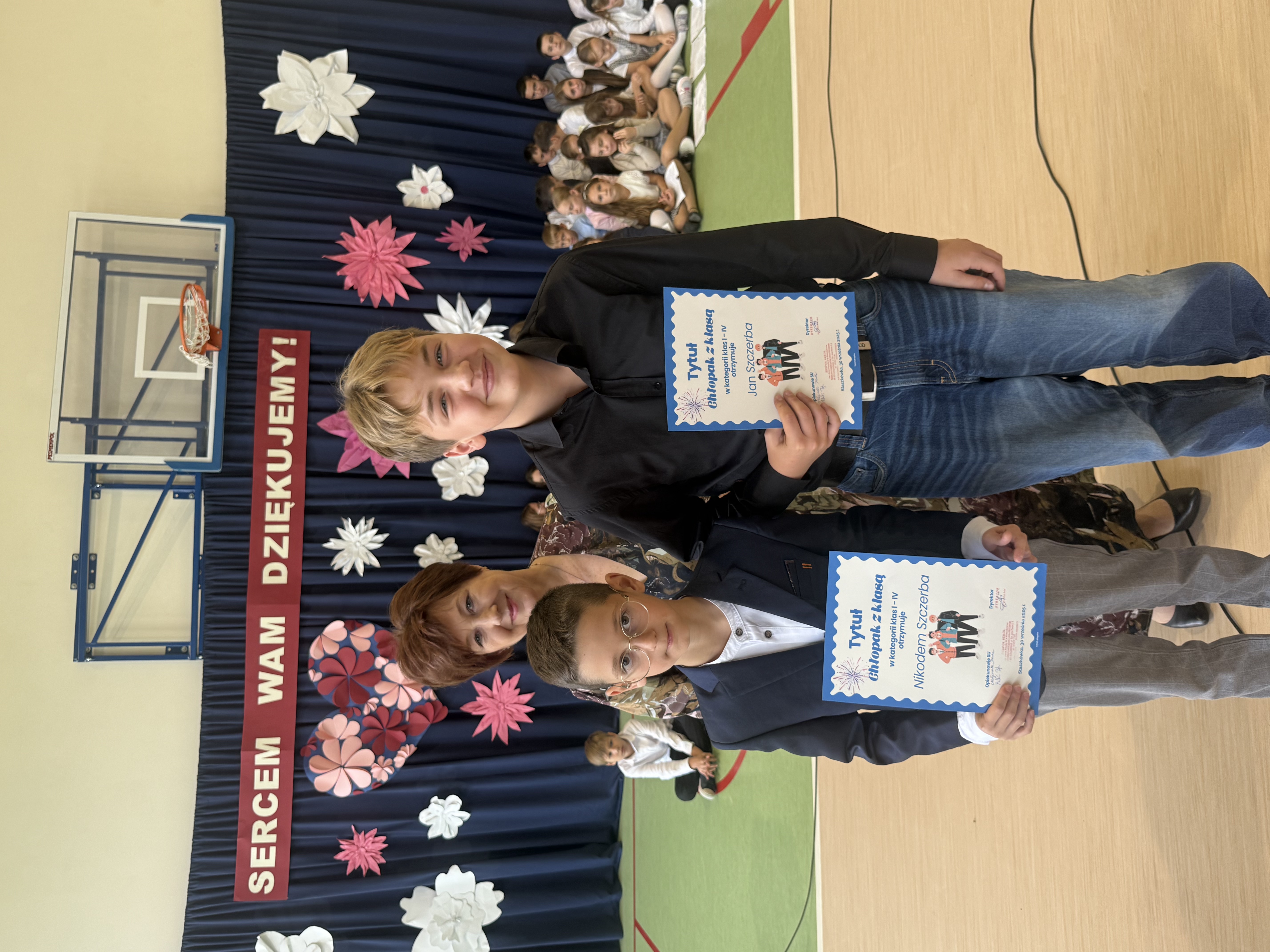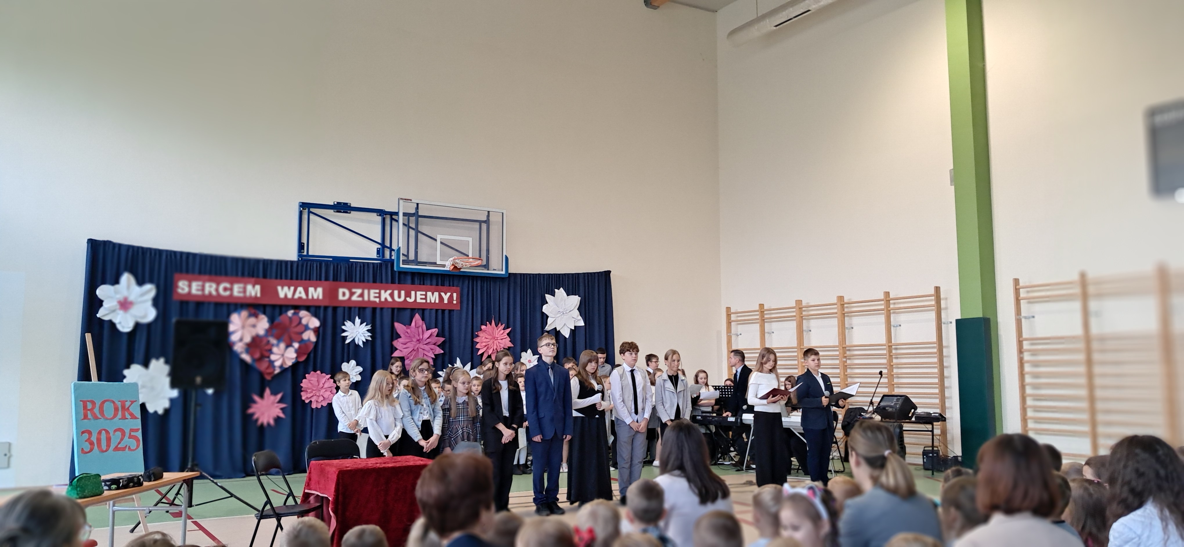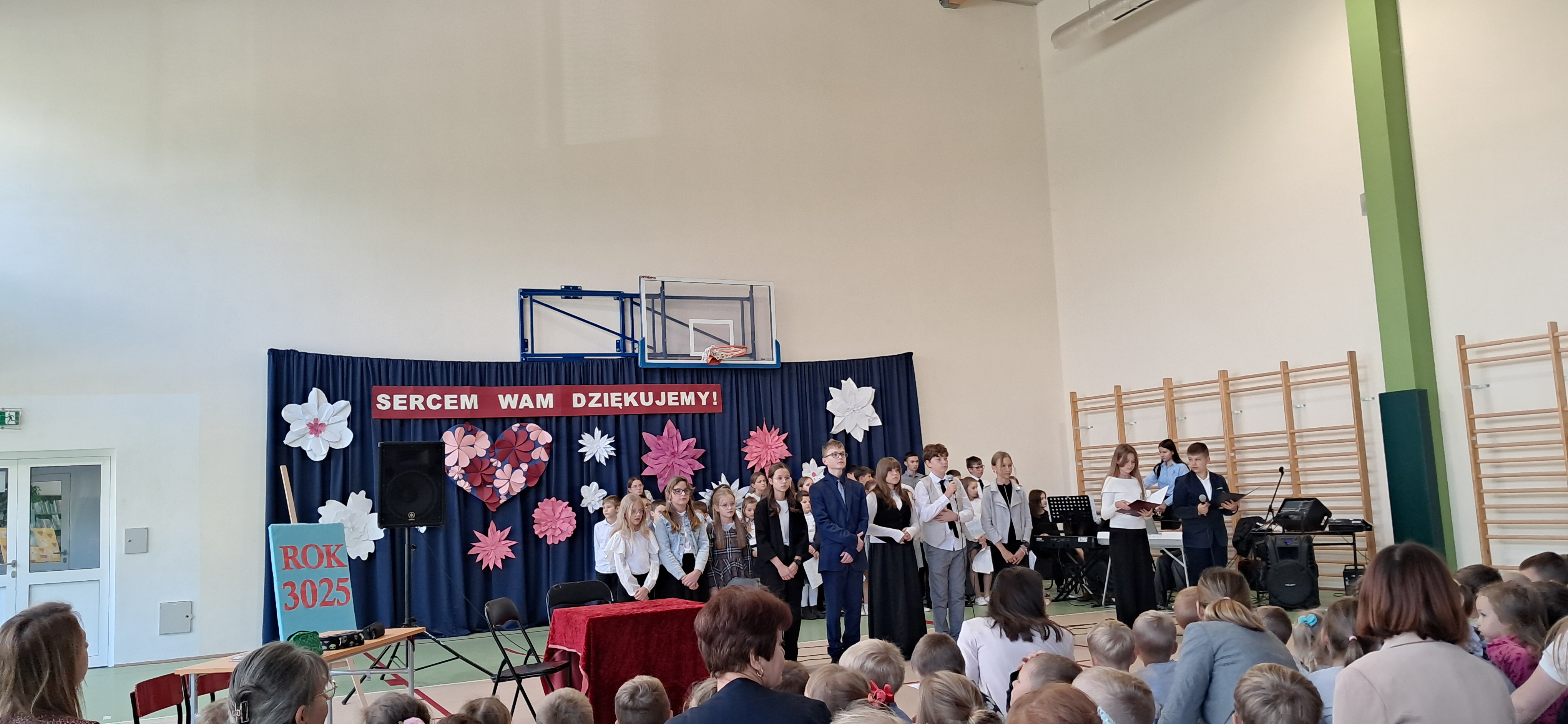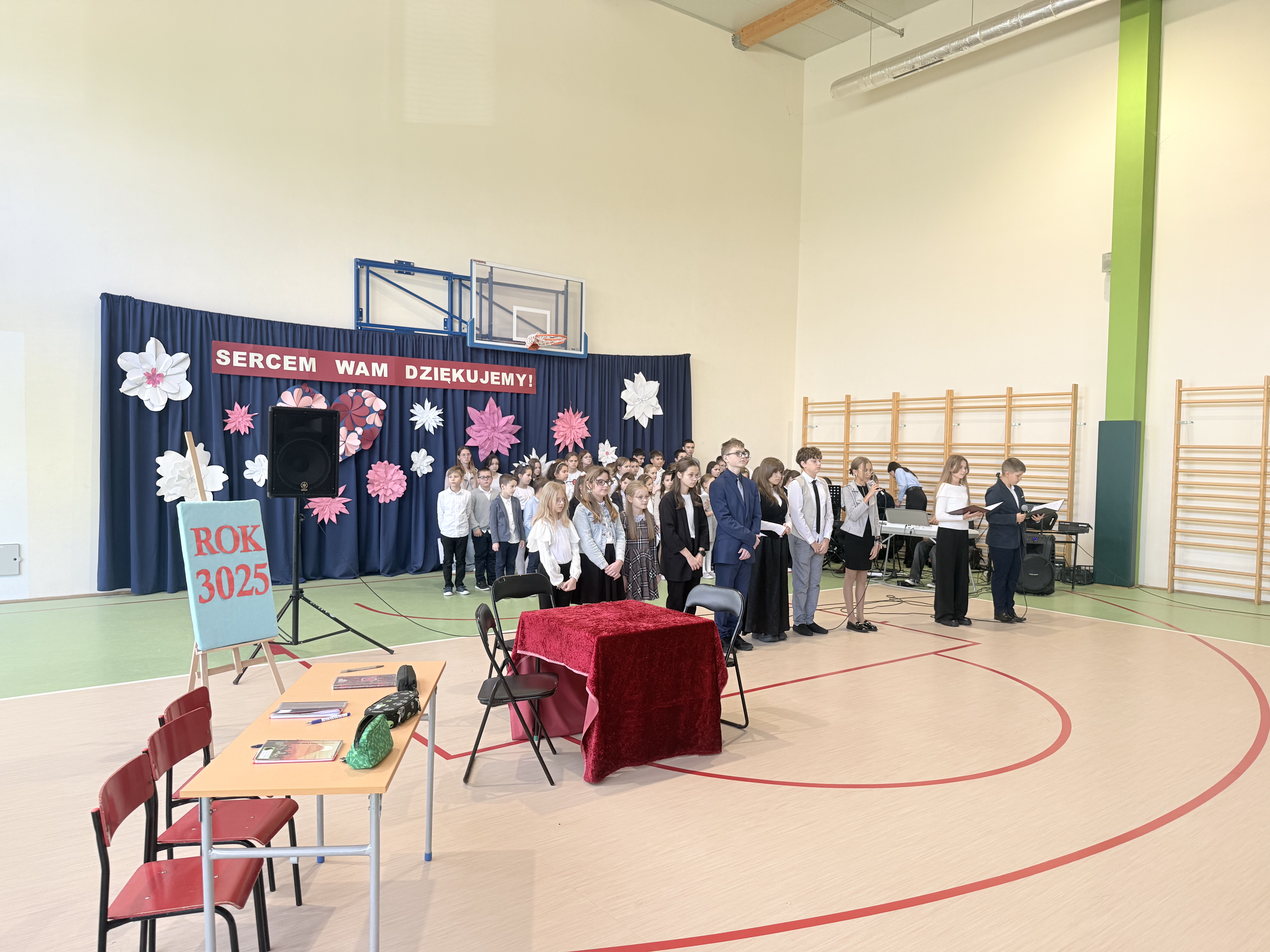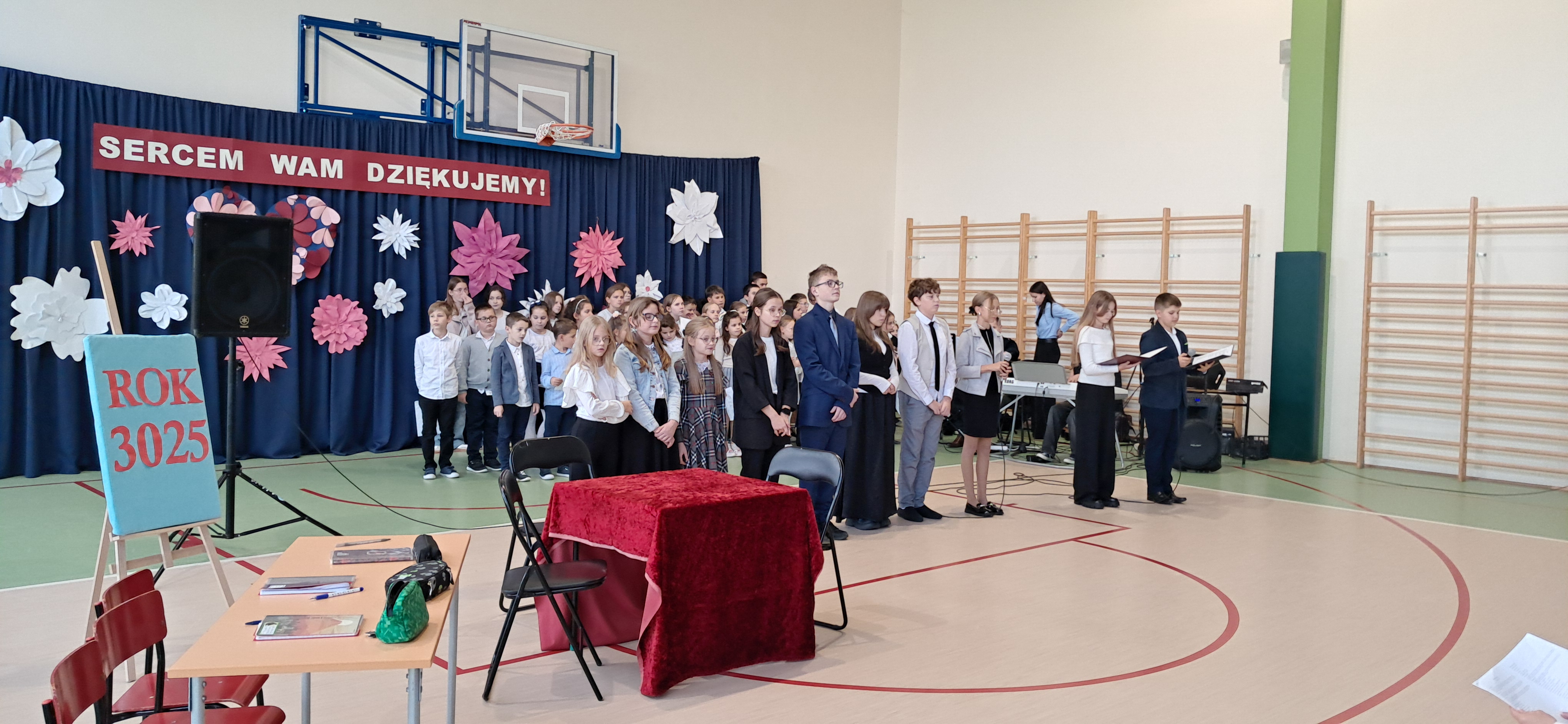 Tegoroczny Dzień Edukacji Narodowej w naszej szkole był wyjątkowym wydarzeniem, przygotowanym z zaangażowaniem i sercem przez uczniów Samorządu Uczniowskiego pod opieką pani Anny Nowackiej i pani Małgorzaty Dranki. Uroczystość odbyła się w sali gimnastycznej i dostarczyła wielu emocji – od wzruszeń po szczery śmiech. Obchody rozpoczęły się częścią artystyczną. Uczniowie zaprezentowali wzruszające wiersze, które były pięknym wyrazem szacunku i wdzięczności wobec nauczycieli i wszystkich pracowników szkoły. W wielu oczach pojawiły się łzy wzruszenia – słowa młodych artystów trafiły prosto w serca. Na scenie wystąpił szkolny chór, pod czujnym okiem pana Piotra Burkota. Piękne wykonania znanych piosenek wprowadziły wszystkich w wyjątkowy nastrój i zostały nagrodzone gromkimi brawami. W drugiej części uczniowie zaskoczyli publiczność humorem – wystawili skecz, przedstawiający zabawną wizję szkoły przyszłości, w której nauczycieli zastąpiły... roboty! Choć technologia robiła wrażenie, nie dorównywała prawdziwym nauczycielom, co w żartobliwy sposób podkreślili młodzi aktorzy. Na zakończenie głos zabrała pani dyrektor, która serdecznie podziękowała wszystkim nauczycielom za ich codzienny trud, poświęcenie i serce wkładane w pracę z uczniami. Wręczyła również nagrody nauczycielom, co spotkało się z ogromnym aplauzem. To był dzień pełen emocji, uśmiechów i podziękowań. Pokazał, jak ważną rolę odgrywają nauczyciele w życiu szkoły i jak bardzo są doceniani przez uczniów. Dzień Nauczyciela 2025 z pewnością na długo pozostanie w naszej pamięci.
