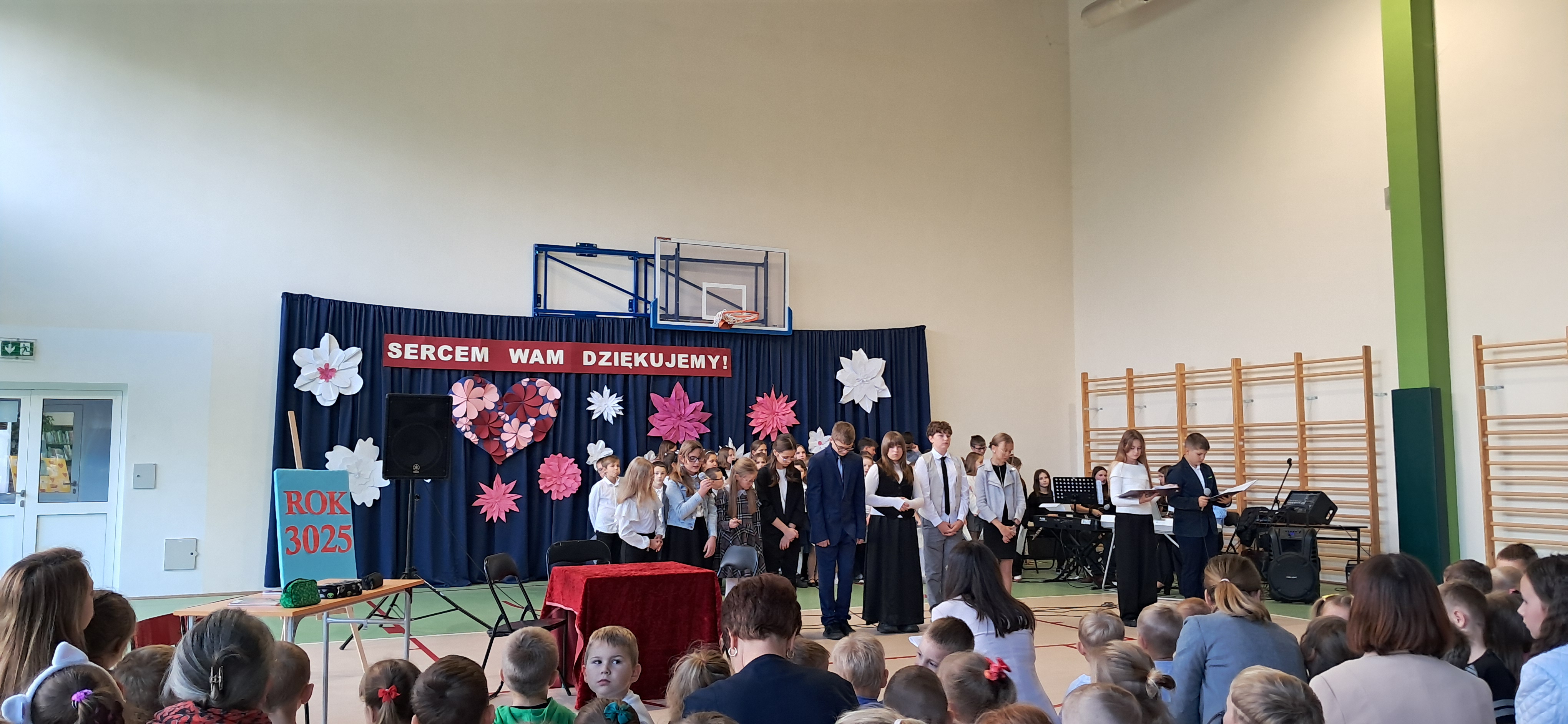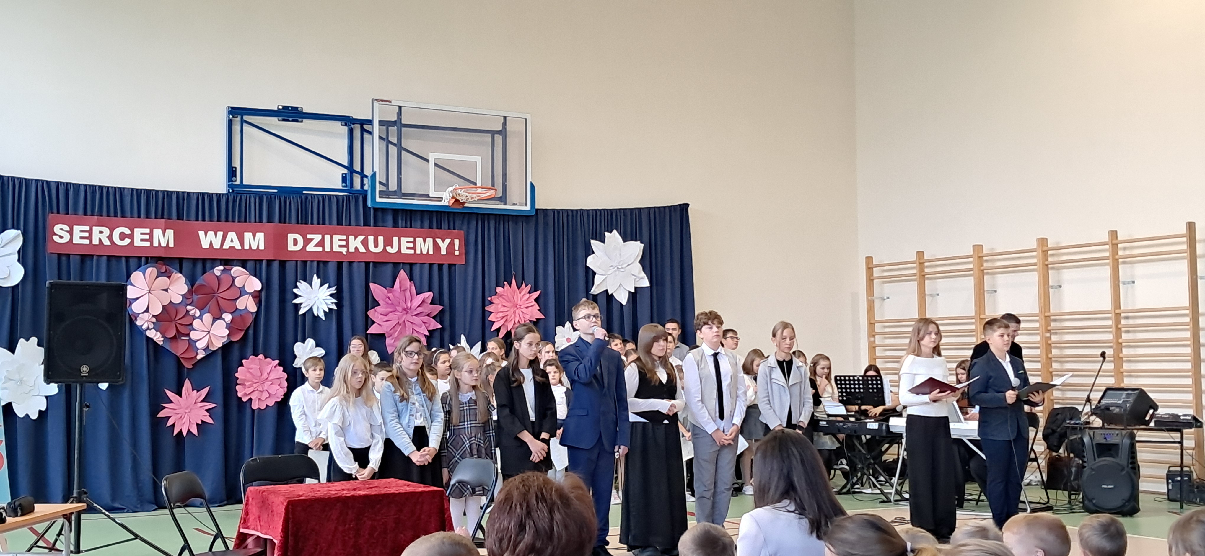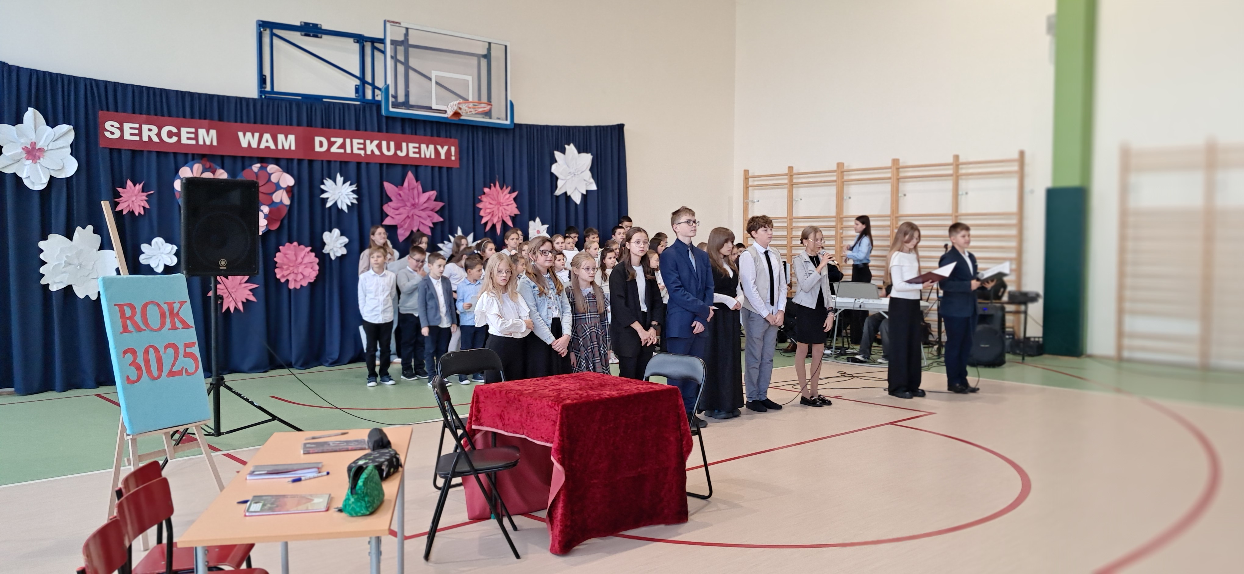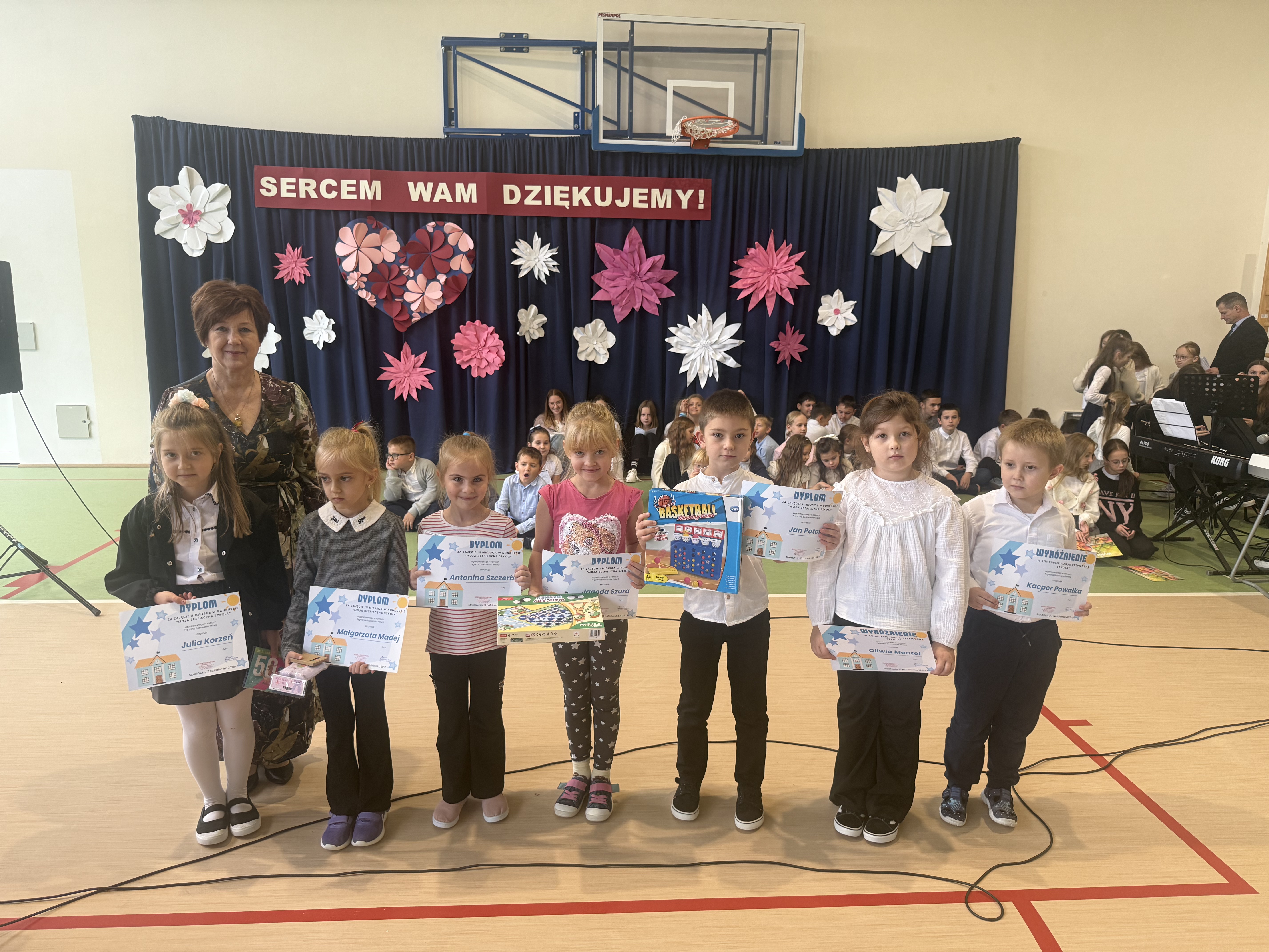 Tegoroczny Dzień Edukacji Narodowej w naszej szkole był wyjątkowym wydarzeniem, przygotowanym z zaangażowaniem i sercem przez uczniów Samorządu Uczniowskiego pod opieką pani Anny Nowackiej i pani Małgorzaty Dranki. Uroczystość odbyła się w sali gimnastycznej i dostarczyła wielu emocji – od wzruszeń po szczery śmiech. Obchody rozpoczęły się częścią artystyczną. Uczniowie zaprezentowali wzruszające wiersze, które były pięknym wyrazem szacunku i wdzięczności wobec nauczycieli i wszystkich pracowników szkoły. W wielu oczach pojawiły się łzy wzruszenia – słowa młodych artystów trafiły prosto w serca. Na scenie wystąpił szkolny chór, pod czujnym okiem pana Piotra Burkota. Piękne wykonania znanych piosenek wprowadziły wszystkich w wyjątkowy nastrój i zostały nagrodzone gromkimi brawami. W drugiej części uczniowie zaskoczyli publiczność humorem – wystawili skecz, przedstawiający zabawną wizję szkoły przyszłości, w której nauczycieli zastąpiły... roboty! Choć technologia robiła wrażenie, nie dorównywała prawdziwym nauczycielom, co w żartobliwy sposób podkreślili młodzi aktorzy. Na zakończenie głos zabrała pani dyrektor, która serdecznie podziękowała wszystkim nauczycielom za ich codzienny trud, poświęcenie i serce wkładane w pracę z uczniami. Wręczyła również nagrody nauczycielom, co spotkało się z ogromnym aplauzem. To był dzień pełen emocji, uśmiechów i podziękowań. Pokazał, jak ważną rolę odgrywają nauczyciele w życiu szkoły i jak bardzo są doceniani przez uczniów. Dzień Nauczyciela 2025 z pewnością na długo pozostanie w naszej pamięci.