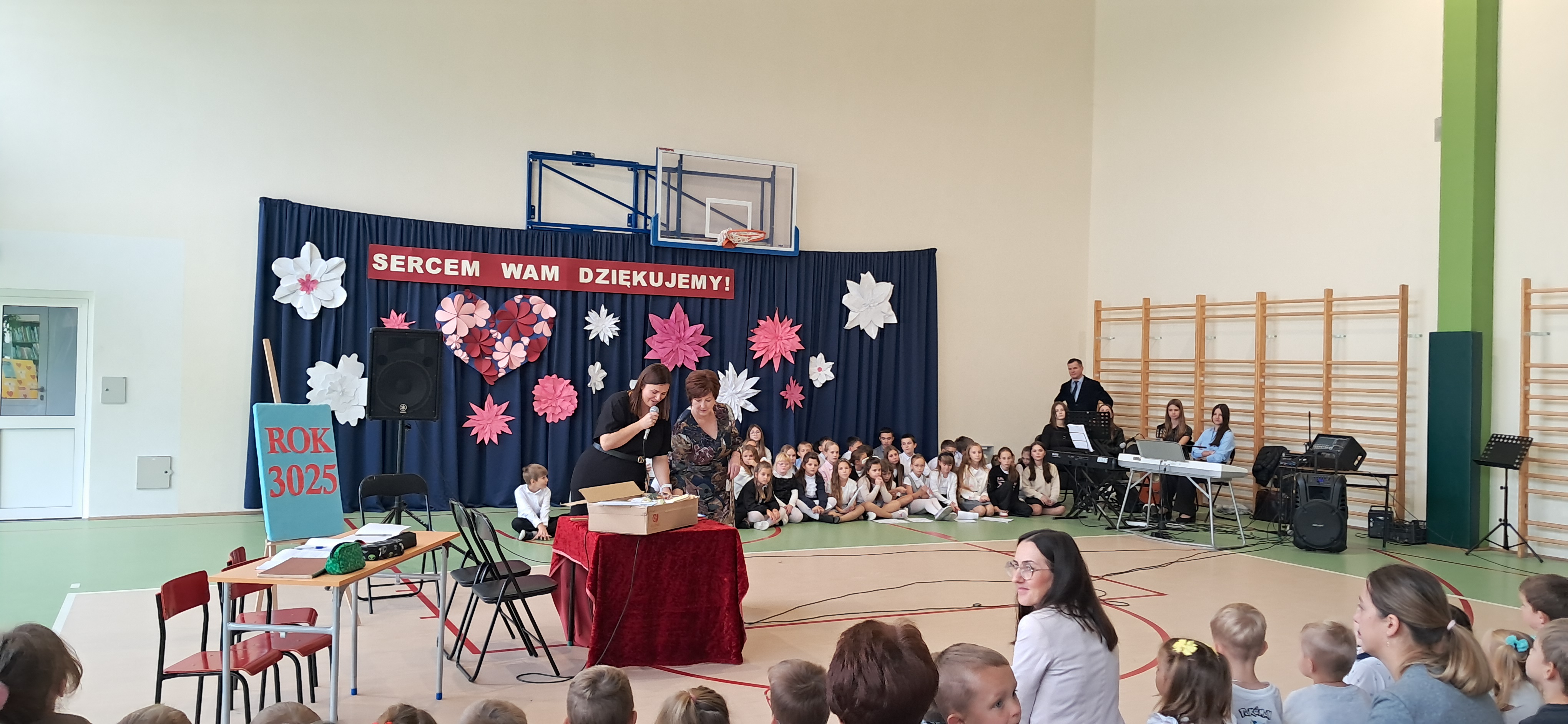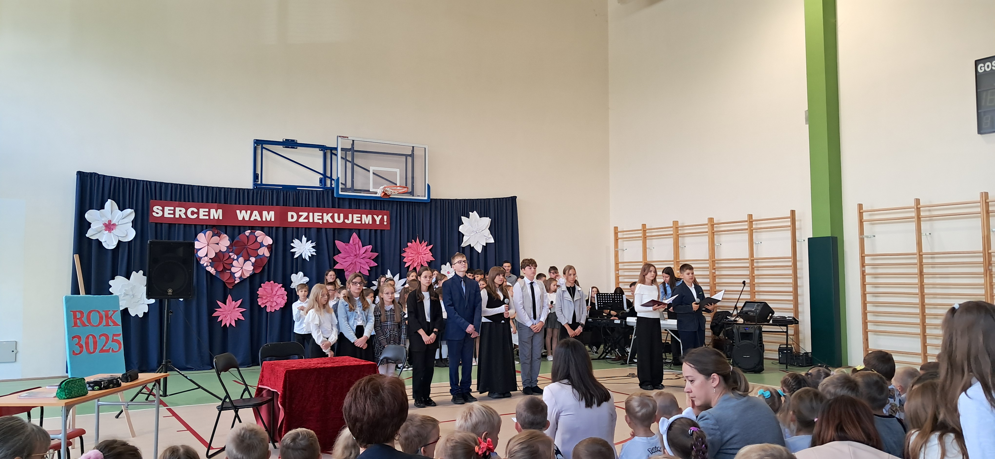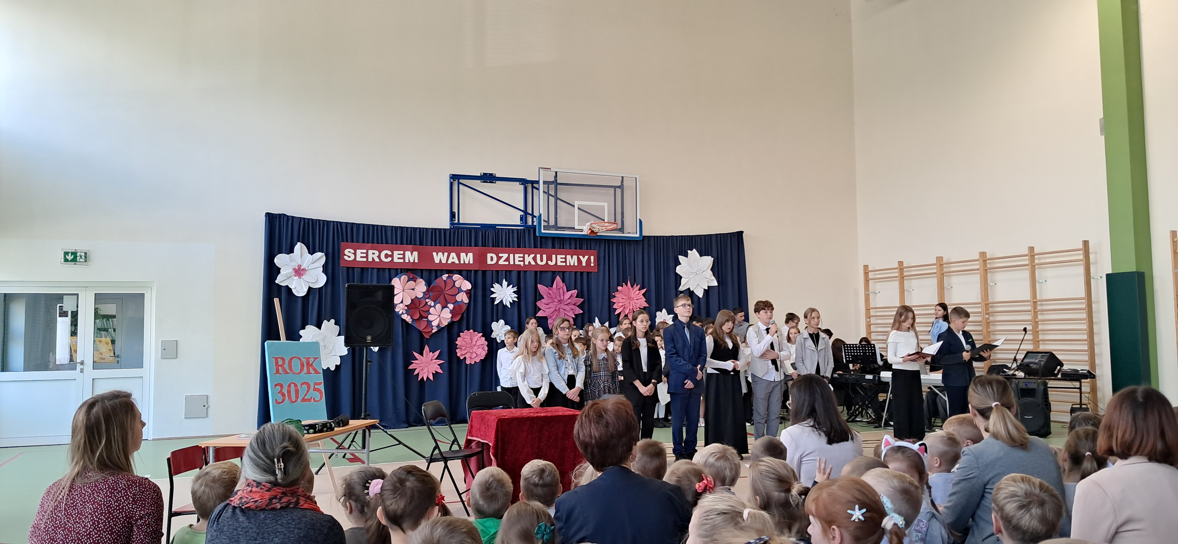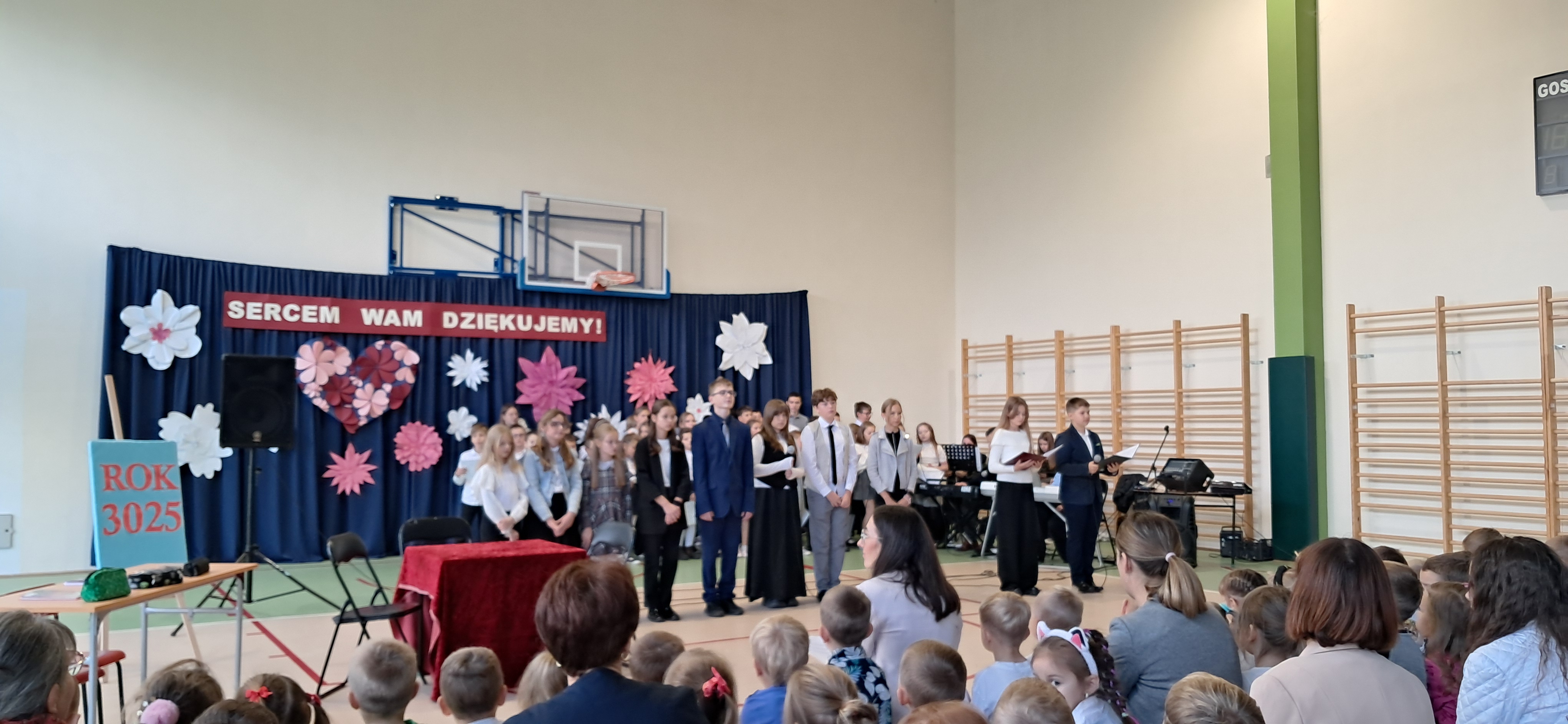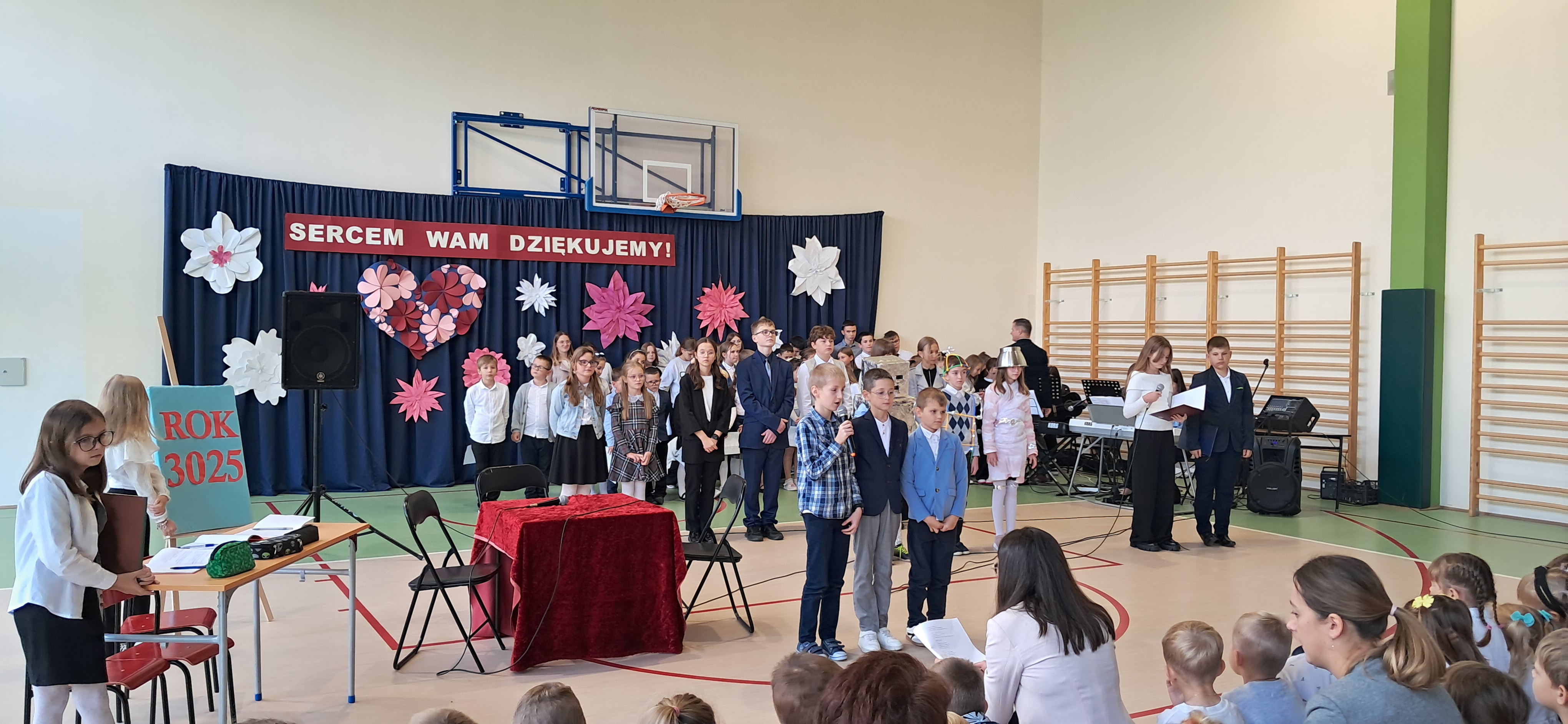 Tegoroczny Dzień Edukacji Narodowej w naszej szkole był wyjątkowym wydarzeniem, przygotowanym z zaangażowaniem i sercem przez uczniów Samorządu Uczniowskiego pod opieką pani Anny Nowackiej i pani Małgorzaty Dranki. Uroczystość odbyła się w sali gimnastycznej i dostarczyła wielu emocji – od wzruszeń po szczery śmiech. Obchody rozpoczęły się częścią artystyczną. Uczniowie zaprezentowali wzruszające wiersze, które były pięknym wyrazem szacunku i wdzięczności wobec nauczycieli i wszystkich pracowników szkoły. W wielu oczach pojawiły się łzy wzruszenia – słowa młodych artystów trafiły prosto w serca. Na scenie wystąpił szkolny chór, pod czujnym okiem pana Piotra Burkota. Piękne wykonania znanych piosenek wprowadziły wszystkich w wyjątkowy nastrój i zostały nagrodzone gromkimi brawami. W drugiej części uczniowie zaskoczyli publiczność humorem – wystawili skecz, przedstawiający zabawną wizję szkoły przyszłości, w której nauczycieli zastąpiły... roboty! Choć technologia robiła wrażenie, nie dorównywała prawdziwym nauczycielom, co w żartobliwy sposób podkreślili młodzi aktorzy. Na zakończenie głos zabrała pani dyrektor, która serdecznie podziękowała wszystkim nauczycielom za ich codzienny trud, poświęcenie i serce wkładane w pracę z uczniami. Wręczyła również nagrody nauczycielom, co spotkało się z ogromnym aplauzem. To był dzień pełen emocji, uśmiechów i podziękowań. Pokazał, jak ważną rolę odgrywają nauczyciele w życiu szkoły i jak bardzo są doceniani przez uczniów. Dzień Nauczyciela 2025 z pewnością na długo pozostanie w naszej pamięci.