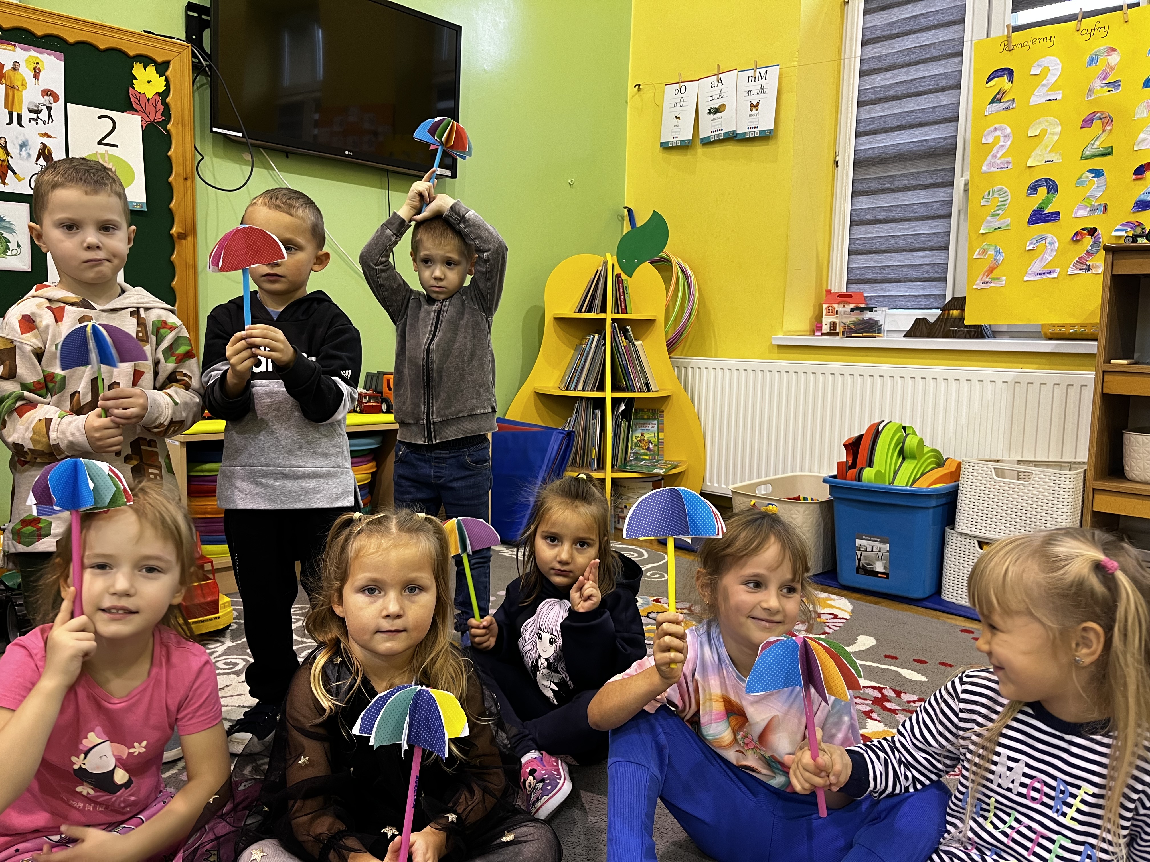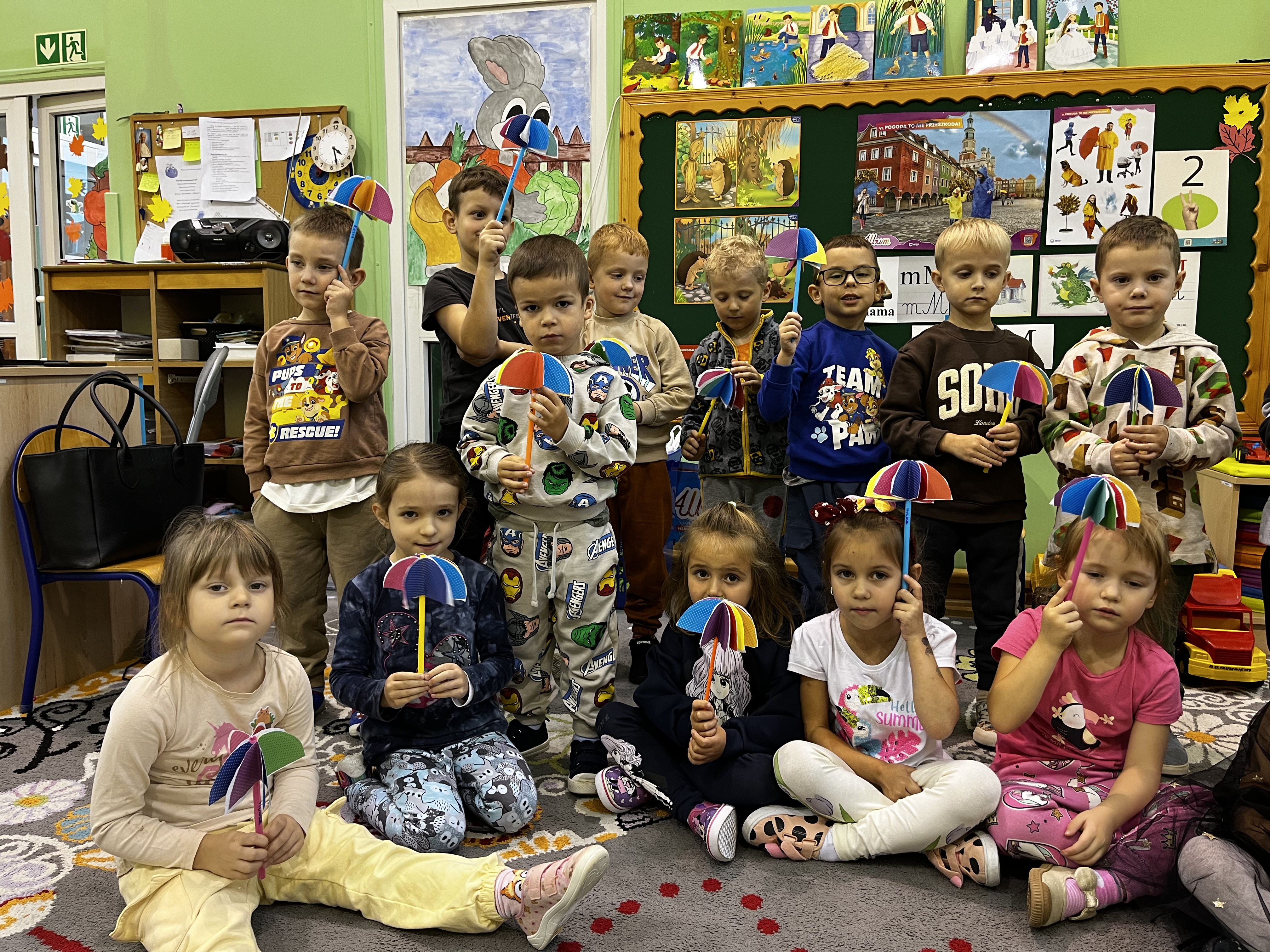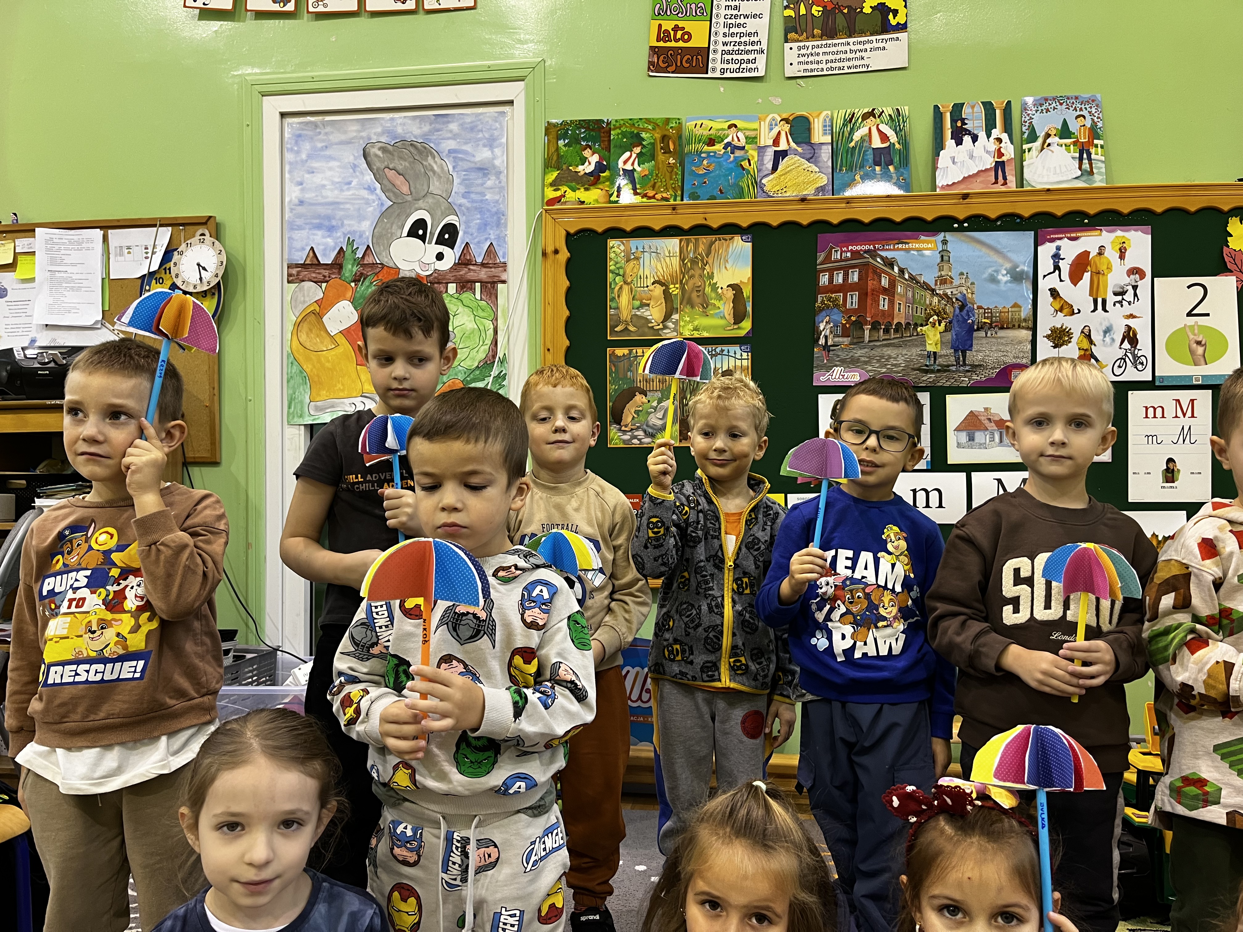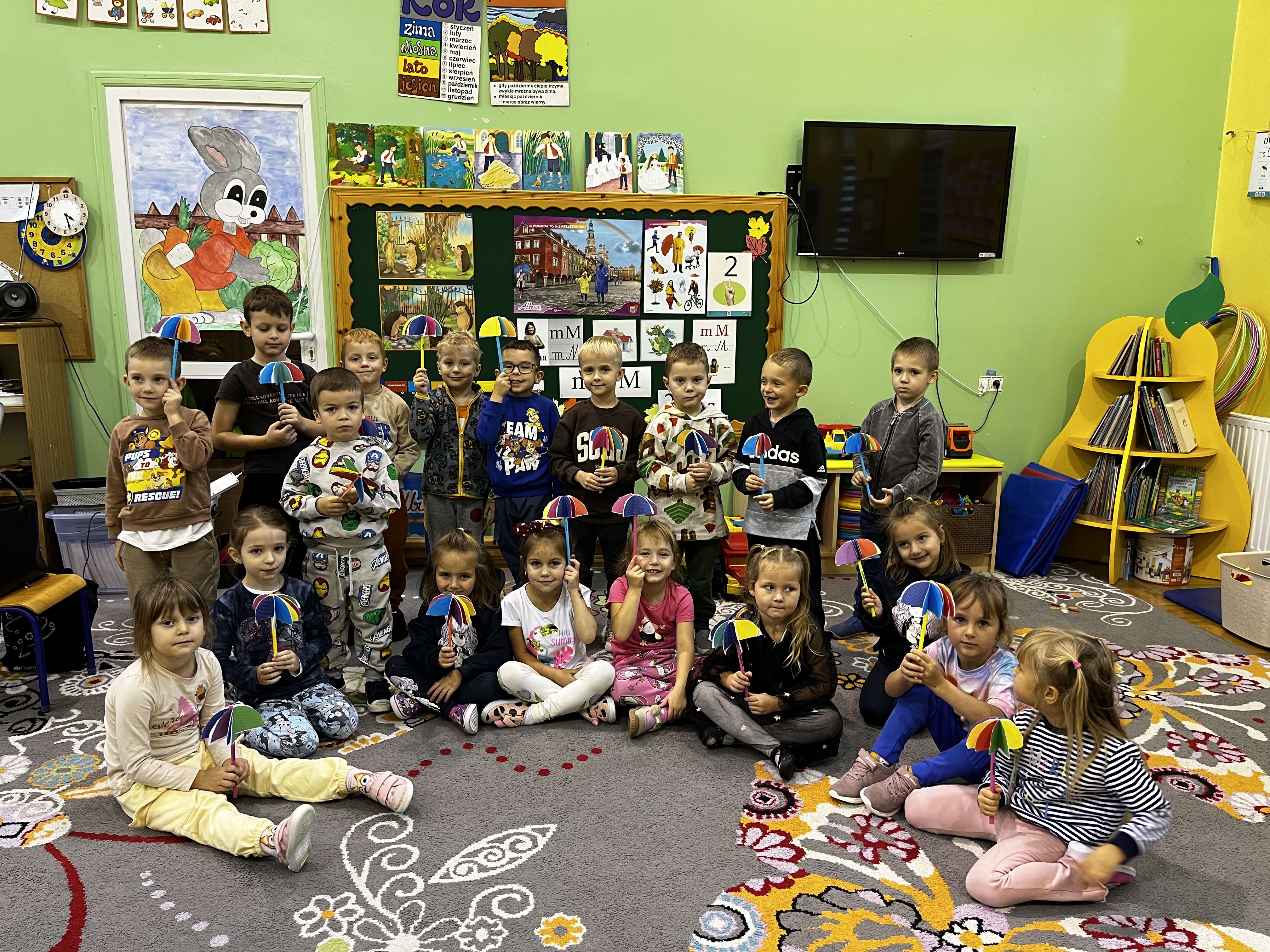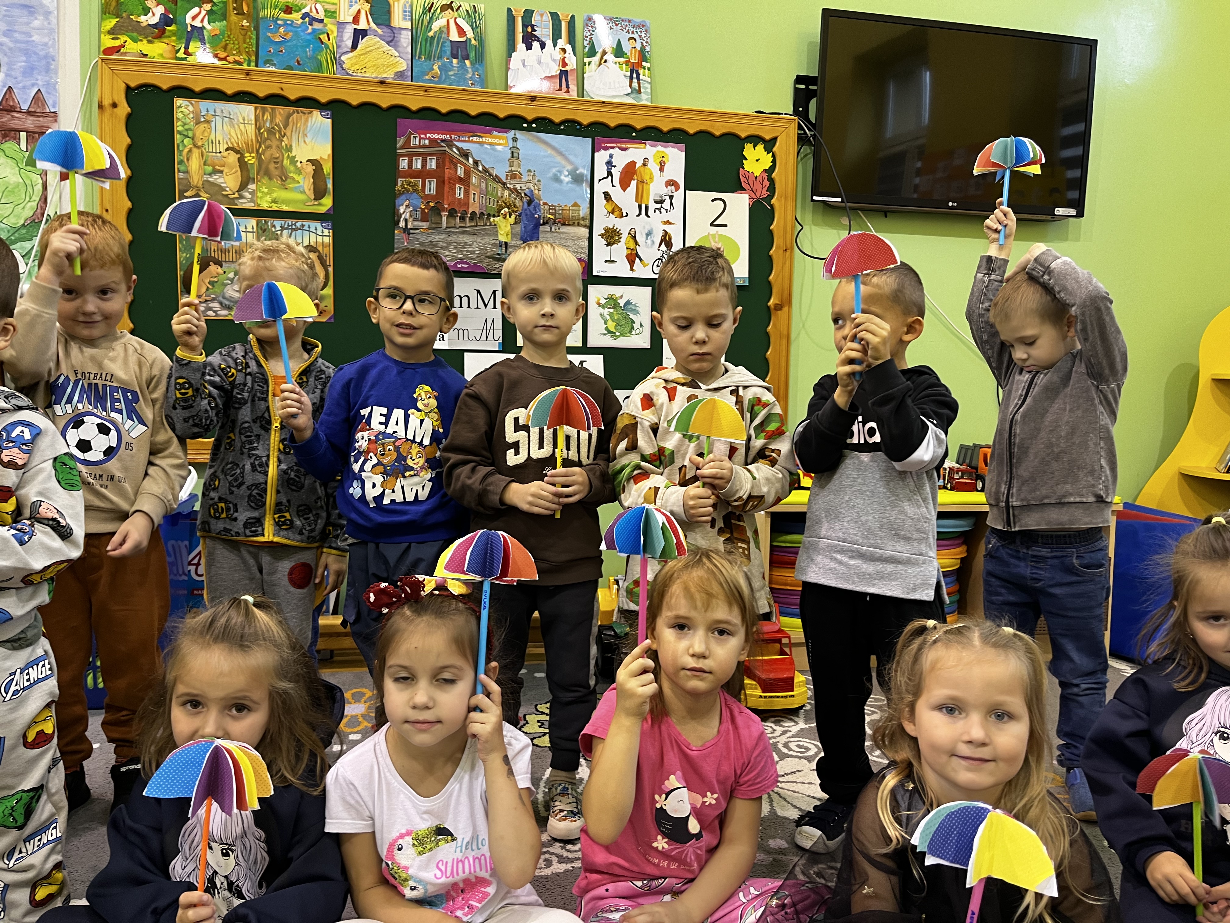 Kolorowe parasolki robimy i wcale się deszczu nie boimy - grupa Żabki