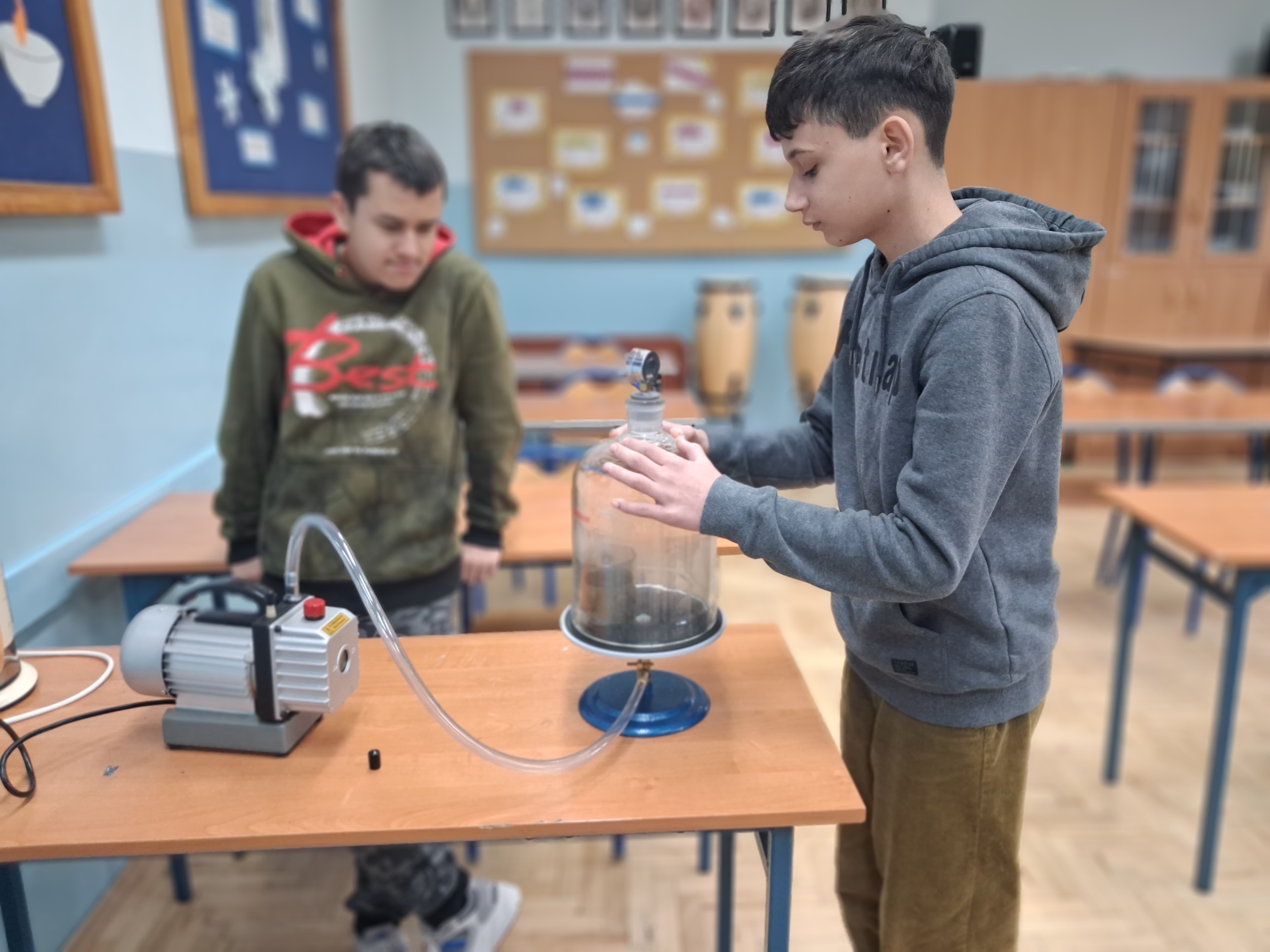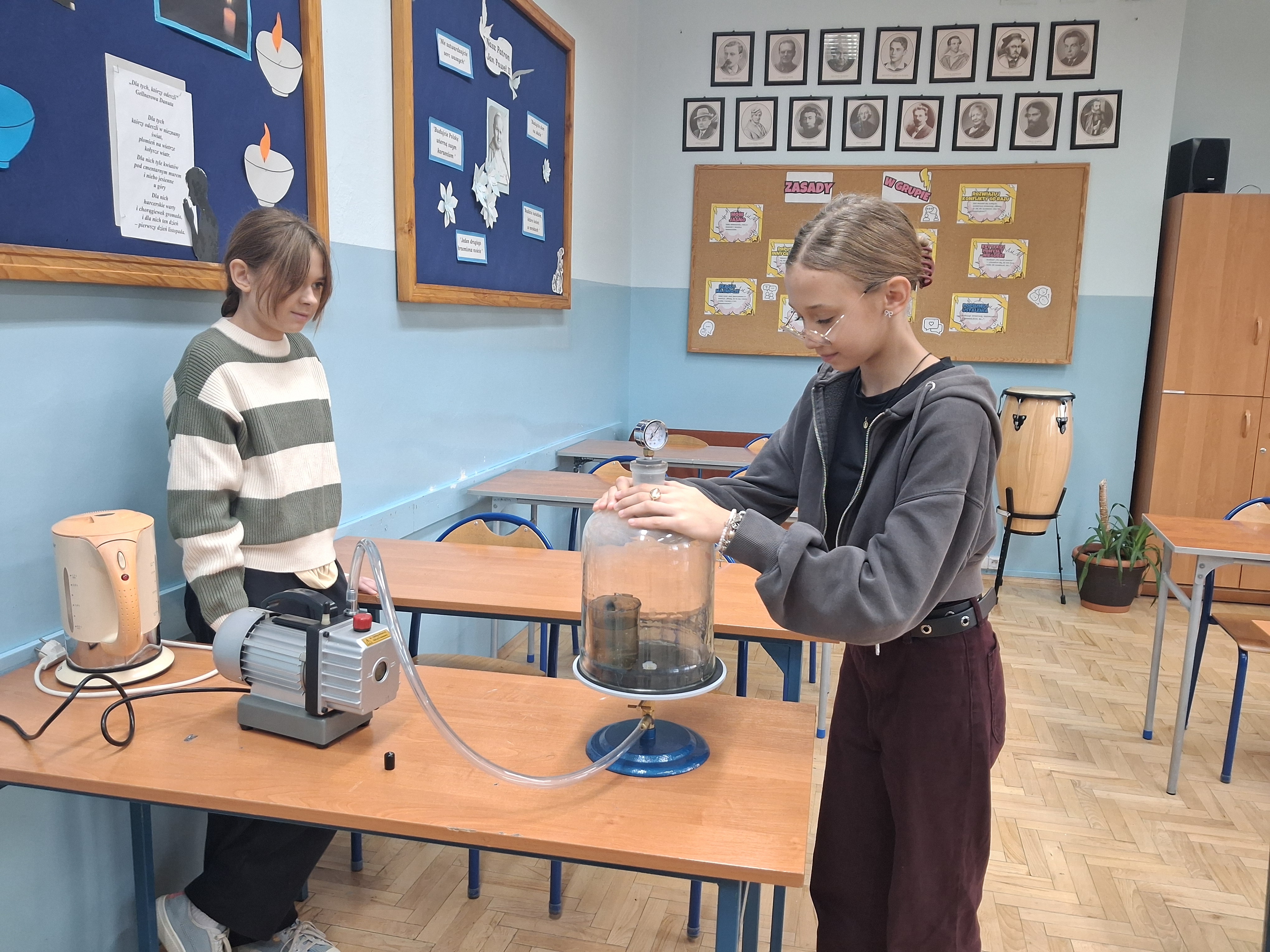 Z radością informujemy, że w bieżącym roku szkolnym w naszej szkole rozpoczęły się zajęcia Laboratorium Fizyczne – Zajęcia Rozwijające Uzdolnienia, realizowane w ramach projektu wspierającego rozwój kompetencji uczniów Gminy Moszczenica. Celem zajęć jest stworzenie przestrzeni do odkrywania, eksperymentowania i rozwijania pasji naukowych, a także pogłębiania wiedzy z zakresu fizyki poprzez praktyczne działania i metodę naukową. Program zajęć opiera się na najważniejszych działach fizyki, które pozwalają budować mocne podstawy teoretyczne i praktyczne. Uczniowie podczas dotychczasowych zajęć: wykonywali precyzyjne pomiary z wykorzystaniem szkolnych zestawów pomiarowych, poznali pojęcia masy i ciężaru ciał, ucząc się rozróżniać te wielkości i analizować ich zależności, badali gęstość ciał, przeprowadzając eksperymenty z różnymi materiałami i substancjami, eksplorowali zjawisko ciśnienia atmosferycznego, wykonując doświadczenia