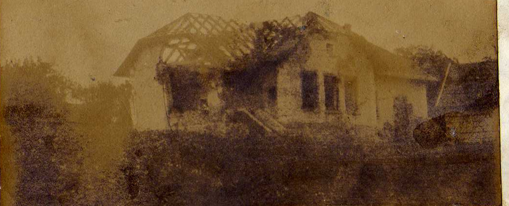 Zburzony budynek szkoły w Staszkówce 1915 r. – fotografia znajduje się w Kronice Szkoły w Staszkówce
