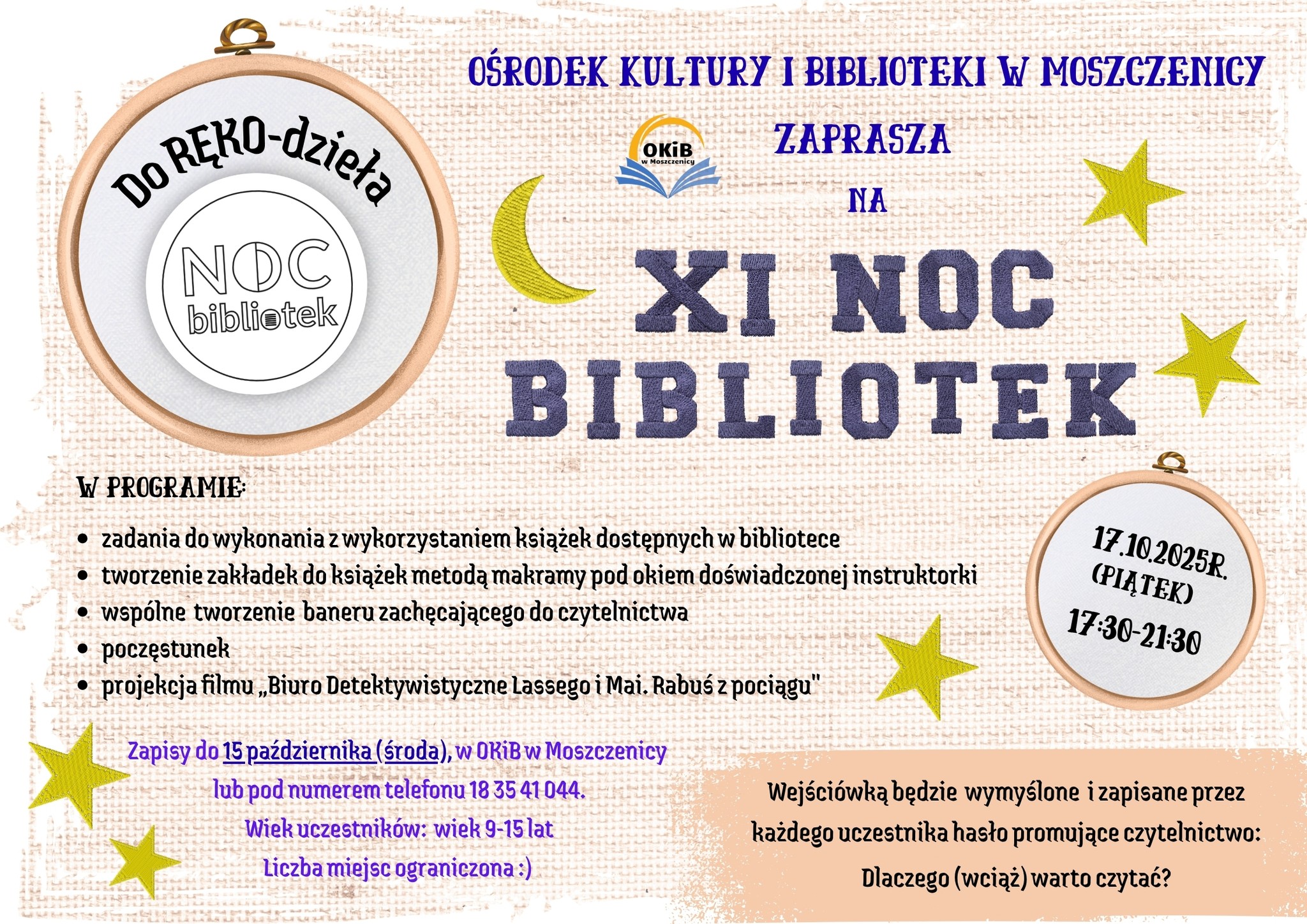 OKiB w Moszczenicy zaprasza na XI Noc Bibliotek