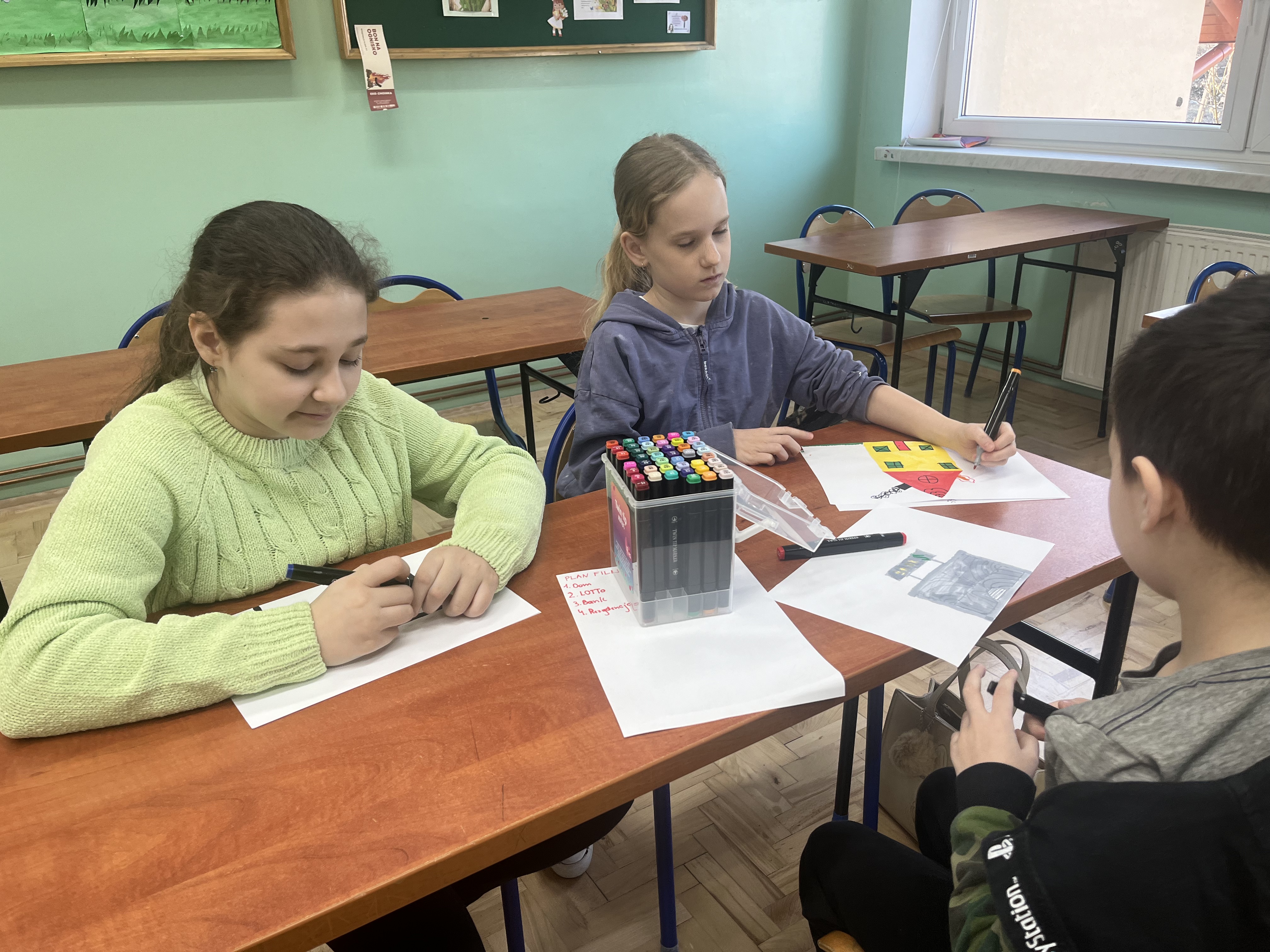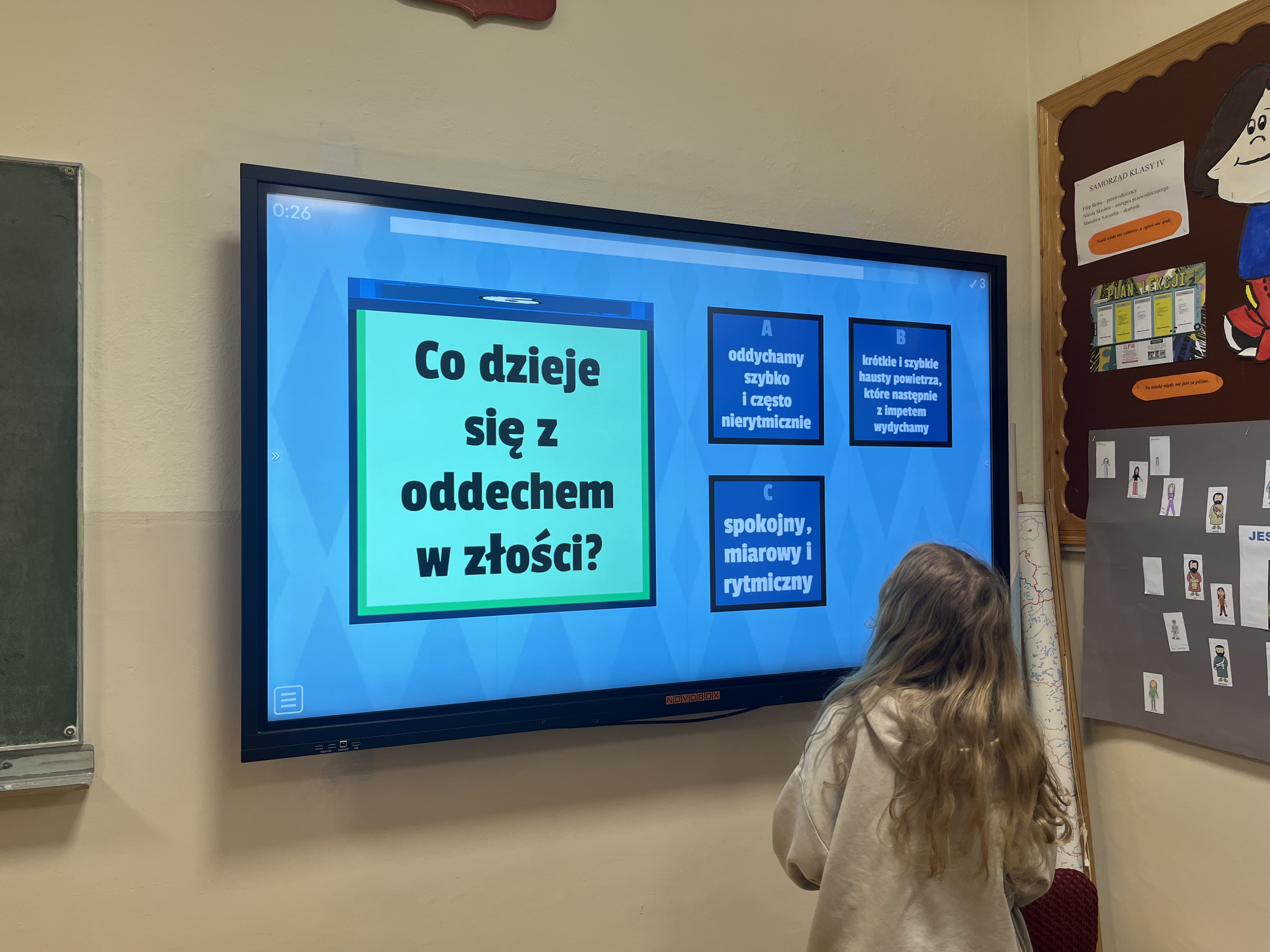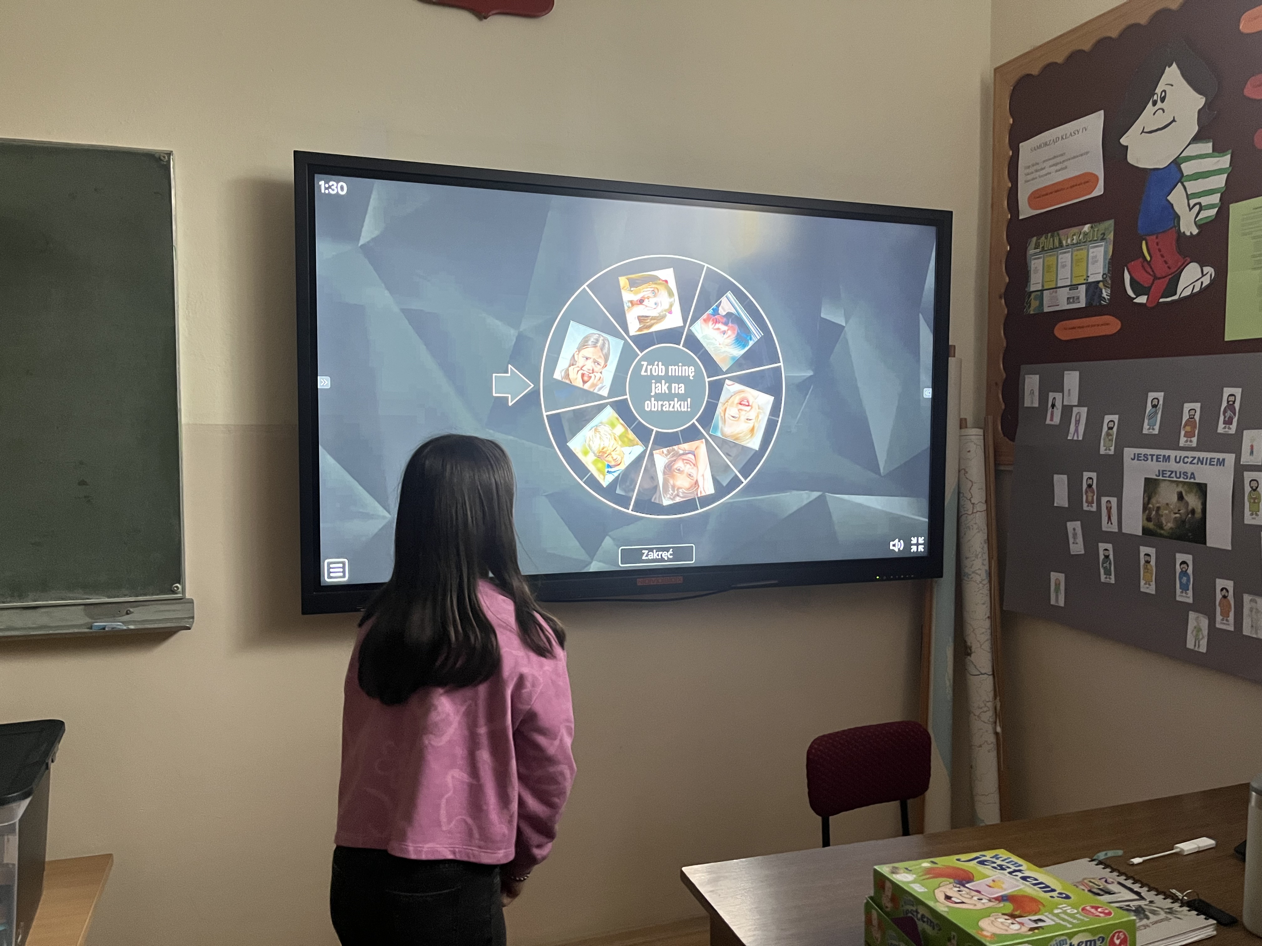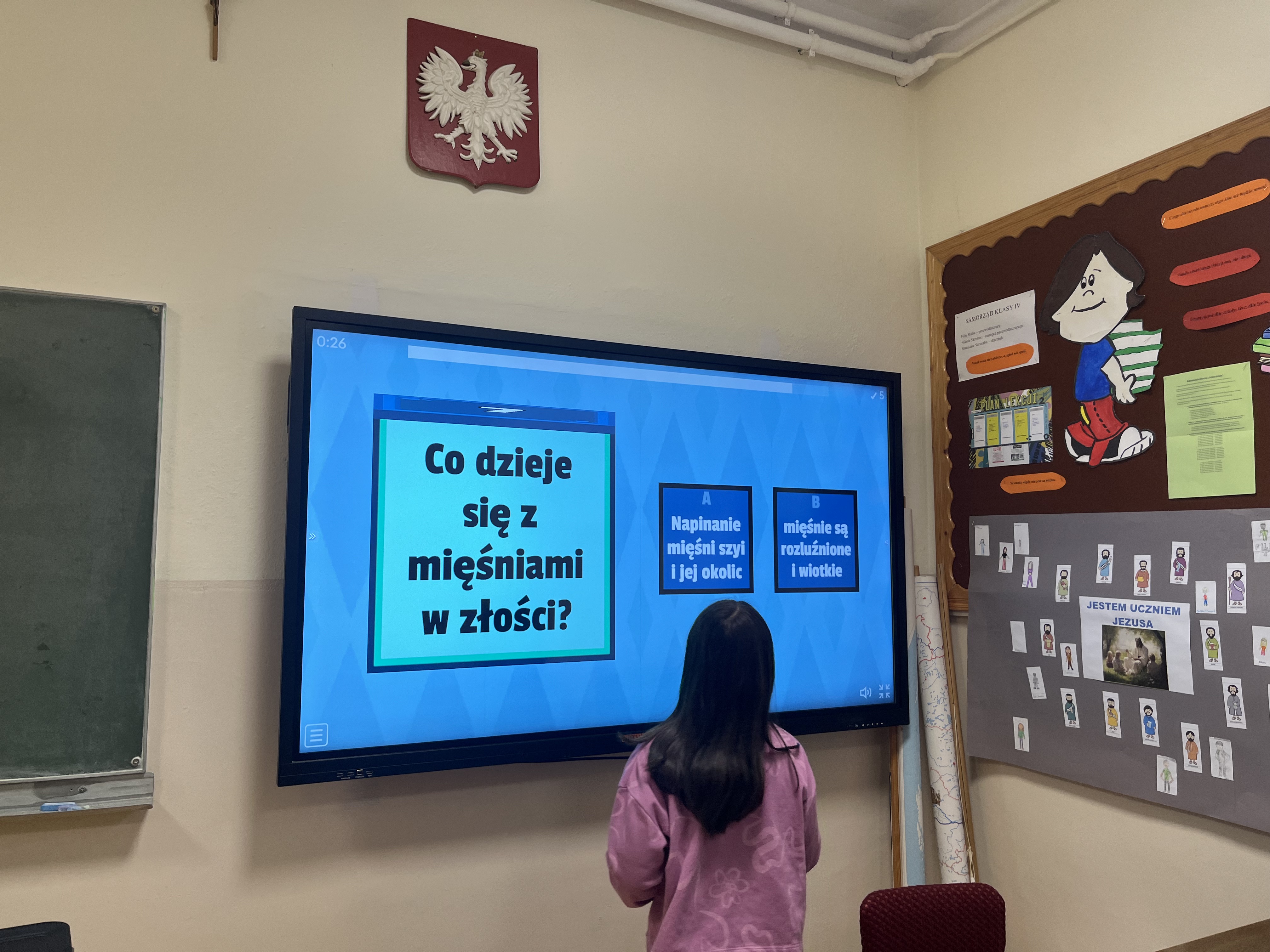 Dzieci korzystały także z nowoczesnych narzędzi – oprócz tablicy interaktywnej ogromnym zainteresowaniem cieszył się dywan interaktywny, który pozwolił im w ruchu i zabawie rozwijać uważność, współpracę i szybkie reagowanie na emocjonalne bodźce. Część zajęć odbyła się również na świeżym powietrzu – tam uczniowie nie tylko integrowali się, ale także nagrywali swój film poklatkowy, pokazując emocje w kreatywny, artystyczny sposób. Zajęcia nie tylko pozwoliły uczniom lepiej poznać i nazywać swoje emocje, ale również pokazały, jak ważna jest empatia, współpraca i szacunek wobec innych. Promowały także równość i świadomość, że każdy – niezależnie od płci – ma równe szanse rozwoju i wyboru swojej drogi życiowej.