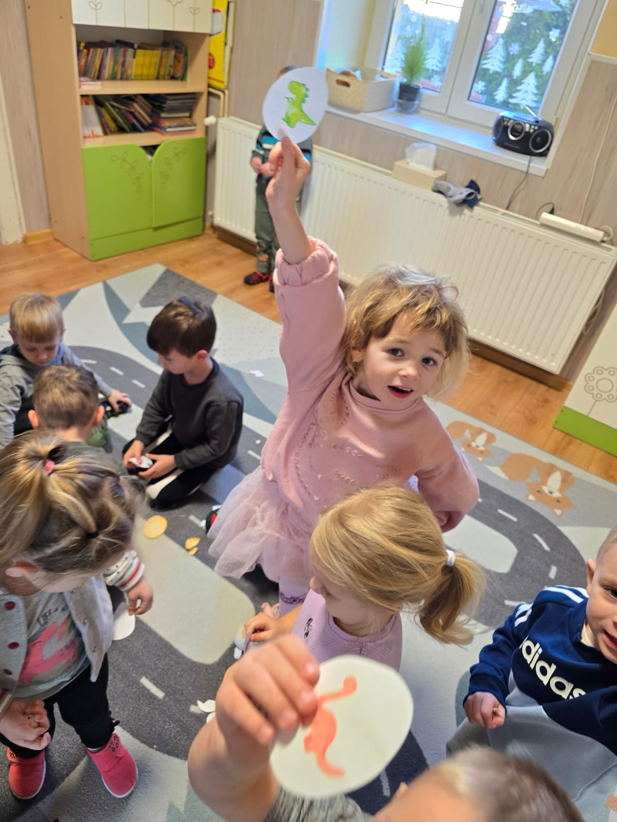 Kolorowe parasolki robimy i wcale się deszczu nie boimy - grupa Żabki