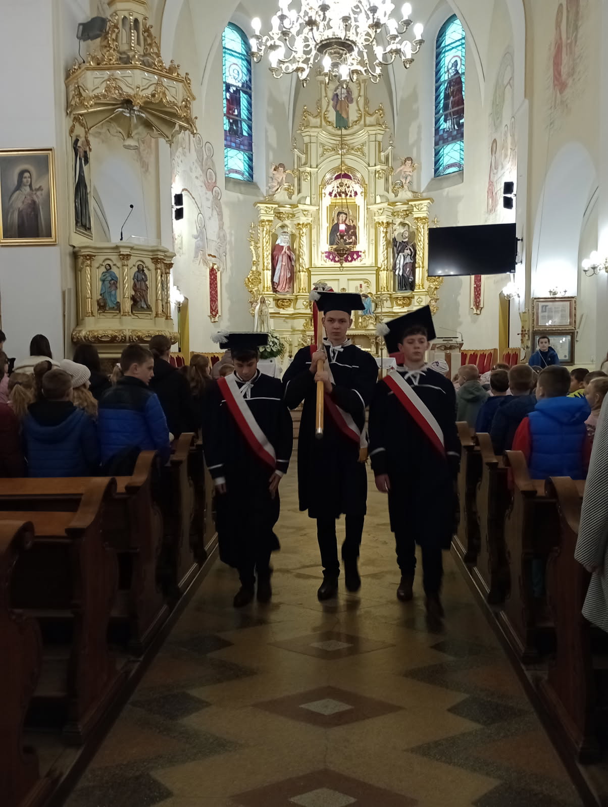 W dniu święta naszej szkoły cała społeczność szkolna zgromadziła się w kościele parafialnym na uroczystej Mszy Świętej, którą odprawił ksiądz proboszcz Krzysztof Jarmuła. Był to czas wspólnej modlitwy, refleksji i wdzięczności. Święto szkoły to dla nas szczególna okazja, ponieważ naszym patronem jest święty Jan Paweł II – papież, który przez całe swoje życie był świadkiem wiary, miłości i szacunku do drugiego człowieka. Jego postawa i nauczanie są dla nas nieustanną inspiracją do codziennej pracy i nauki. Podczas Mszy Świętej modliliśmy się w intencji całej naszej szkolnej wspólnoty – uczniów, nauczycieli, pracowników szkoły, zarówno żyjących, jak i zmarłych. Proszono o Boże błogosławieństwo, zdrowie, siłę i światło Ducha Świętego dla wszystkich, którzy tworzą naszą szkołę. Uroczystość miała podniosły charakter również dzięki obecności pocztu sztandarowego, który godnie reprezentował szkołę podczas liturgii. Obecność sztandaru przypomniała nam o wartościach, które są fundamentem naszej wspólnoty – szacunku, odpowiedzialności, wspólnoty i wiary, tak bliskich naszemu Patronowi. Msza Święta była pięknym i ważnym elementem obchodów święta szkoły. Wspólna modlitwa wzmocniła poczucie jedności i przynależności do naszej szkolnej rodziny. Dziękujemy księdzu proboszczowi za przewodniczenie tej wyjątkowej Eucharystii.