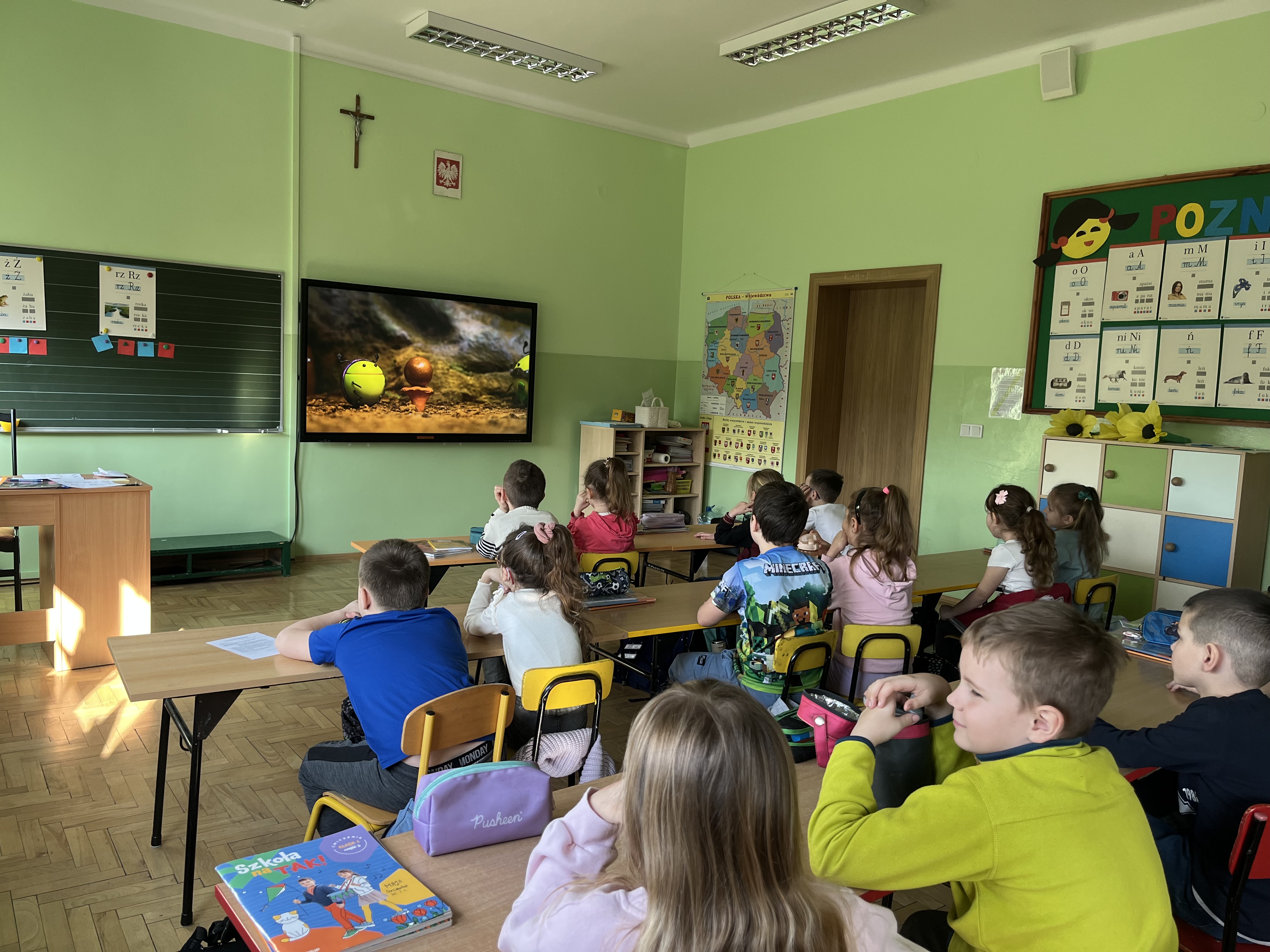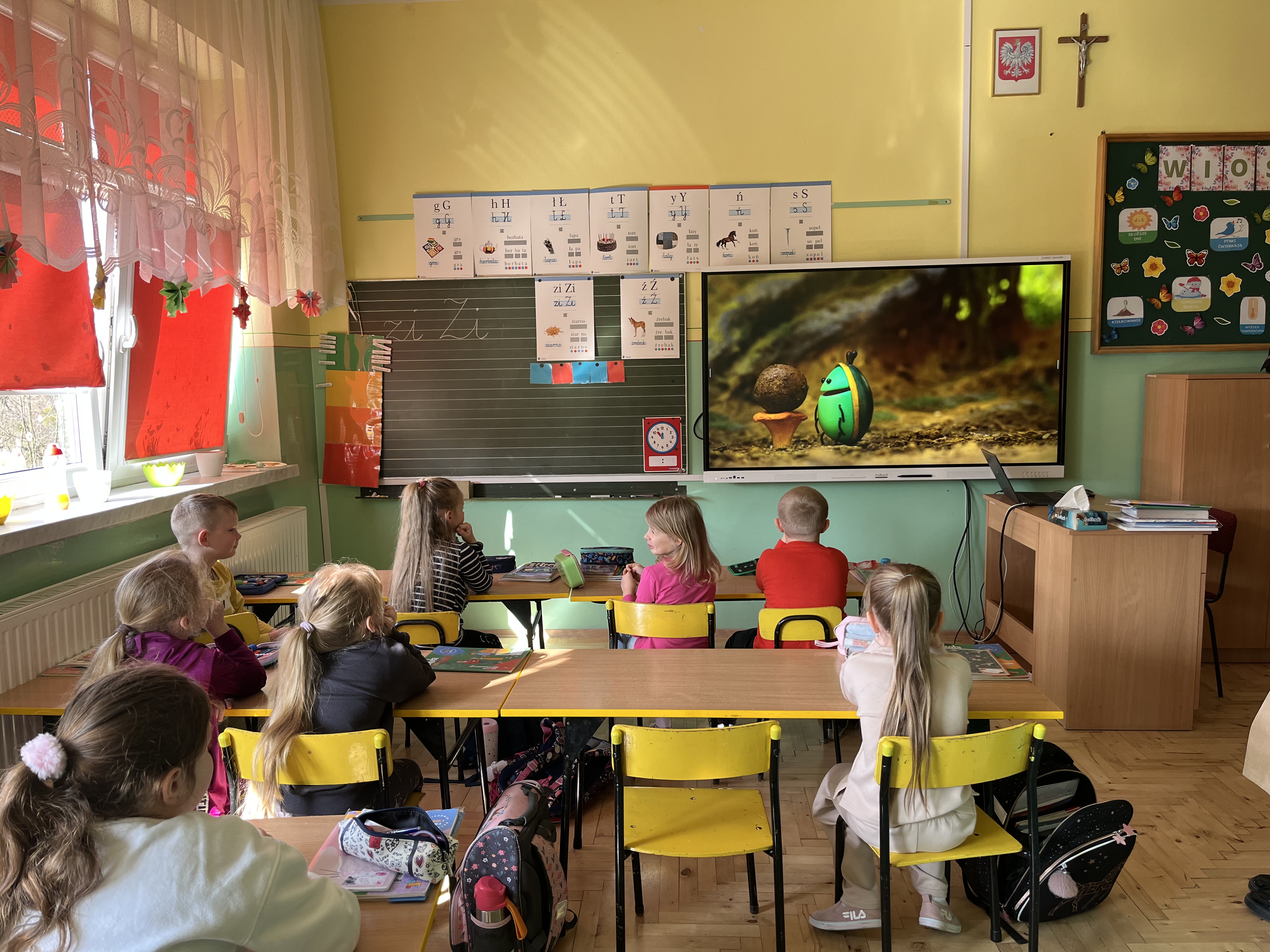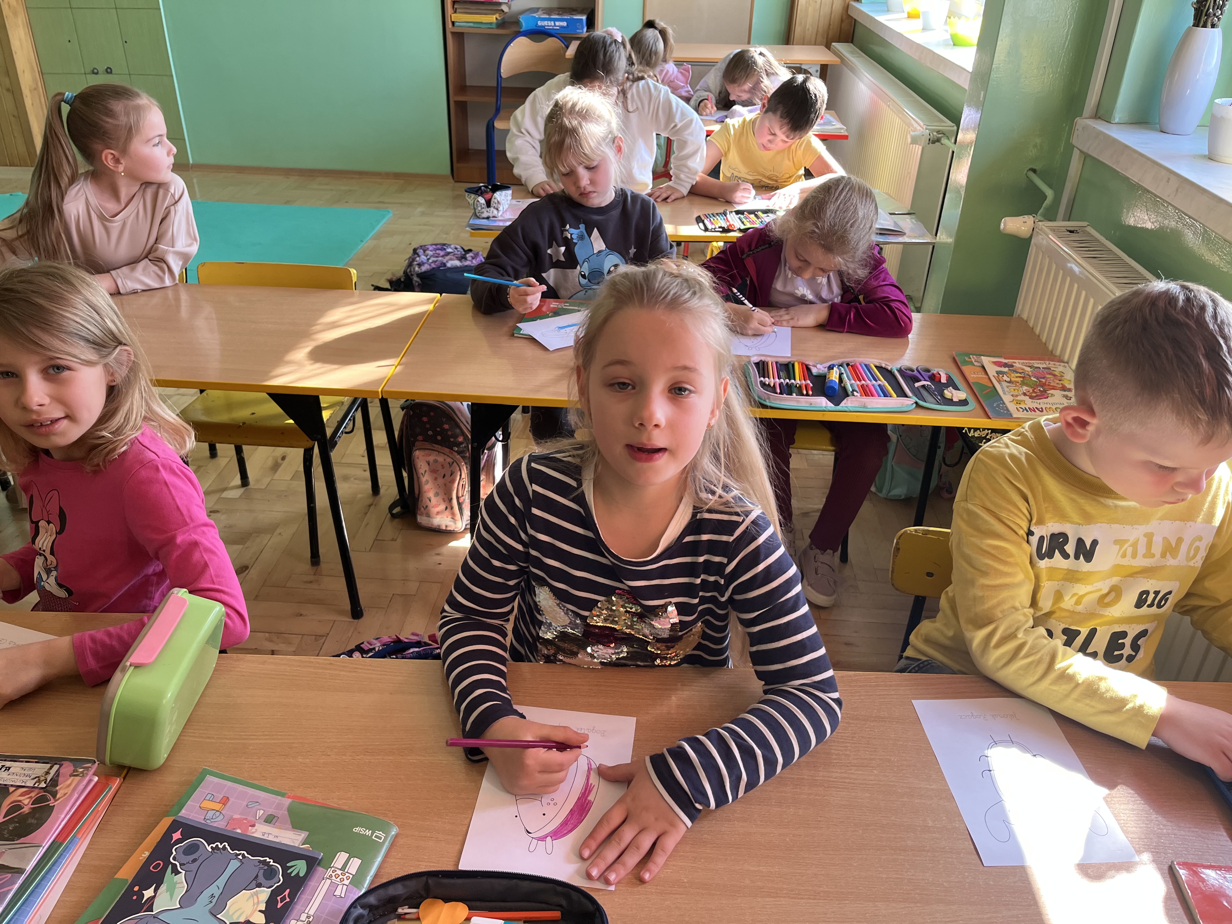 Uczniowie klas 1a i 1b wzięli udział w programie edukacyjnym „Turlając kulkę pod górkę”, organizowanym przez PAH, skierowanym do młodszych uczniów. Program stanowi cenne narzędzie do rozmów o różnorodności i sprawiedliwości, jednocześnie rozwijając u dzieci empatię oraz wzmacniając postawę solidarności. Podczas zajęć dzieci poznały bohaterów projektu – Żuczki, czyli małych bohaterów o wielkich ambicjach. Ich historie angażowały uczniów, uczyły wrażliwości i pomagały spojrzeć na świat z innej perspektywy. Metaforyczne opowieści stały się inspiracją do rozmów o problemach, które mogą dotyczyć każdego człowieka.