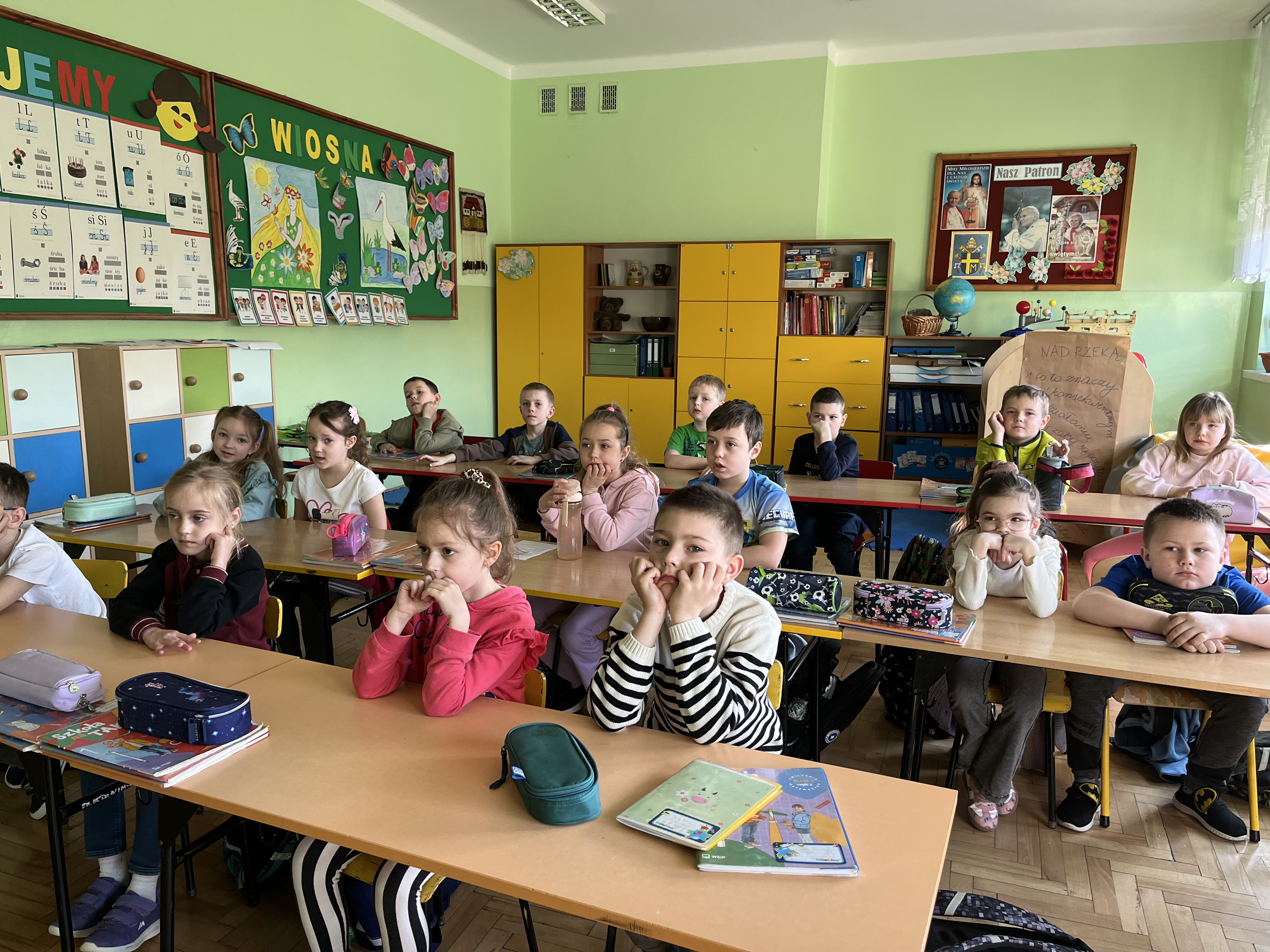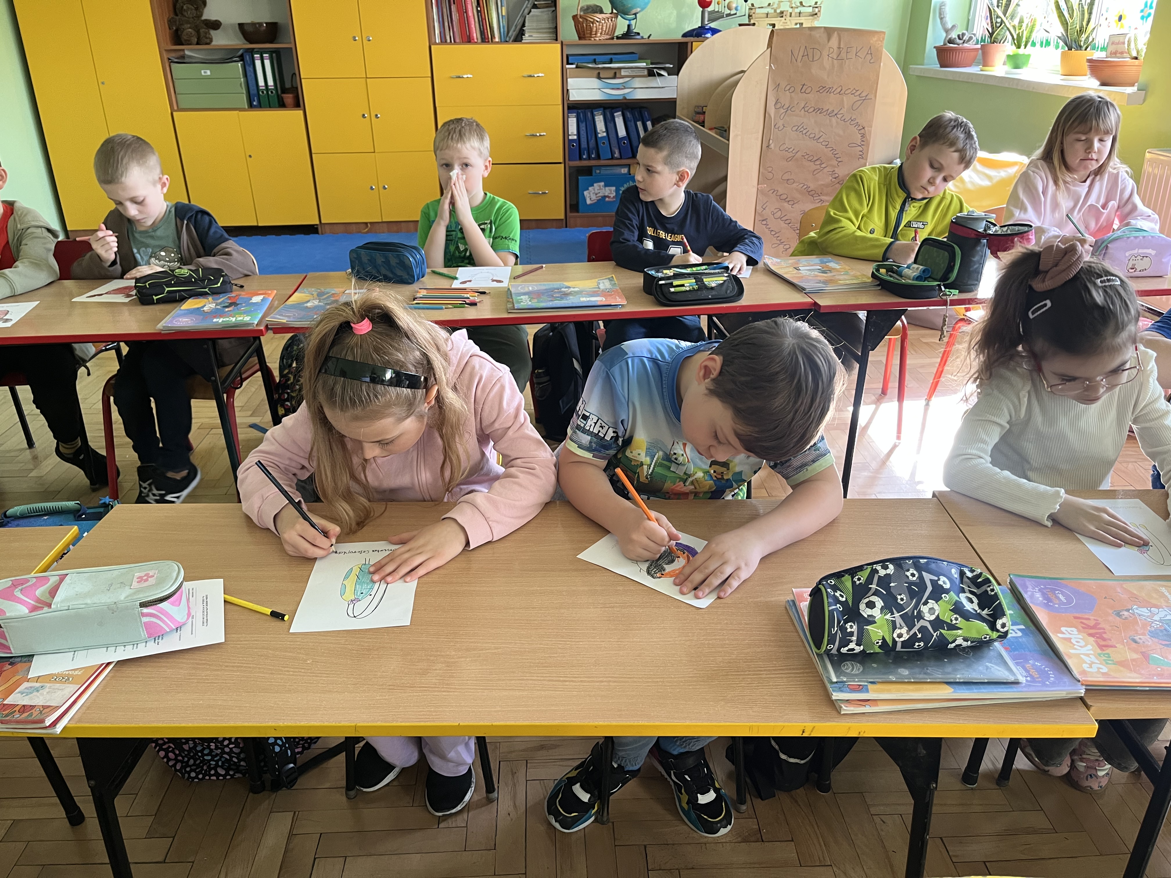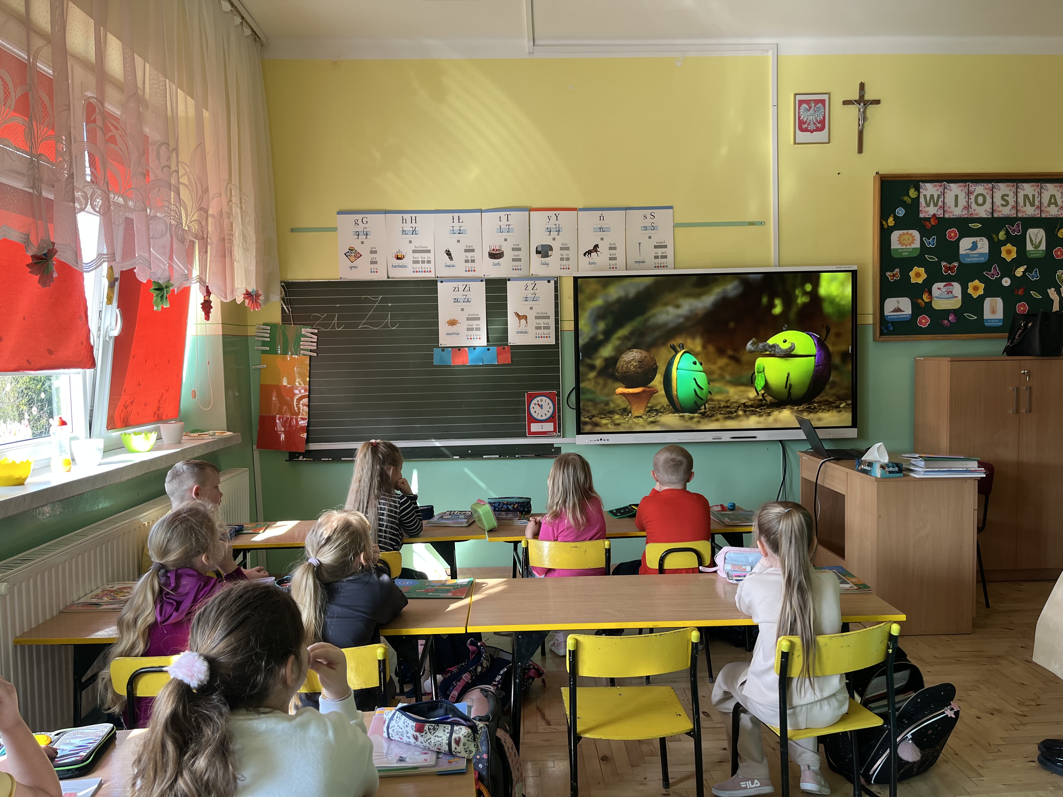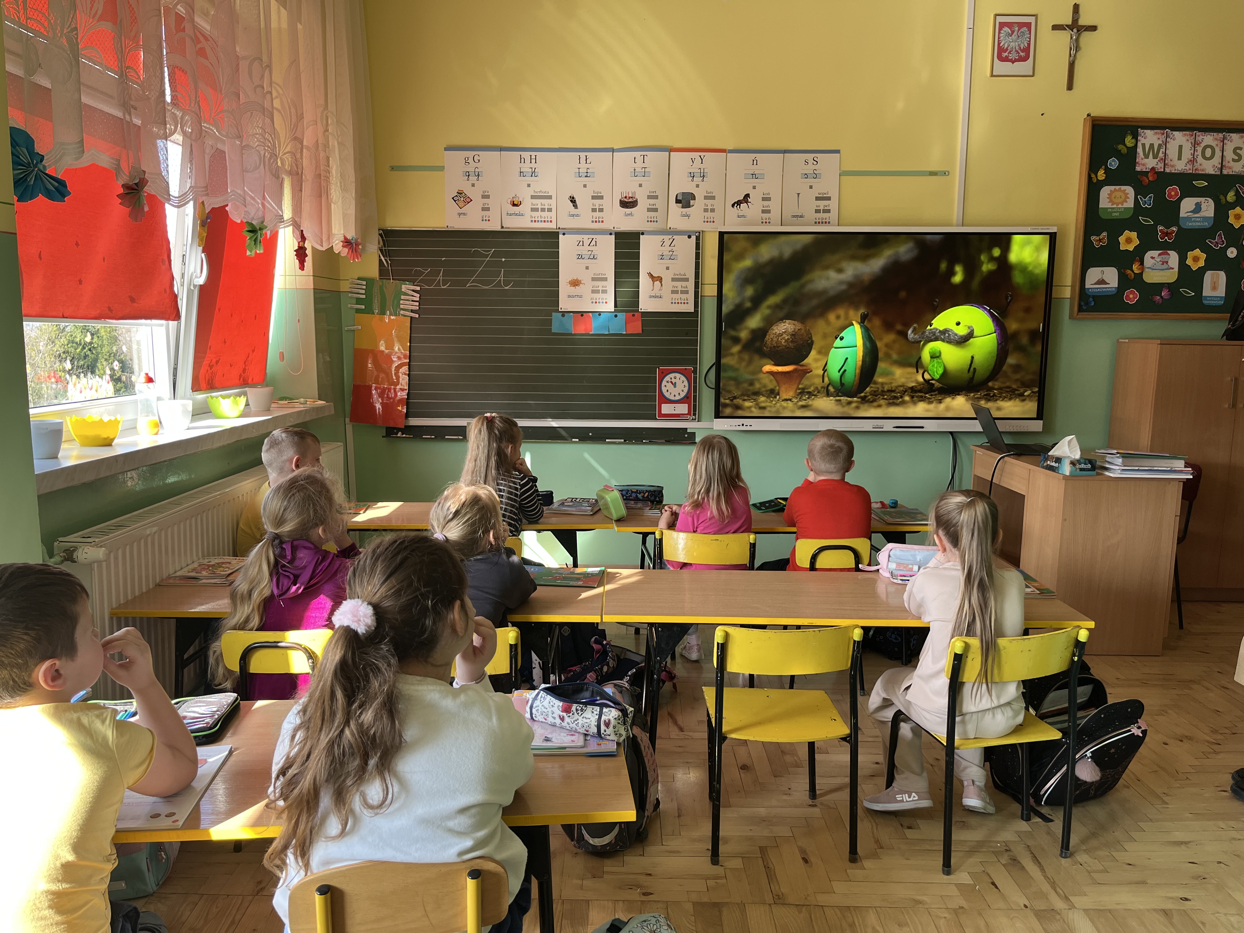 Uczniowie klas 1a i 1b wzięli udział w programie edukacyjnym „Turlając kulkę pod górkę”, organizowanym przez PAH, skierowanym do młodszych uczniów. Program stanowi cenne narzędzie do rozmów o różnorodności i sprawiedliwości, jednocześnie rozwijając u dzieci empatię oraz wzmacniając postawę solidarności. Podczas zajęć dzieci poznały bohaterów projektu – Żuczki, czyli małych bohaterów o wielkich ambicjach. Ich historie angażowały uczniów, uczyły wrażliwości i pomagały spojrzeć na świat z innej perspektywy. Metaforyczne opowieści stały się inspiracją do rozmów o problemach, które mogą dotyczyć każdego człowieka.
