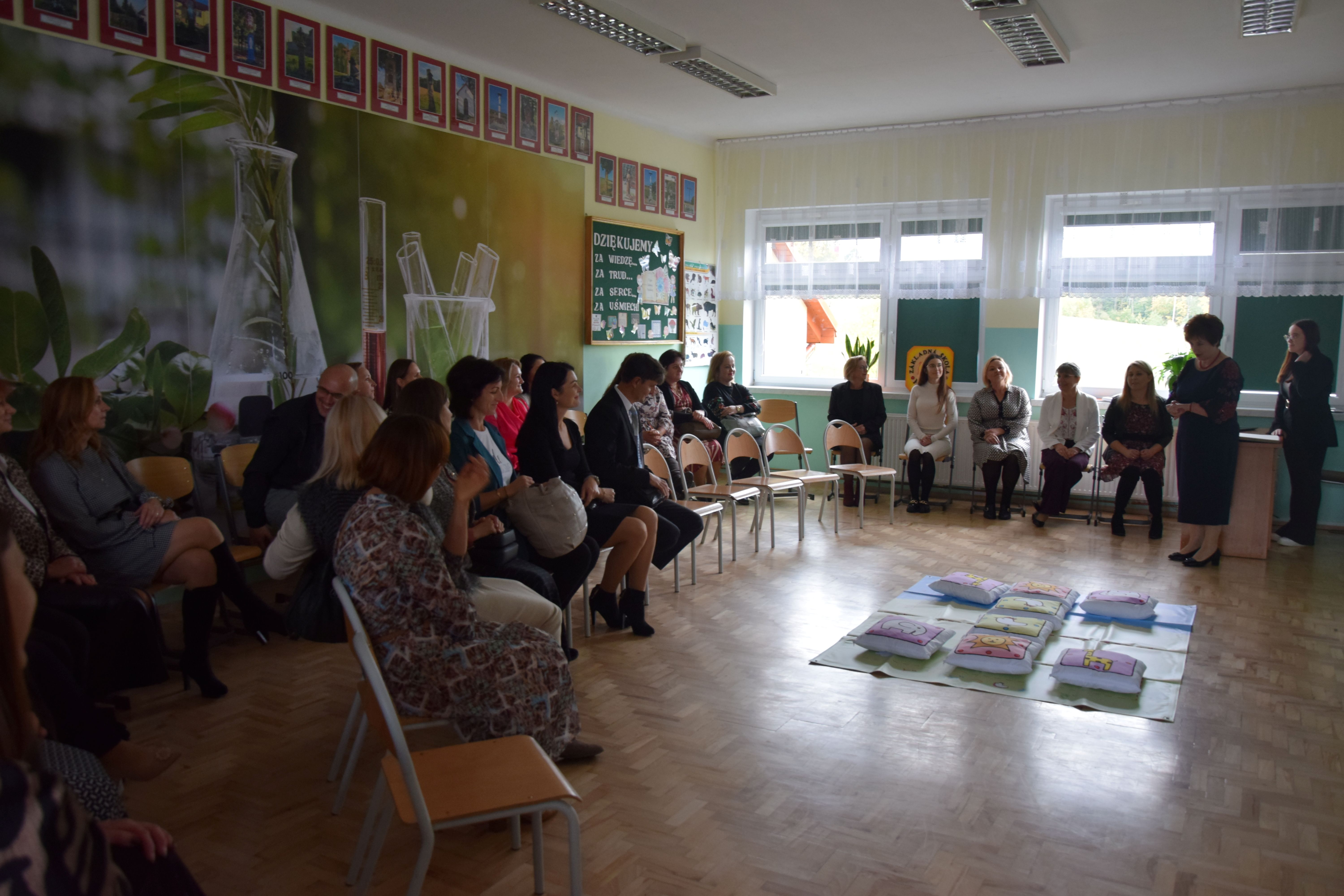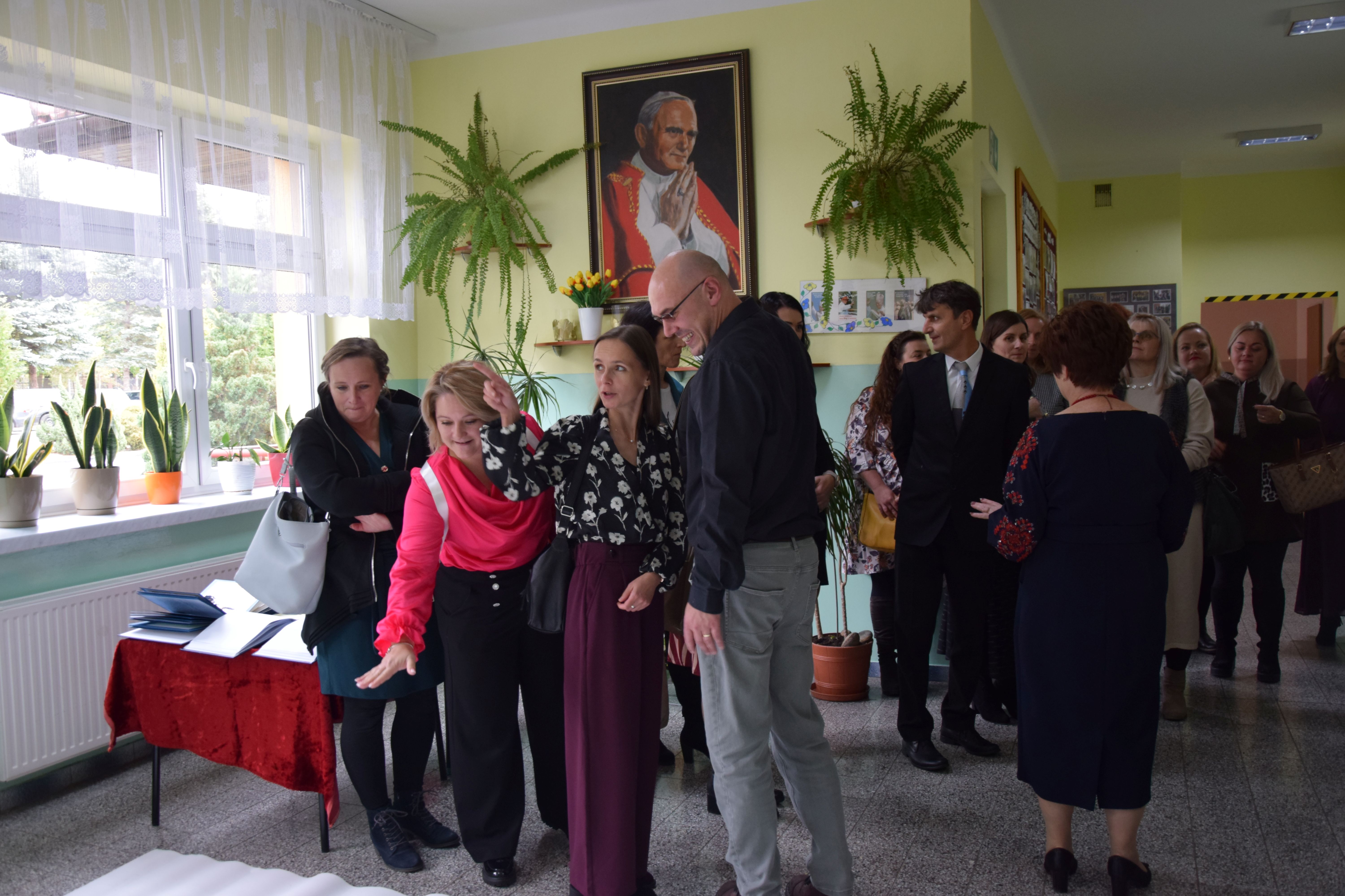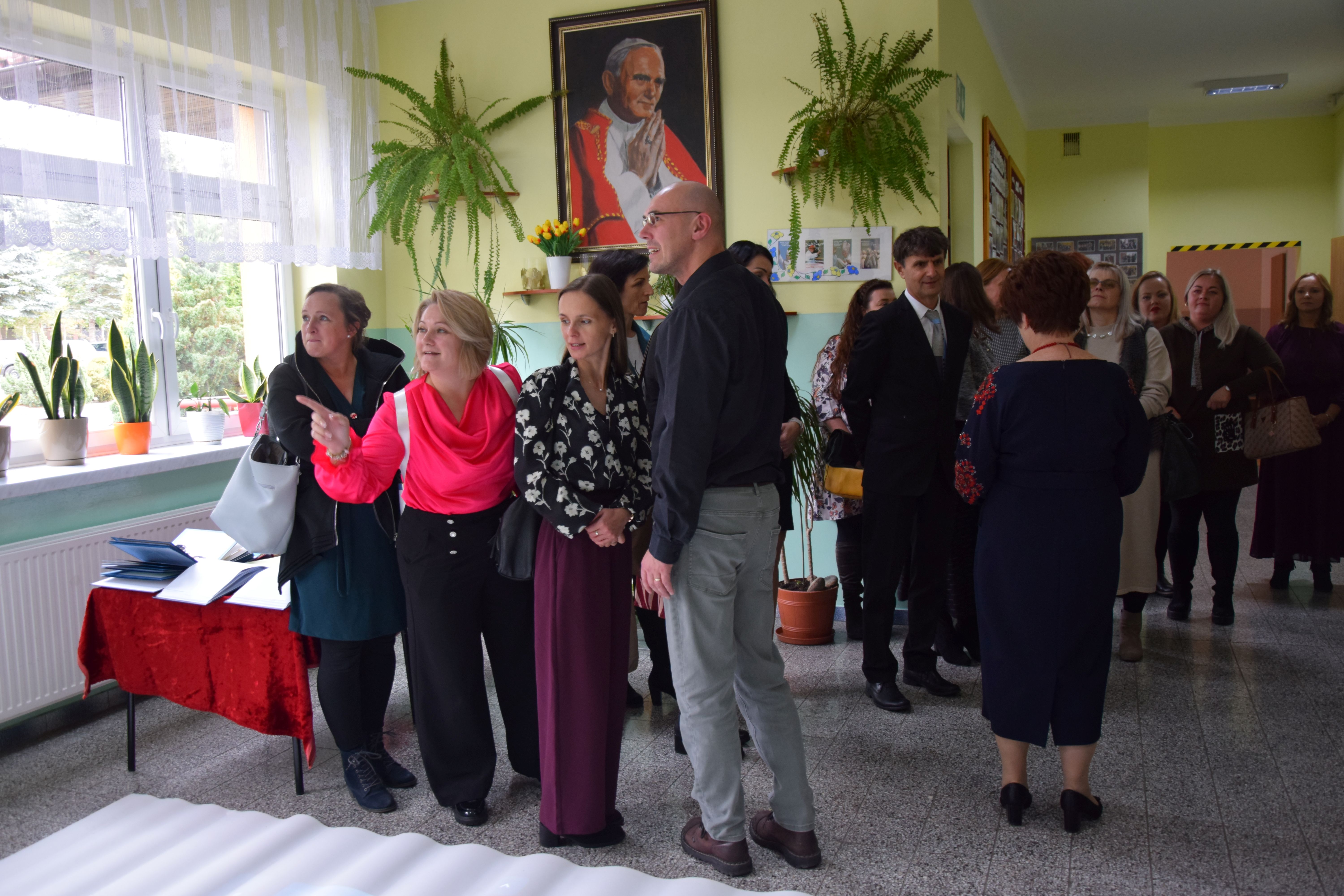 W dniu 14 października naszą szkołę odwiedzili nauczyciele z zaprzyjaźnionej szkoły w Kurimie na Słowacji. Wizyta odbyła się w ramach wieloletniej współpracy partnerskiej, która od lat łączy nasze szkoły we wspólnych działaniach edukacyjnych, kulturalnych i integracyjnych. Podczas pobytu goście zwiedzili szkołę, poznali jej historię, codzienne funkcjonowanie oraz spotkali się z nauczycielami i dyrekcją. Kluczowym punktem wizyty była prezentacja przygotowana przez naszych nauczycieli, dotycząca pracy z uczniami ze specjalnymi potrzebami edukacyjnymi. Przedstawiono metody, formy wsparcia oraz narzędzia, jakie stosowane są w naszej placówce, by jak najlepiej odpowiadać na indywidualne potrzeby każdego ucznia. Prezentacja spotkała się z dużym zainteresowaniem gości z Kurimy i była punktem wyjścia do inspirującej dyskusji i wymiany doświadczeń. Wizyta zbiegła się z wyjątkowym wydarzeniem w naszej gminie – Gminnymi obchodami Dnia Edukacji Narodowej, połączonymi z jubileuszem 120-lecia Związku Nauczycielstwa Polskiego. Goście z Kurimy uczestniczyli w uroczystościach, które były okazją do wspólnego świętowania, uhonorowania pracy nauczycieli oraz integracji środowisk edukacyjnych z Polski i Słowacji. Spotkanie przebiegło w niezwykle serdecznej atmosferze. Cieszymy się, że mogliśmy podzielić się naszymi doświadczeniami i jednocześnie zacieśnić współpracę z partnerską szkołą. Ďakujeme.