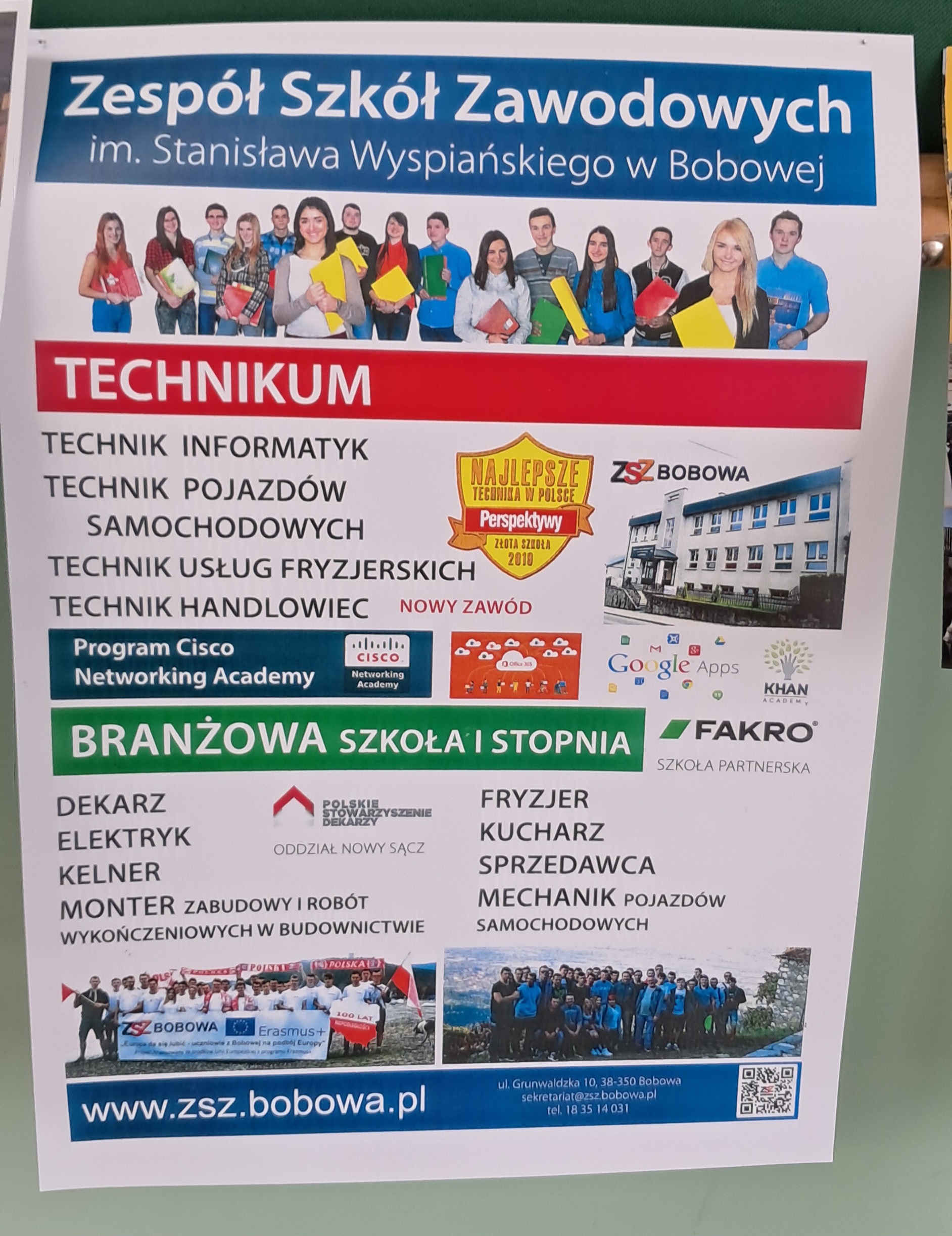 W ostatnich dniach naszą szkołę odwiedzili przedstawiciele szkół ponadpodstawowych z Hańczowej, Ciężkowic oraz Bobowej. Spotkanie to było doskonałą okazją dla uczniów klas ósmych, aby bliżej poznać ich ofertę edukacyjną i świadomie zaplanować swoją dalszą ścieżkę kształcenia.