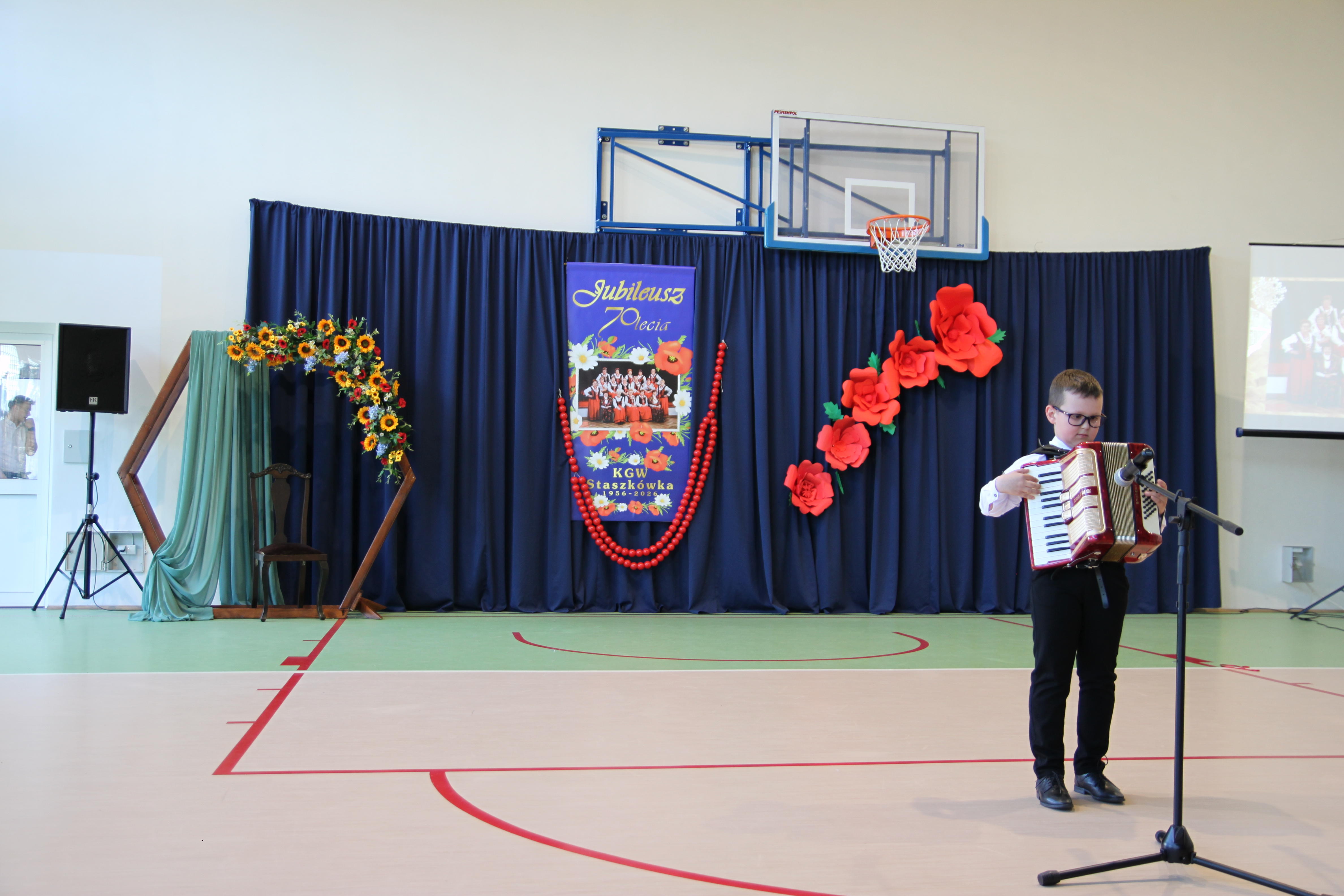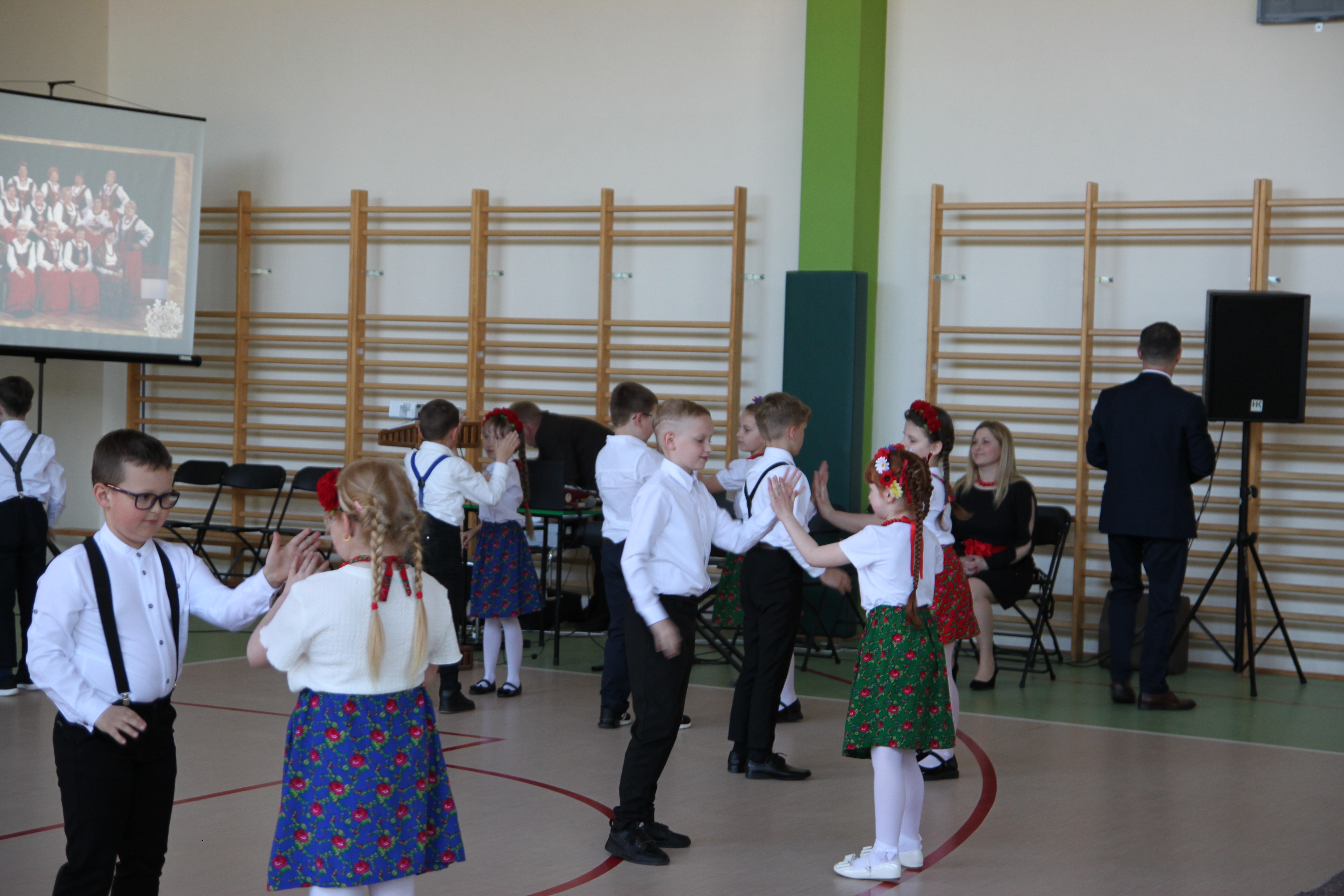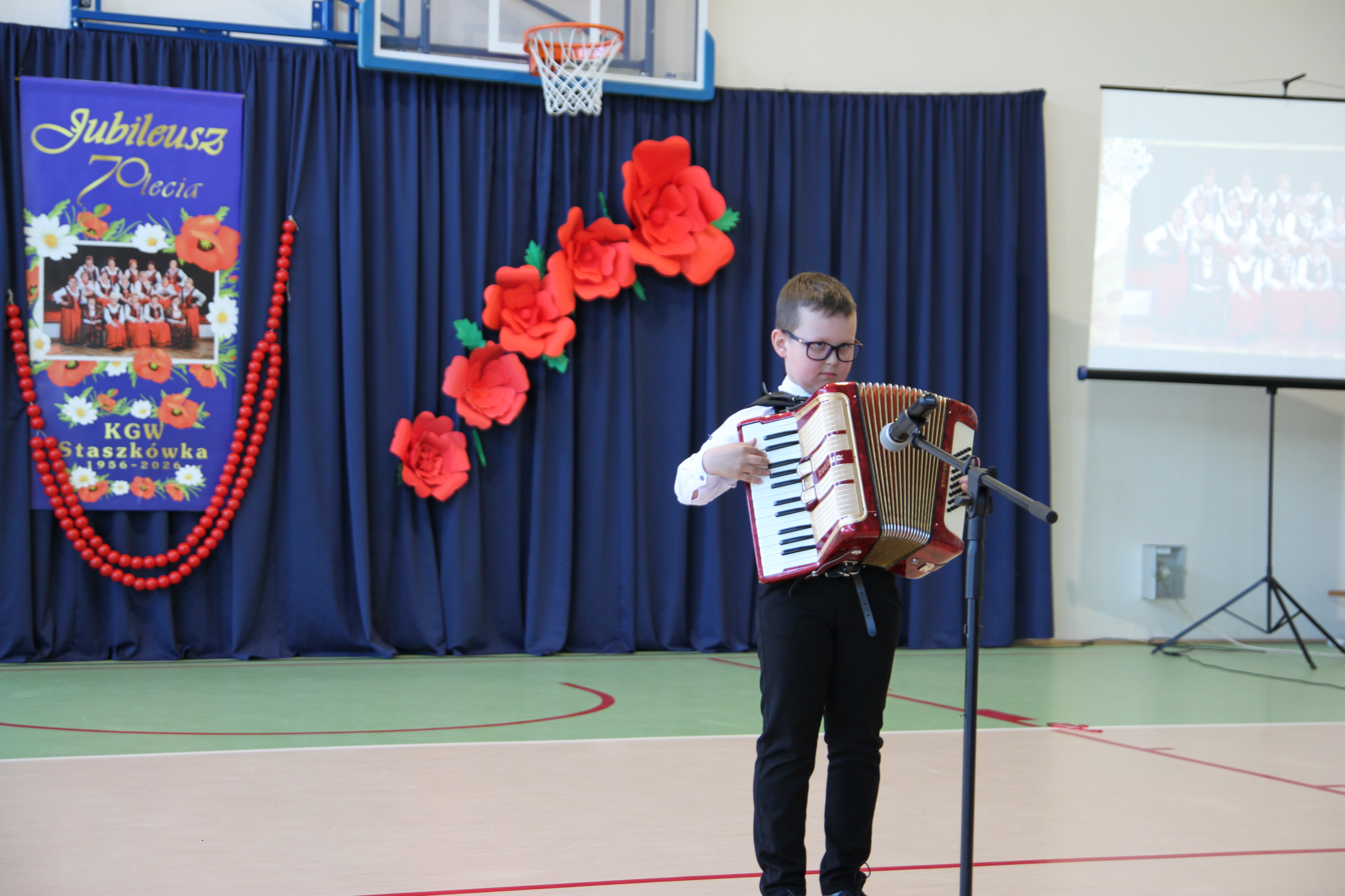 25 kwietnia odbyły się uroczyste obchody KGW w Staszkówce, podczas których zaprezentowali się również uczniowie klasy drugiej pod opieką pani wychowawczyni Bożeny Wąsowicz. Mali artyści przygotowali dwa występy taneczne, które spotkały się z ciepłym przyjęciem publiczności. Pierwszy z nich był układem do radosnego utworu „Ech poleczka” zespołu Guzowianki. Był to taniec pełen energii, o wyraźnie ludowym charakterze, nawiązujący do naszej tradycji oraz muzyki regionalnej. Drugi taniec, do utworu „Mariage d’Amour”, zaprezentowały dziewczynki z klasy drugiej. Była to niezwykle nastrojowa i emocjonalna kompozycja, która wprowadziła widzów w bardziej refleksyjny i subtelny klimat. Dodatkowym elementem programu był występ ucznia naszej klasy Tymona, który zaprezentował swoje umiejętności gry na akordeonie, wypełniając przerwę między tańcami i uświetniając uroczystość muzycznym akcentem. Całość była piękną prezentacją talentów naszych uczniów i stanowiła ważny element obchodów.