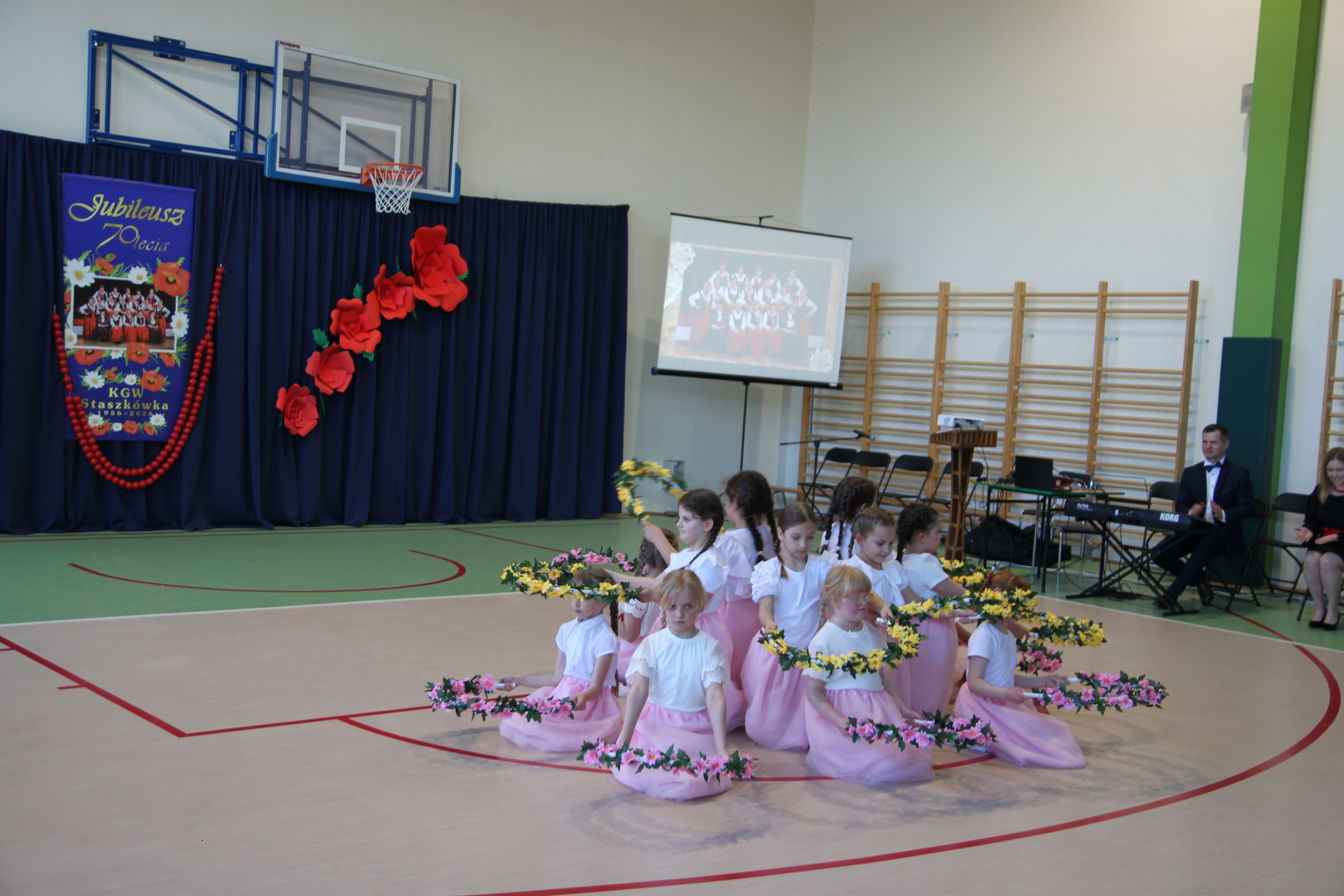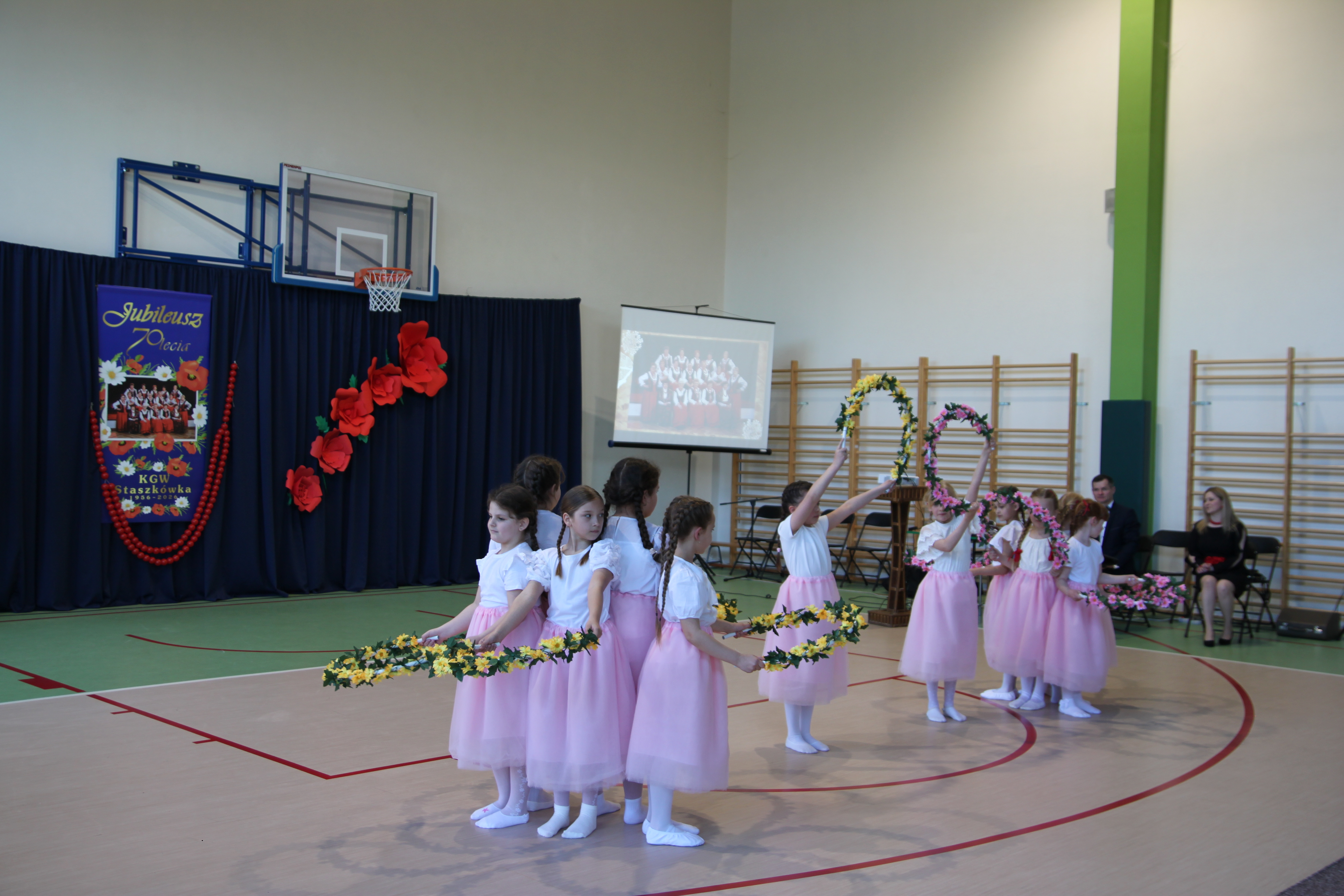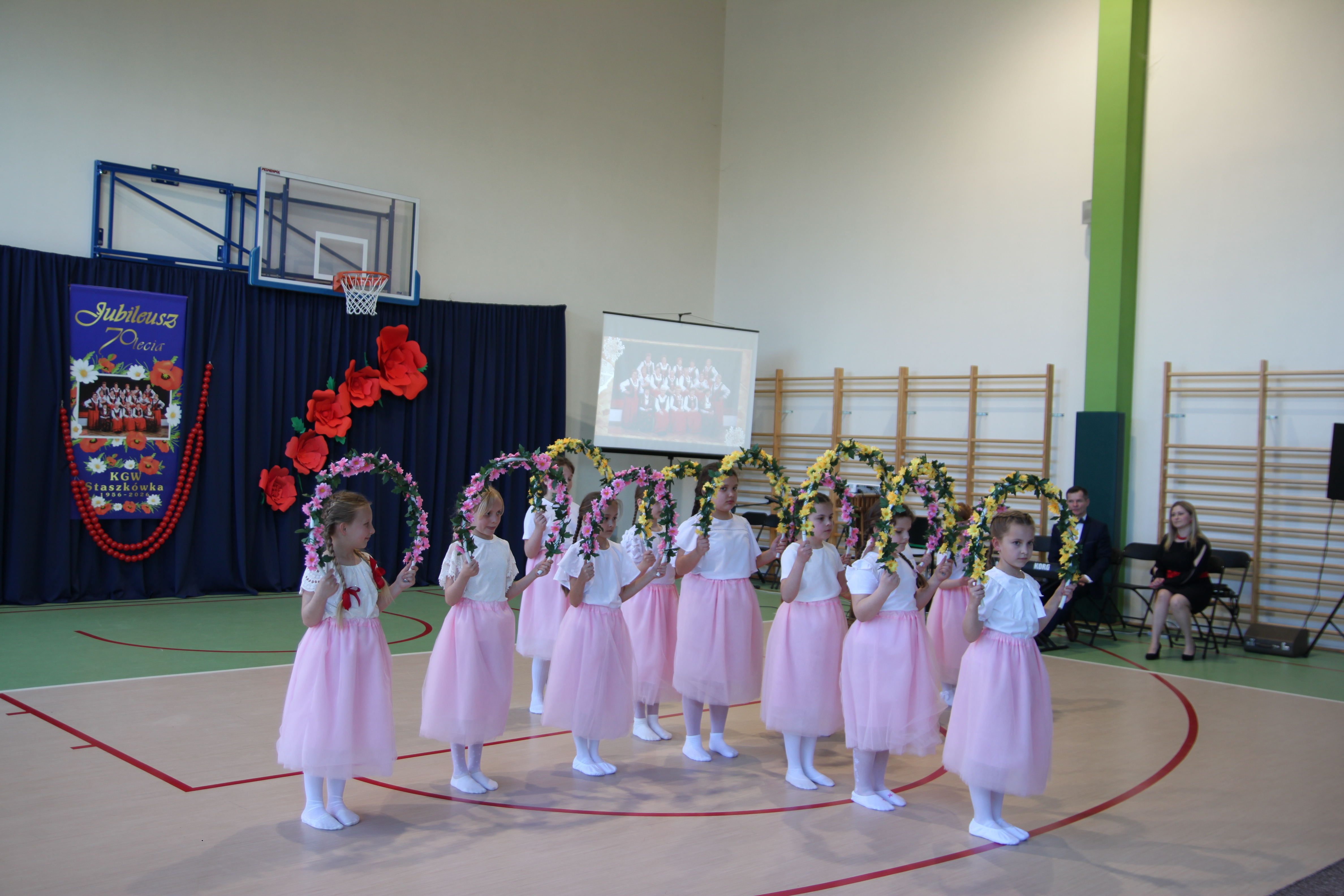 25 kwietnia odbyły się uroczyste obchody KGW w Staszkówce, podczas których zaprezentowali się również uczniowie klasy drugiej pod opieką pani wychowawczyni Bożeny Wąsowicz. Mali artyści przygotowali dwa występy taneczne, które spotkały się z ciepłym przyjęciem publiczności. Pierwszy z nich był układem do radosnego utworu „Ech poleczka” zespołu Guzowianki. Był to taniec pełen energii, o wyraźnie ludowym charakterze, nawiązujący do naszej tradycji oraz muzyki regionalnej. Drugi taniec, do utworu „Mariage d’Amour”, zaprezentowały dziewczynki z klasy drugiej. Była to niezwykle nastrojowa i emocjonalna kompozycja, która wprowadziła widzów w bardziej refleksyjny i subtelny klimat. Dodatkowym elementem programu był występ ucznia naszej klasy Tymona, który zaprezentował swoje umiejętności gry na akordeonie, wypełniając przerwę między tańcami i uświetniając uroczystość muzycznym akcentem. Całość była piękną prezentacją talentów naszych uczniów i stanowiła ważny element obchodów.