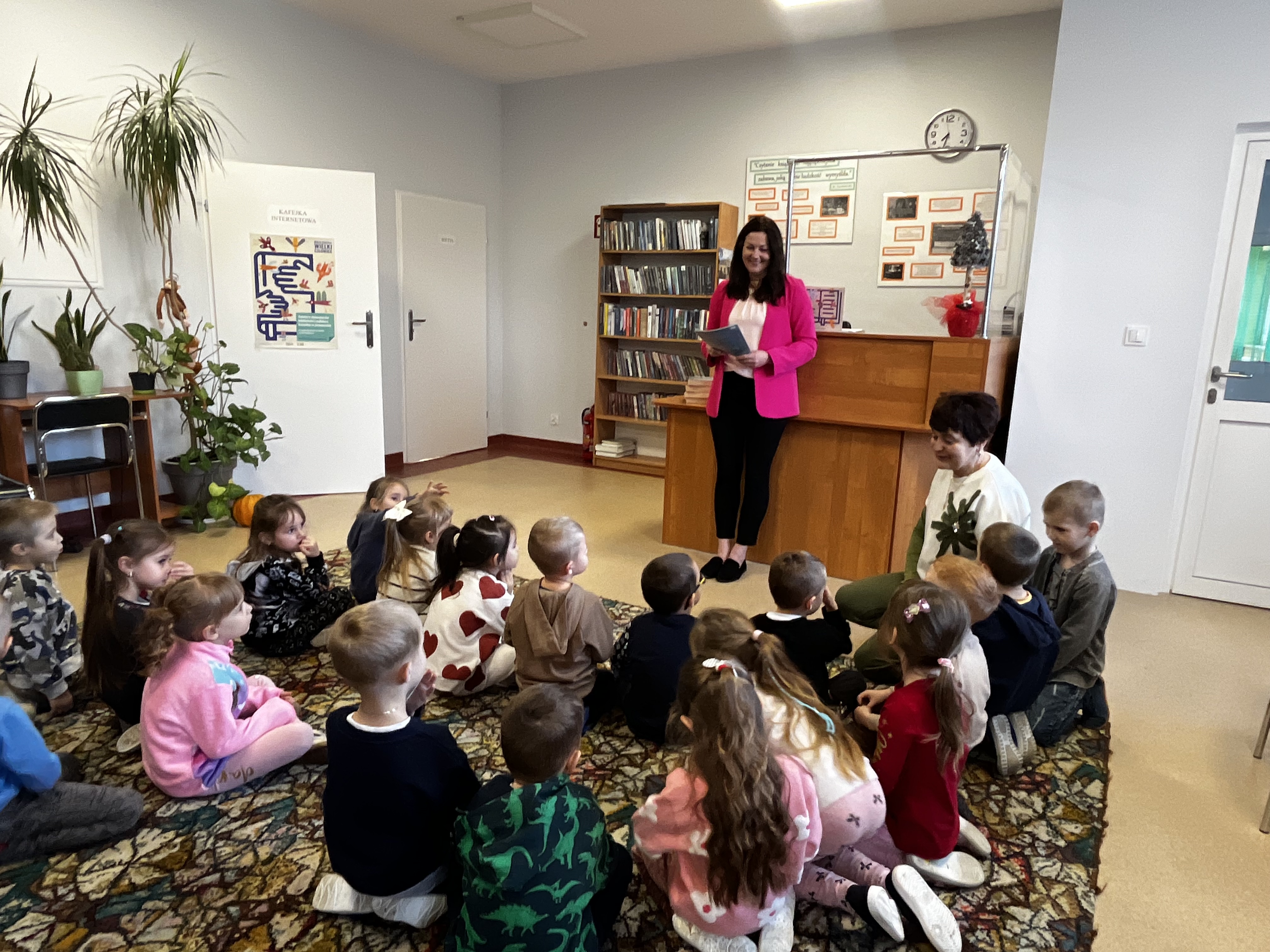 Odwiedziny Biedronek w szkolnej bibliotece.