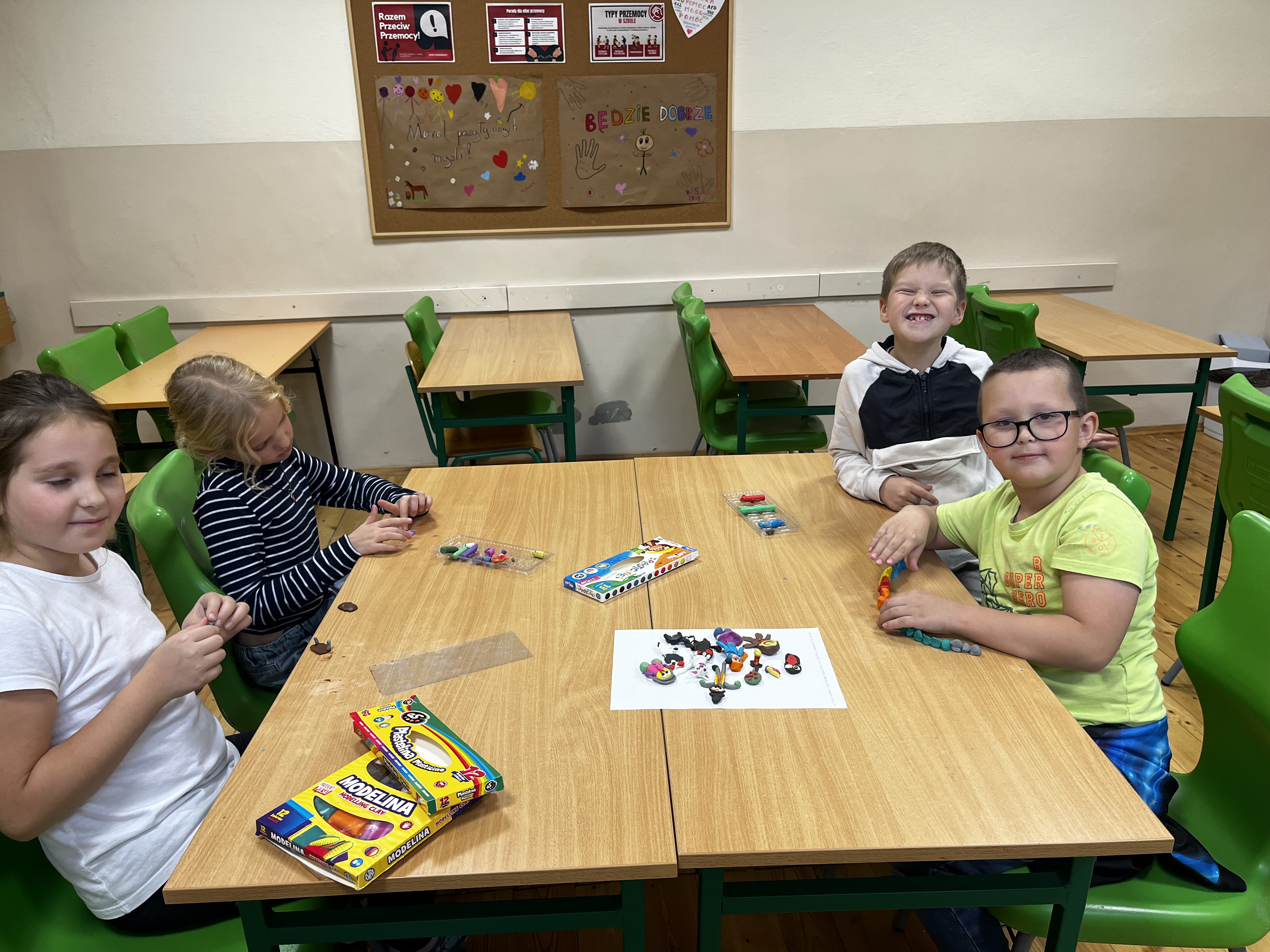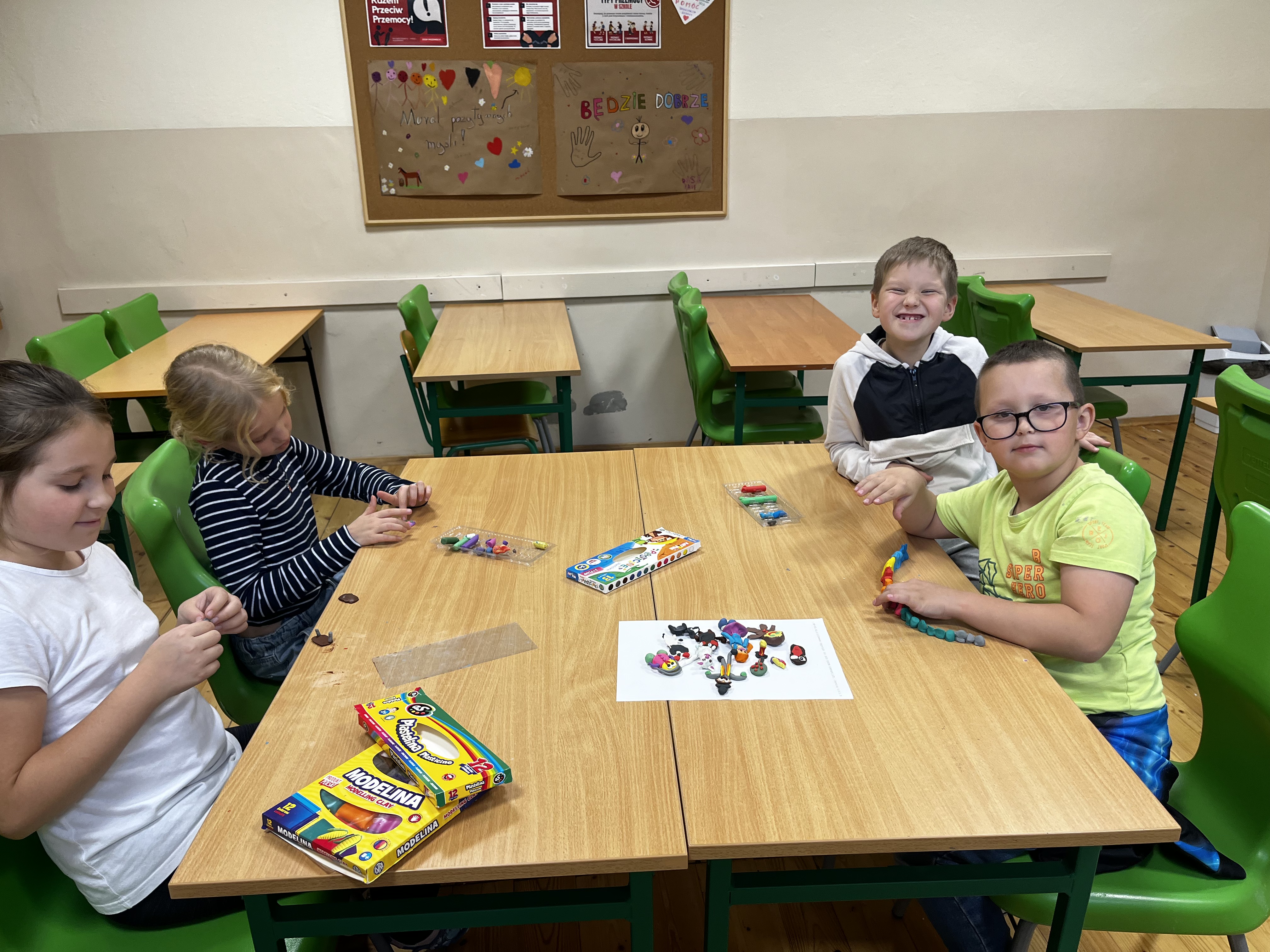 W roku szkolnym 2025/2026 w zajęciach rozwijających kompetencje emocjonalne, realizowanych w ramach projektu „Edukacja włączająca dobrostanem uczniów z Gminy Moszczenica”, uczestniczyło 5 uczniów klasy II. Zajęcia miały charakter integracyjny, interaktywny i projektowy, a ich głównym celem było wspieranie rozwoju społeczno-emocjonalnego uczniów oraz budowanie atmosfery wzajemnego szacunku, zaufania i współpracy. Podczas zajęć uczniowie uczestniczyli w różnorodnych aktywnościach, takich jak gry i zabawy integracyjne sprzyjające wzajemnemu poznaniu, działania twórcze polegające na przygotowywaniu kartek dla innych oraz tworzeniu plakatów przedstawiających dobry dzień, prowadzenie dziennika dobrych myśli, a także zadania rozwijające życzliwość i współpracę, w tym wspólne spacery ukierunkowane na dostrzeganie dobra oraz aktywności łączące elementy matematyki z życzliwą rywalizacją. Dzięki tym formom pracy dzieci uczyły się rozpoznawania i wyrażania emocji, budowania pozytywnych relacji oraz podejmowania działań na rzecz innych. Uczniowie rozwinęli umiejętności komunikacyjne i społeczne, nauczyli się współpracy w grupie oraz stosowania zasad empatii, życzliwości i równości w codziennych sytuacjach szkolnych. Wzmocnili poczucie własnej wartości, sprawczości oraz przynależności do grupy. Zauważalny był również wzrost otwartości, kreatywności i wrażliwości społecznej. Zajęcia potwierdziły, że systematyczne wspieranie rozwoju emocjonalnego dzieci ma istotny wpływ na ich funkcjonowanie w grupie rówieśniczej oraz codziennym życiu szkolnym. Zdobyte umiejętności i doświadczenia przyczyniają się do budowania trwałych postaw opartych na empatii, szacunku i współodpowiedzialności.